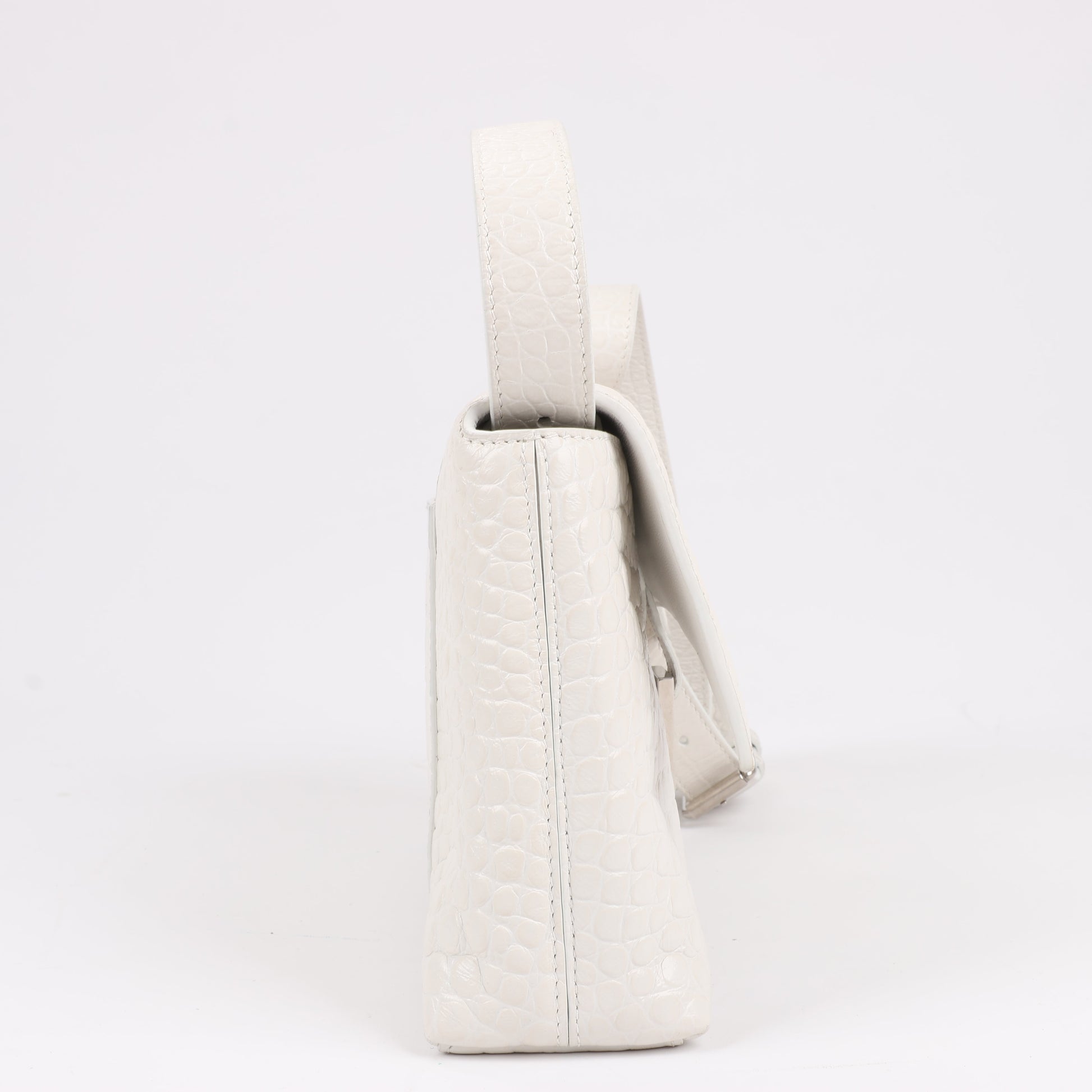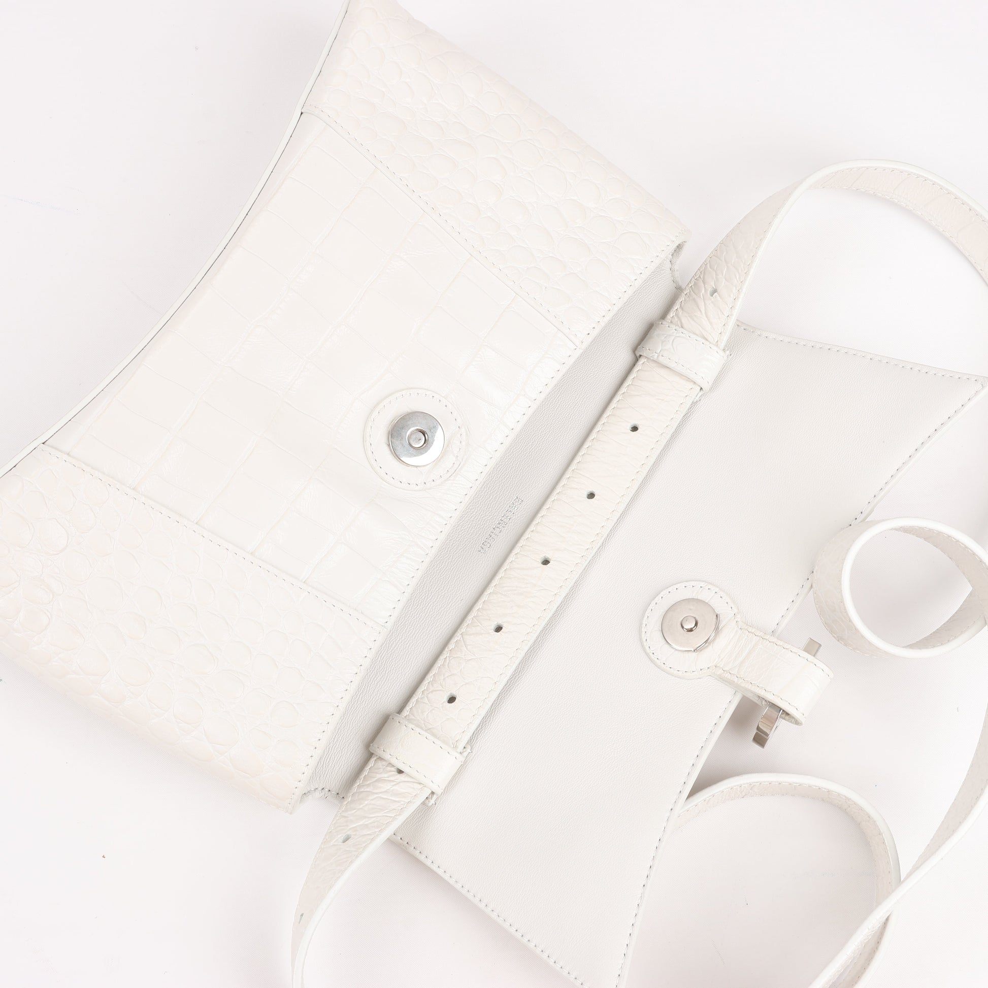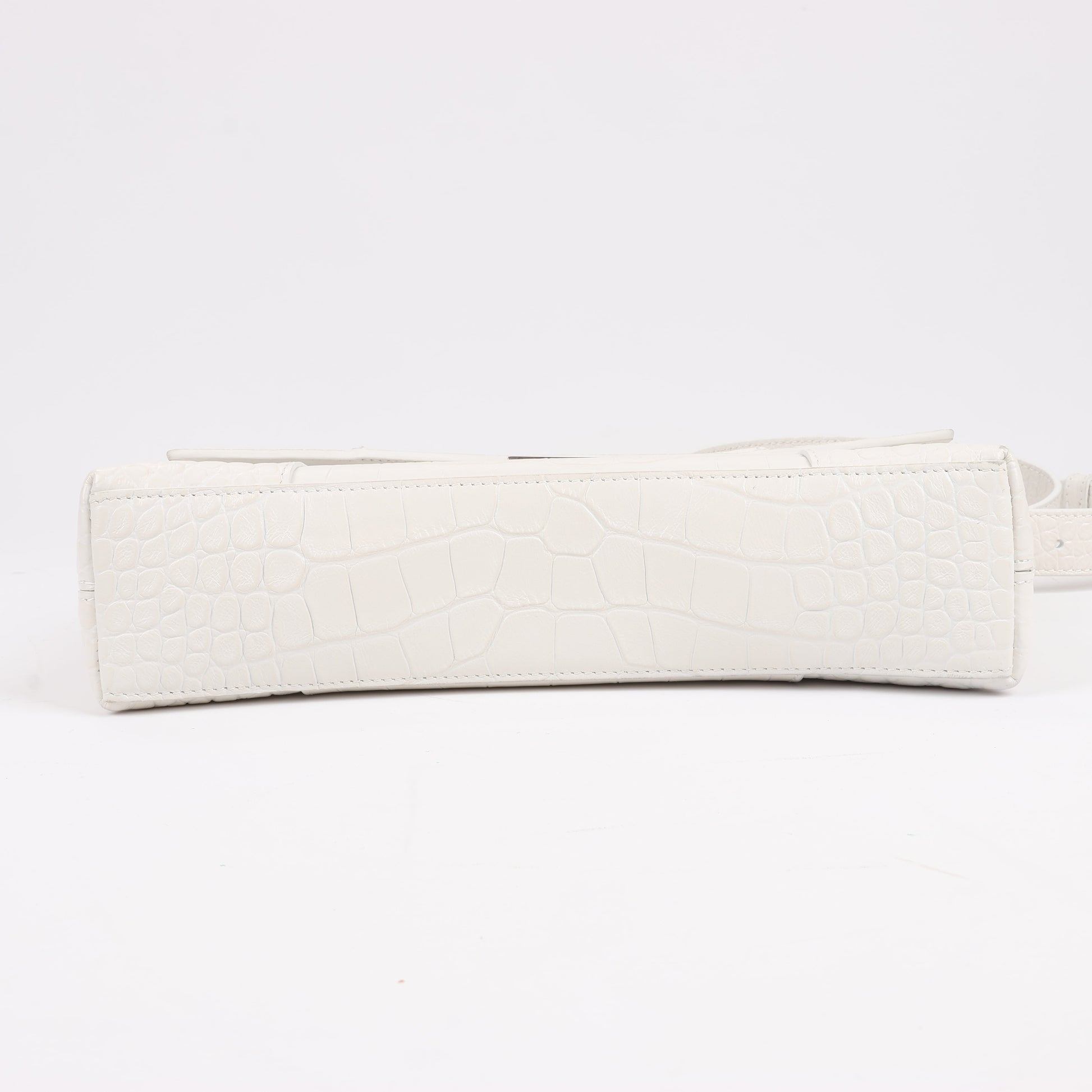 Balenciaga Hourglass Schultertasche in Krokodiloptik in Weiß 671355