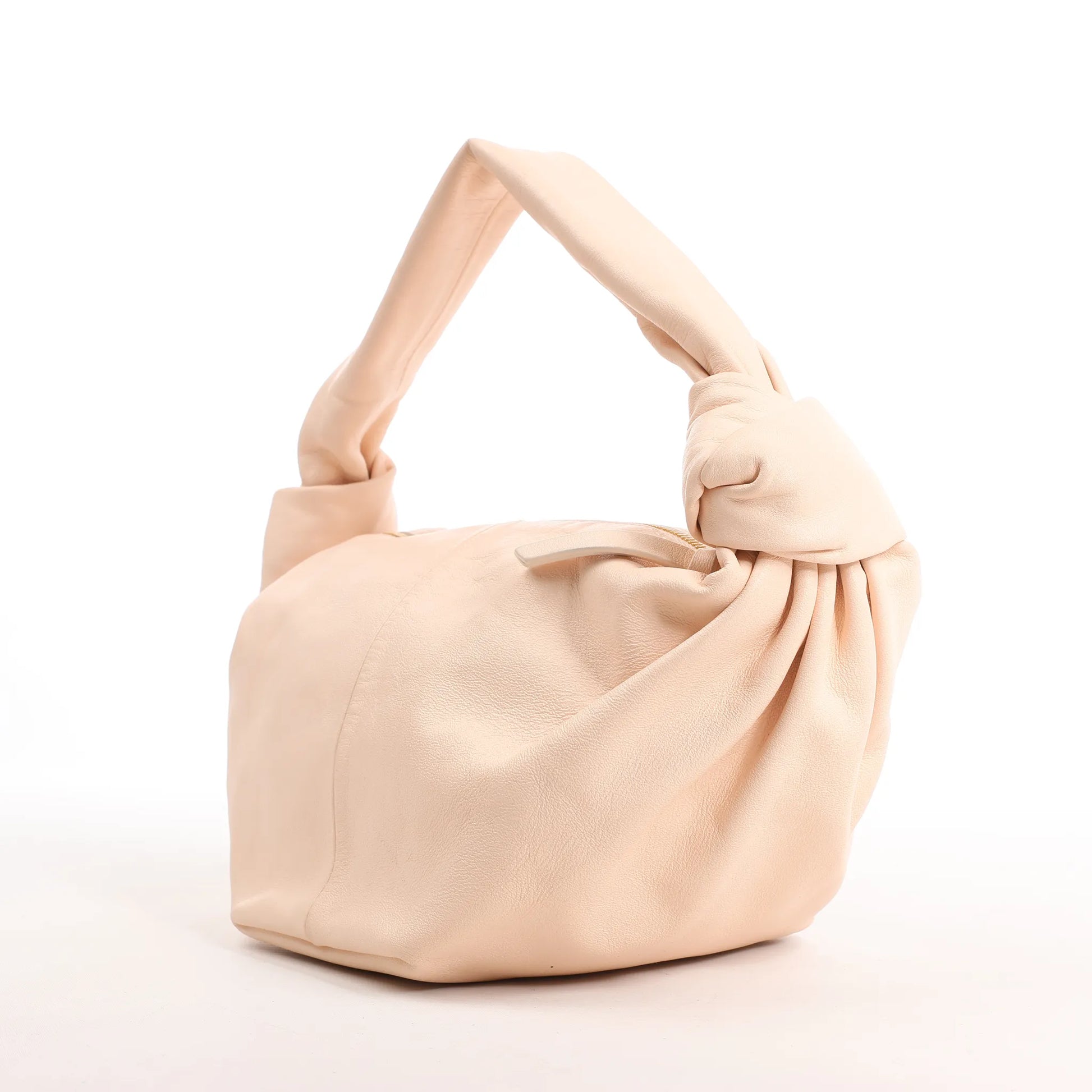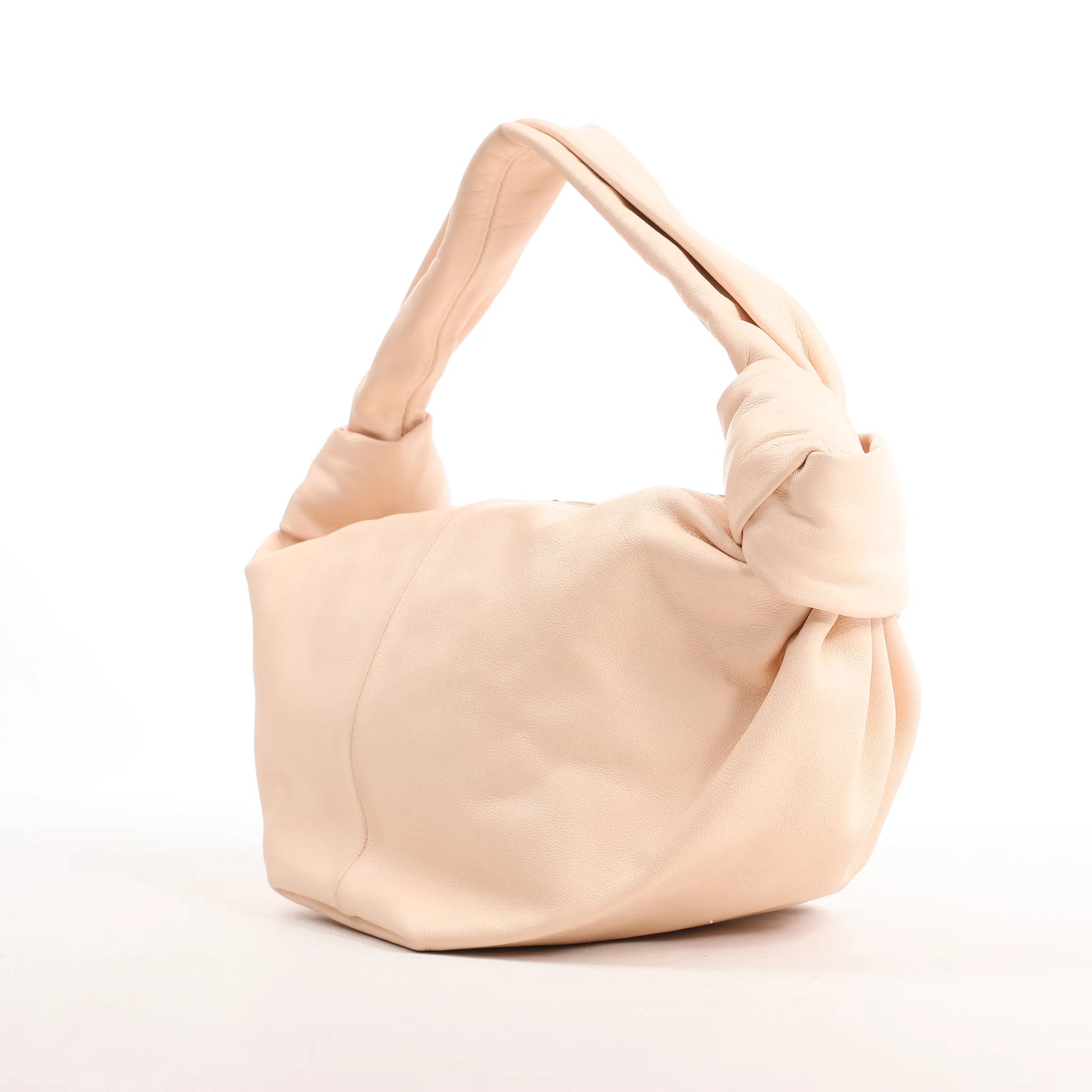 Die Bottega Veneta Double Knot Mini Handtasche aus zartrosa Leder besticht durch skulpturale Eleganz und einen charakteristischen Knotengriff – perfekt für einen schicken, modernen Look.