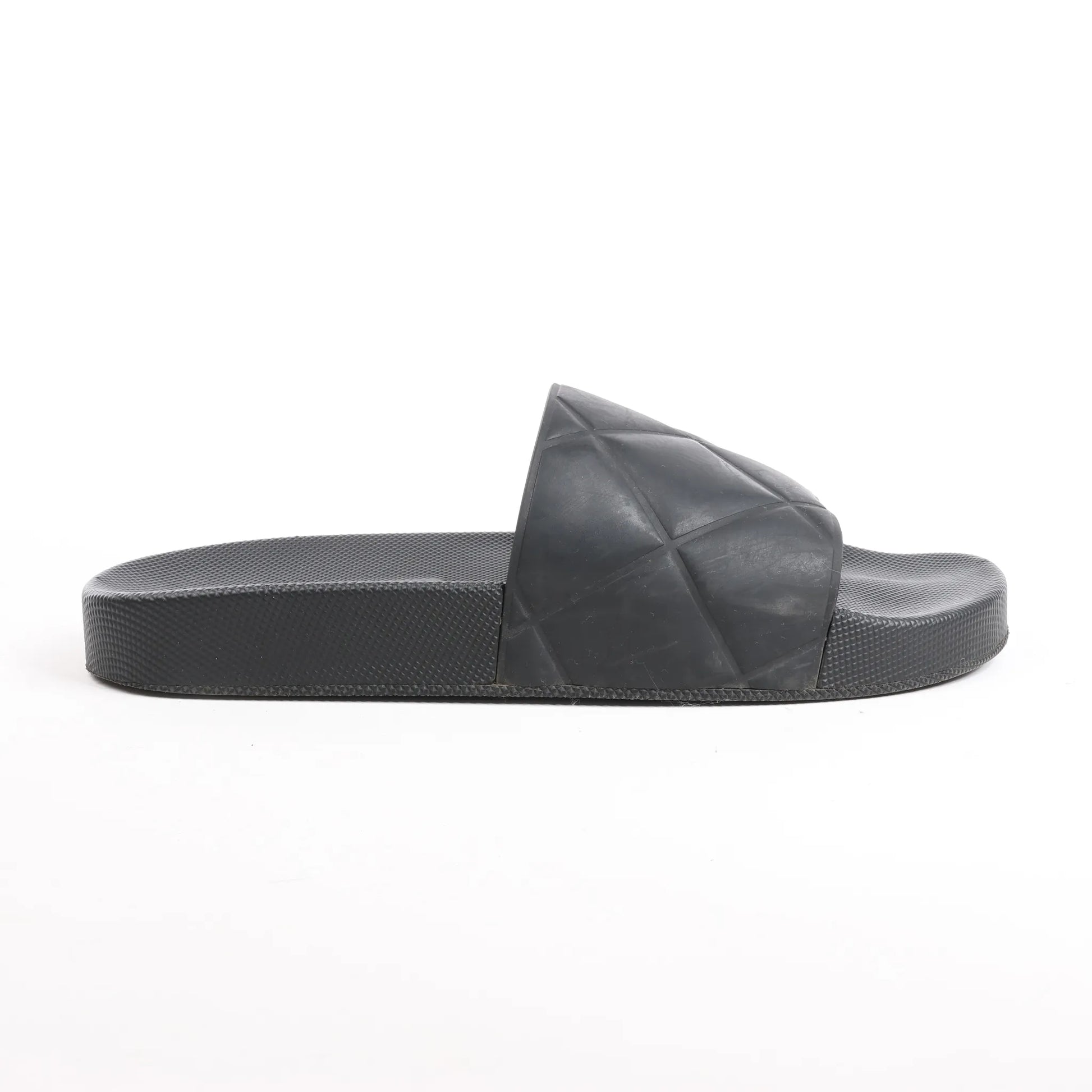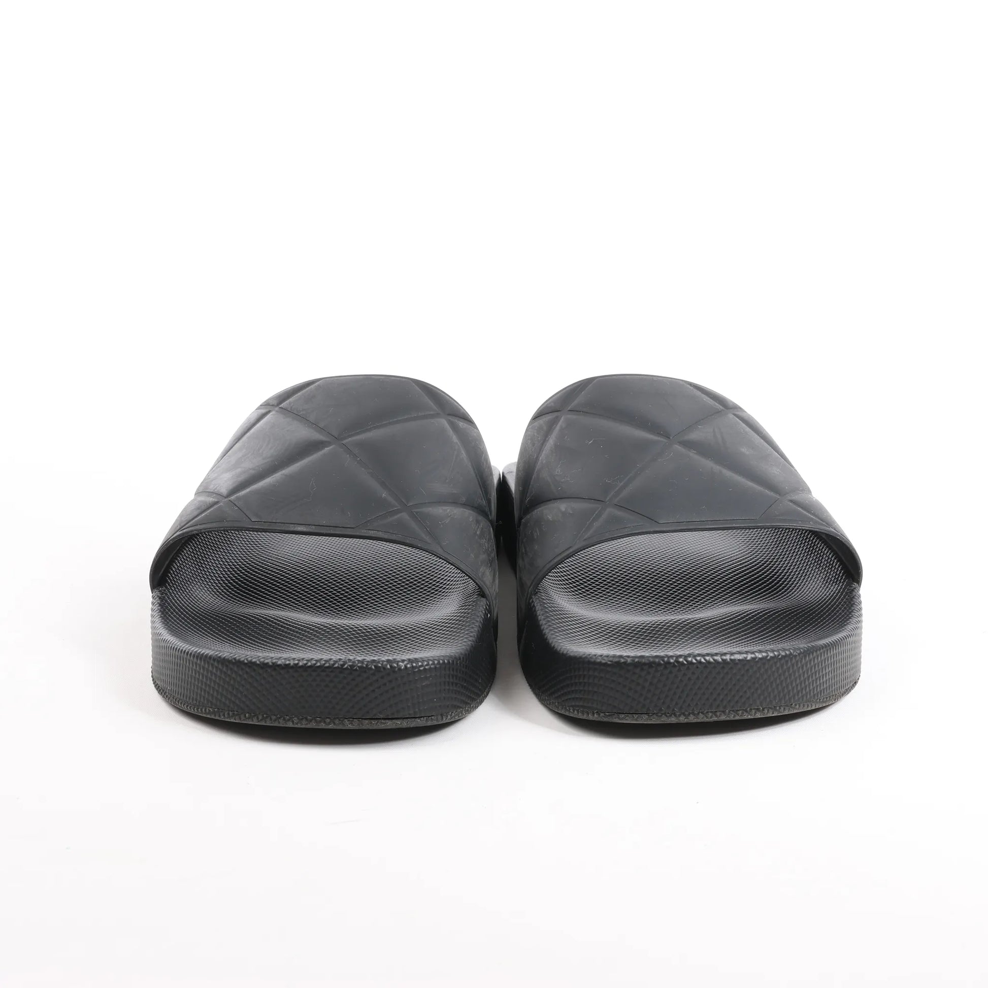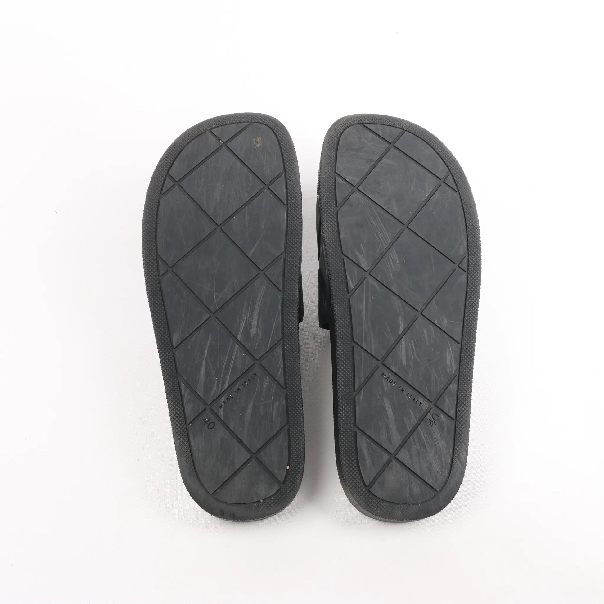 Die flachen Bottega Veneta Intrecciato Rubber BV Slides in Schwarz, Größe 40 EU, bieten eine moderne Interpretation des charakteristischen Webmusters der Marke. Hergestellt aus strapazierfähigem Gummi mit geprägten Intrecciato-Details, bieten diese Slides eleganten, minimalistischen Komfort.