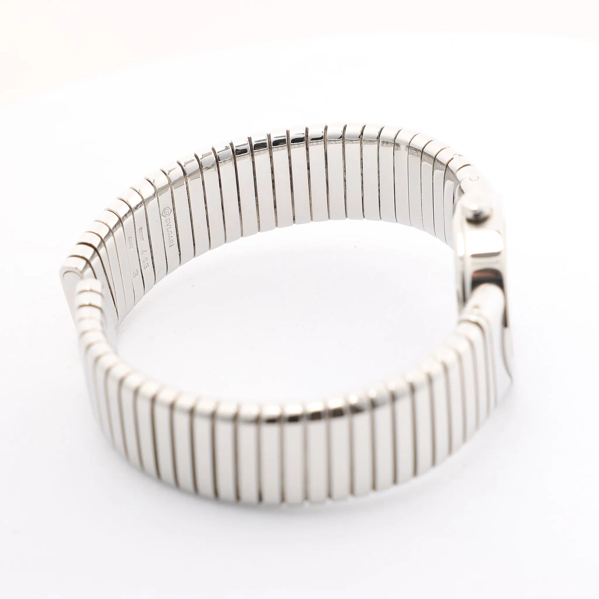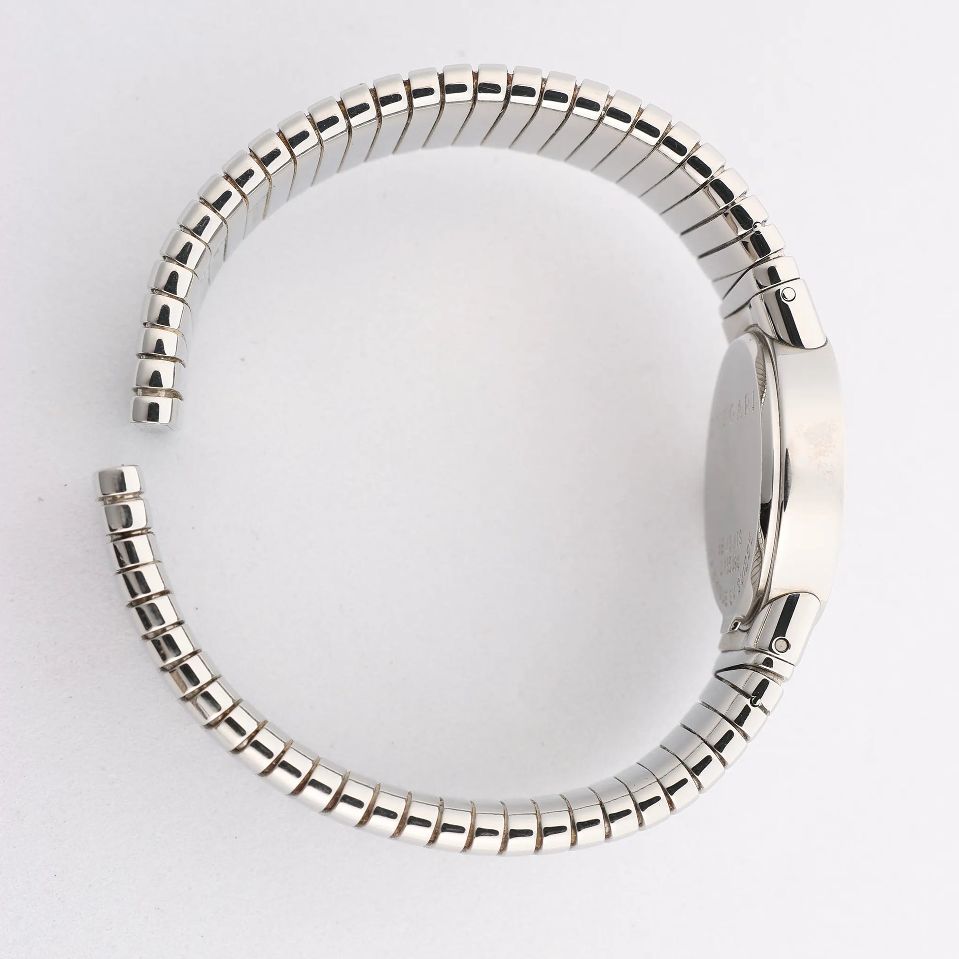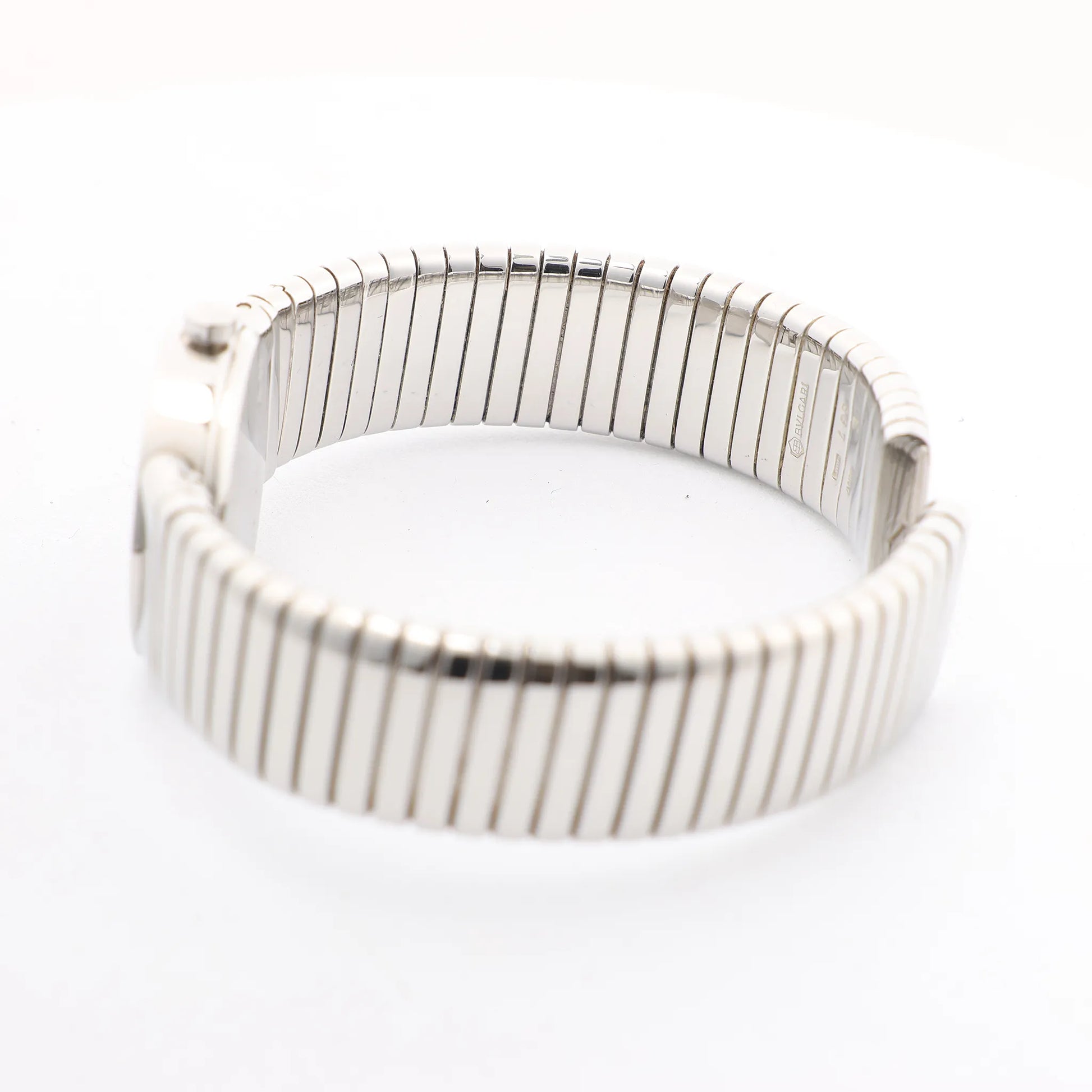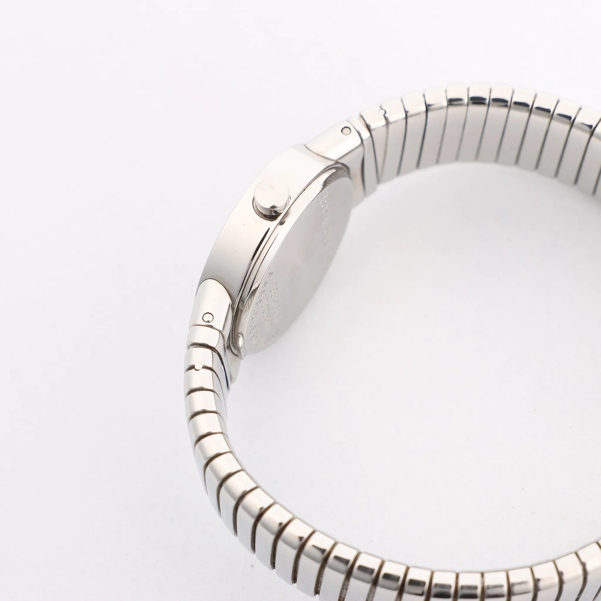 The Bvlgari Bvlgari Tubogas BB232TS D235898 is a sleek and modern quartz watch featuring a black dial, stainless steel case, and iconic Tubogas bracelet. A timeless fusion of Italian design and Swiss precision.