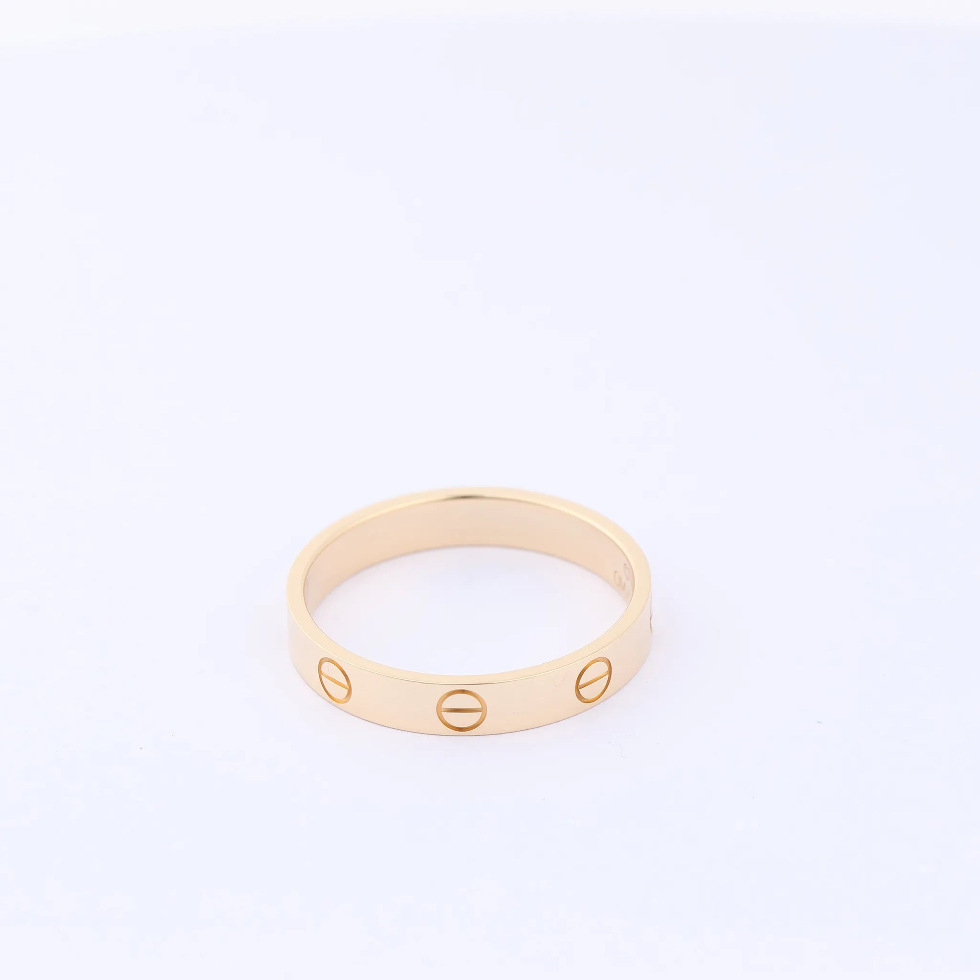 Cartier Mini Love Ring aus 18-karätigem Gelbgold (750), Größe 59, Gewicht 3,7 g. Ein elegantes, ikonisches Symbol ewiger Liebe mit charakteristischen Schraubenmotiven in einem zeitlosen, minimalistischen Ring.