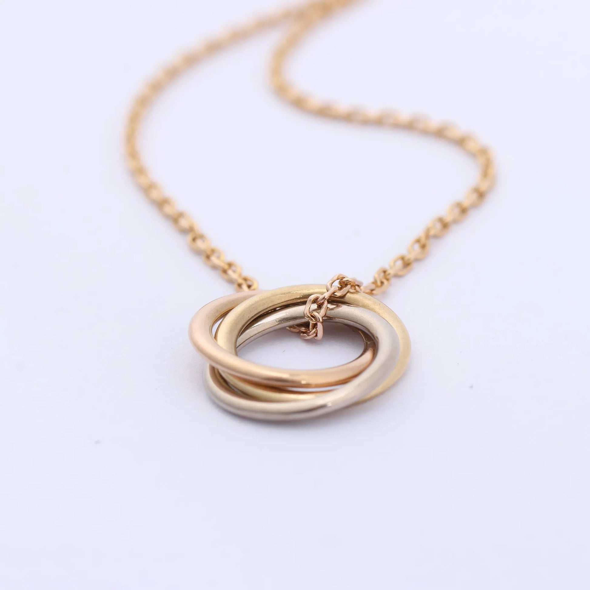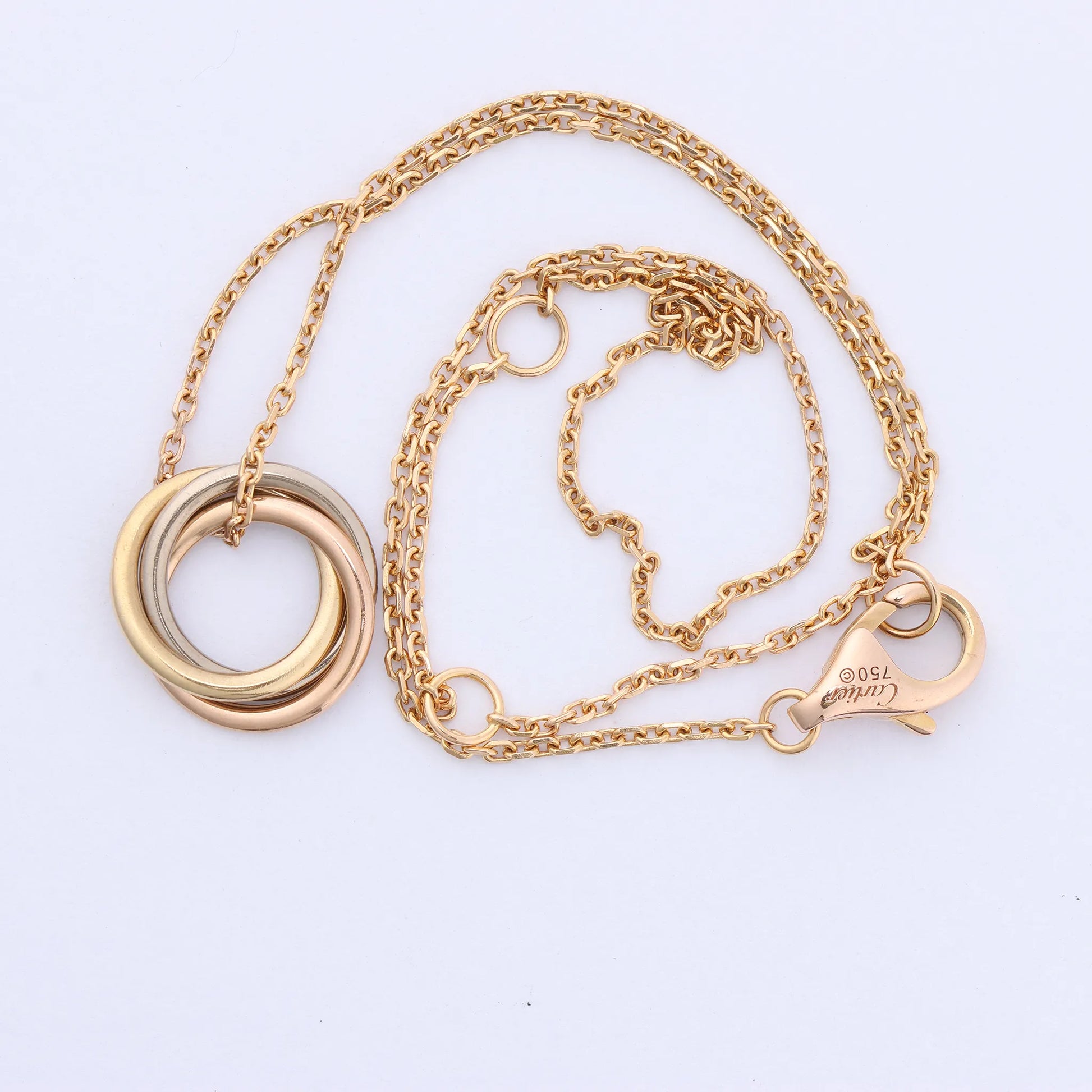 Das Cartier Sweet Trinity Armband vereint 18-karätiges Gelb-, Rosé- und Weißgold (750) in einem zarten 2,2-g-Design. Mit den ikonischen ineinandergreifenden Ringen ist es ein zeitloses Symbol für Liebe, Treue und Freundschaft.