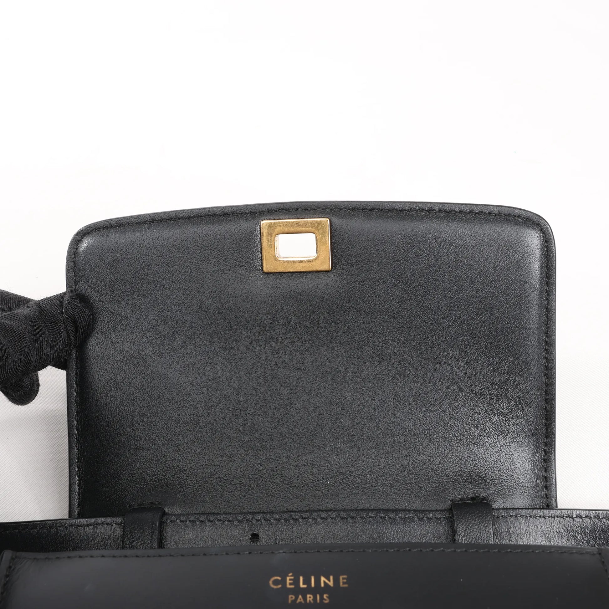 Discover timeless elegance with the Celine Classic Box Small Shoulder Bag in black leather. Crafted with luxurious smooth calfskin and a sleek gold-tone push-lock, this piece blends modern minimalism with iconic Parisian design.