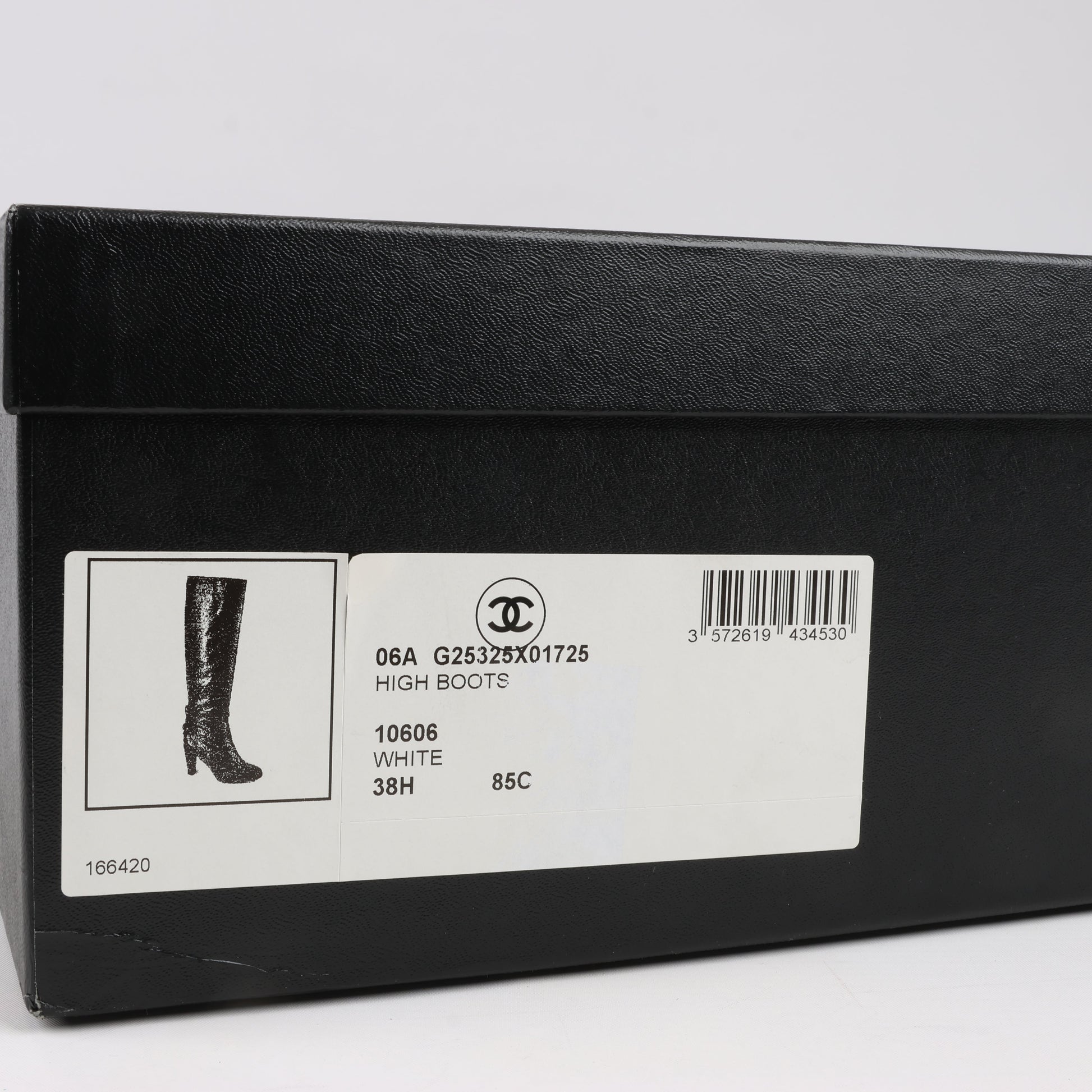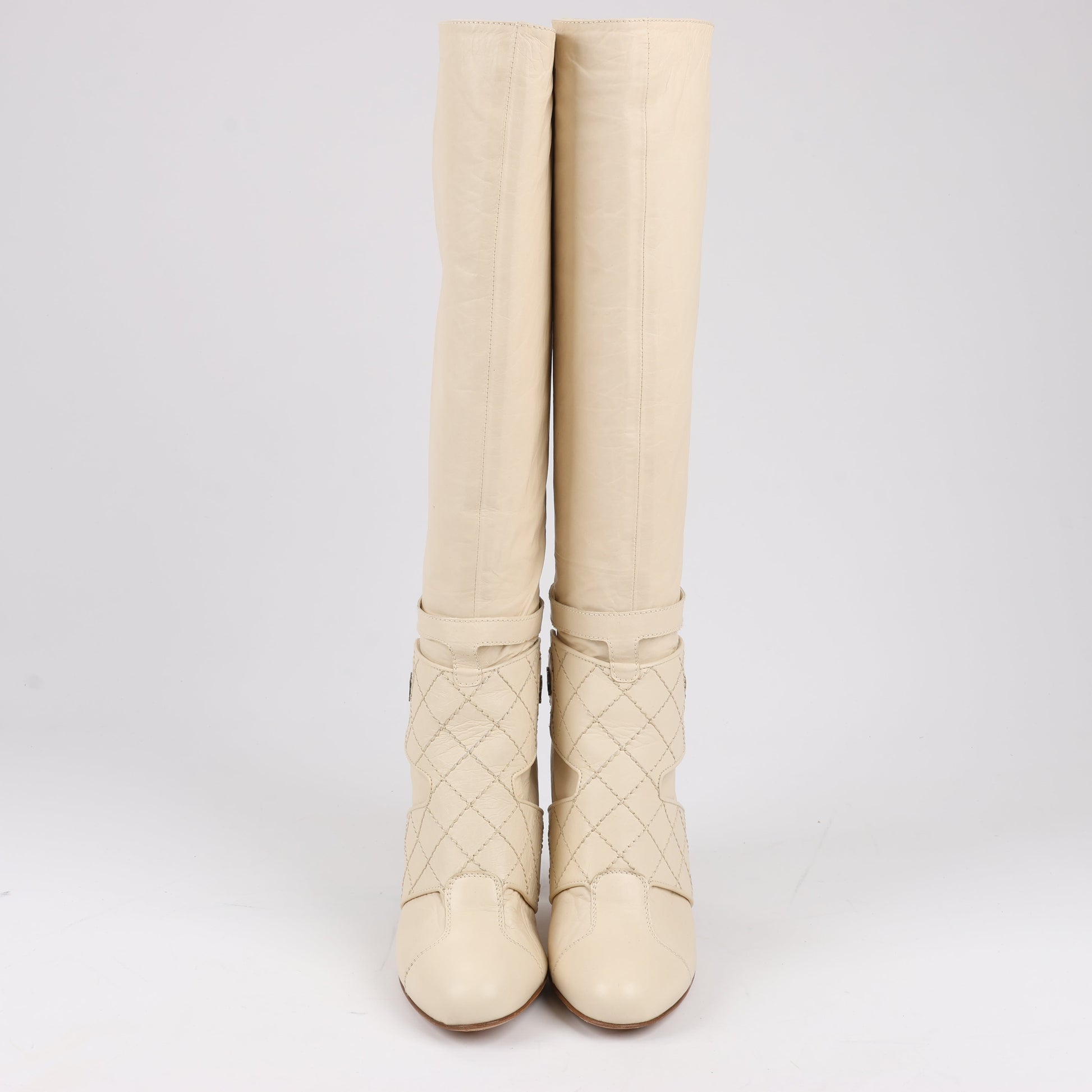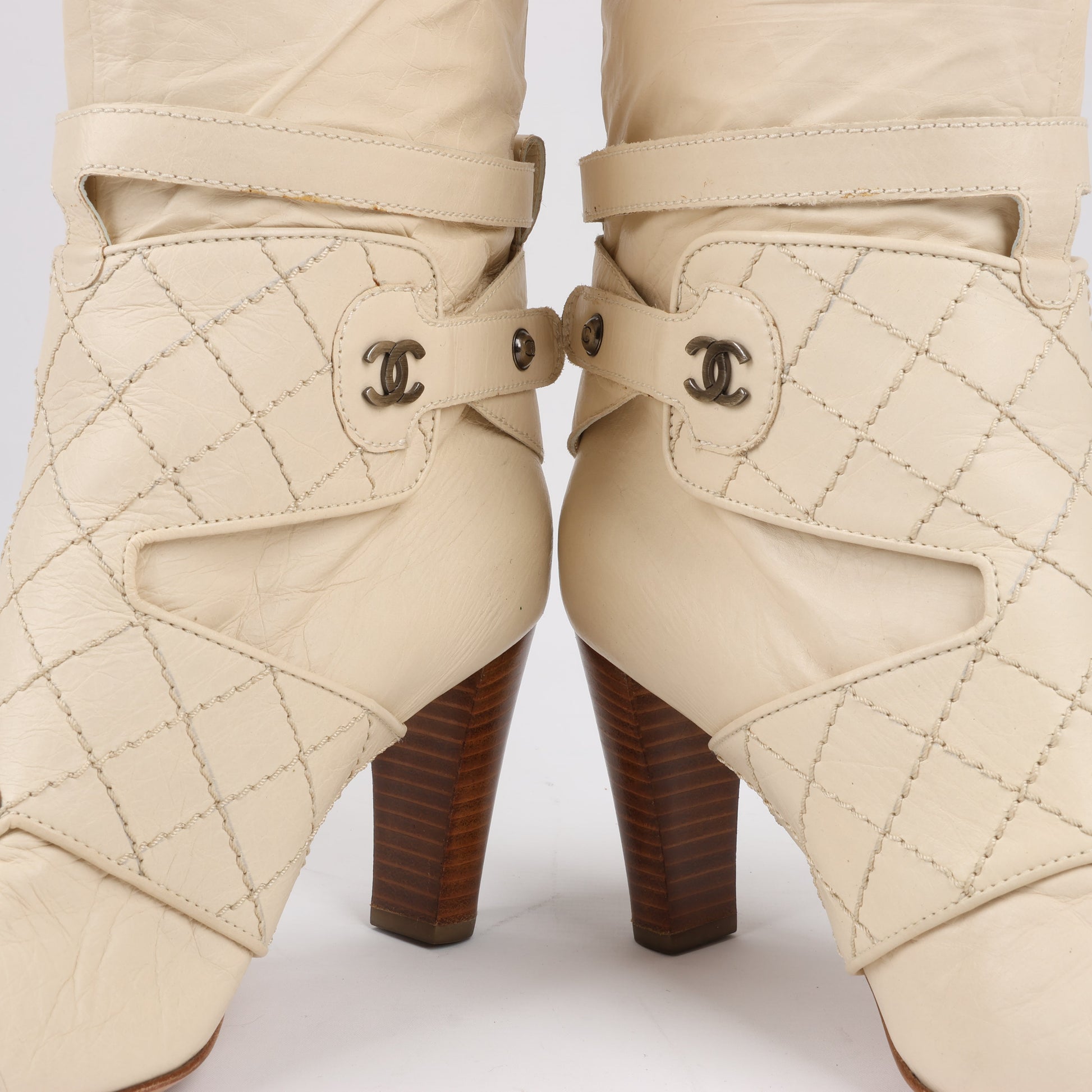 Chanel Coco Mark Matelasse 06A Lange Lederstiefel in Elfenbein G25325, Größe 38,5 EU