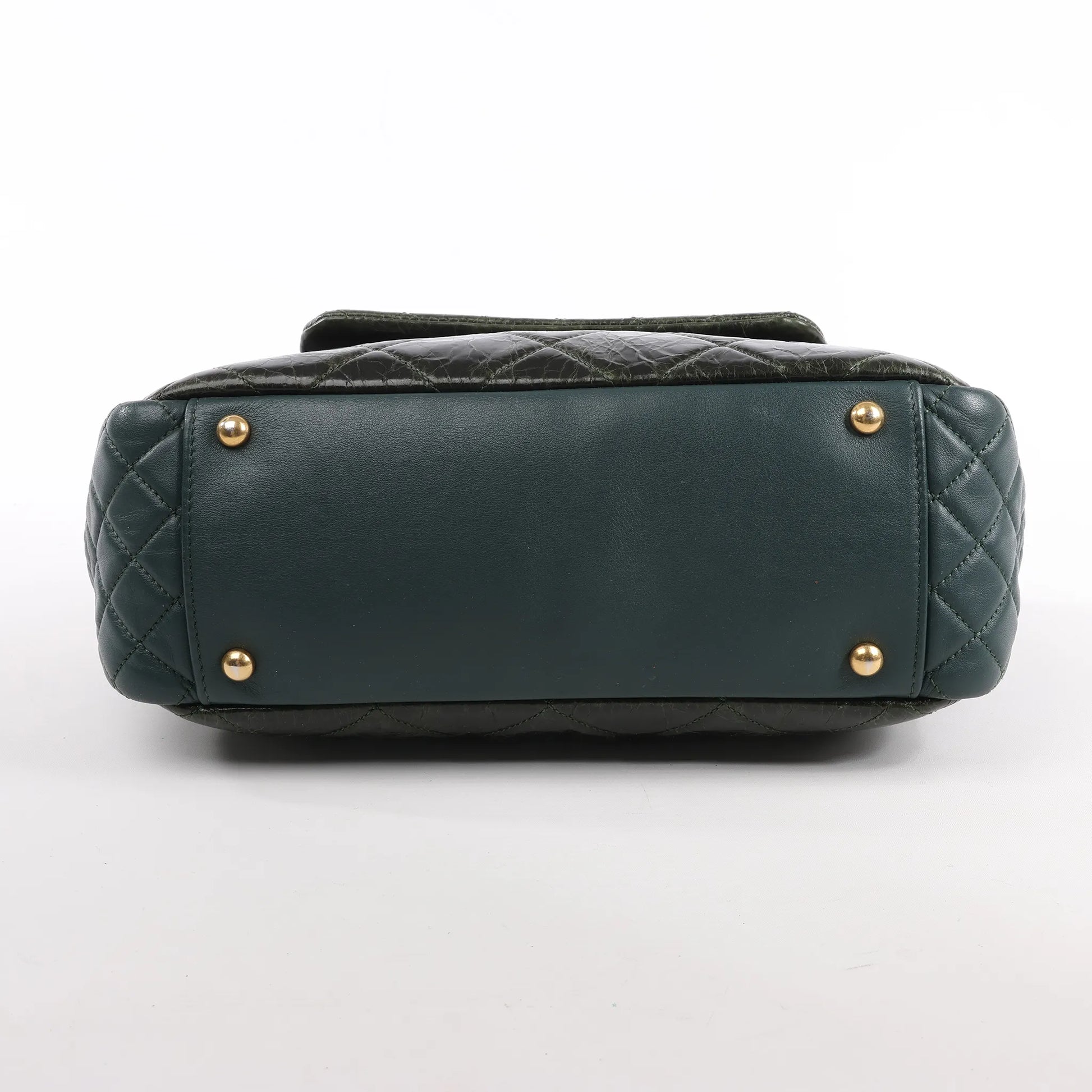 Chanel Reissue – Akkordeon-Schultertasche aus gestepptem Ledermix in Grün