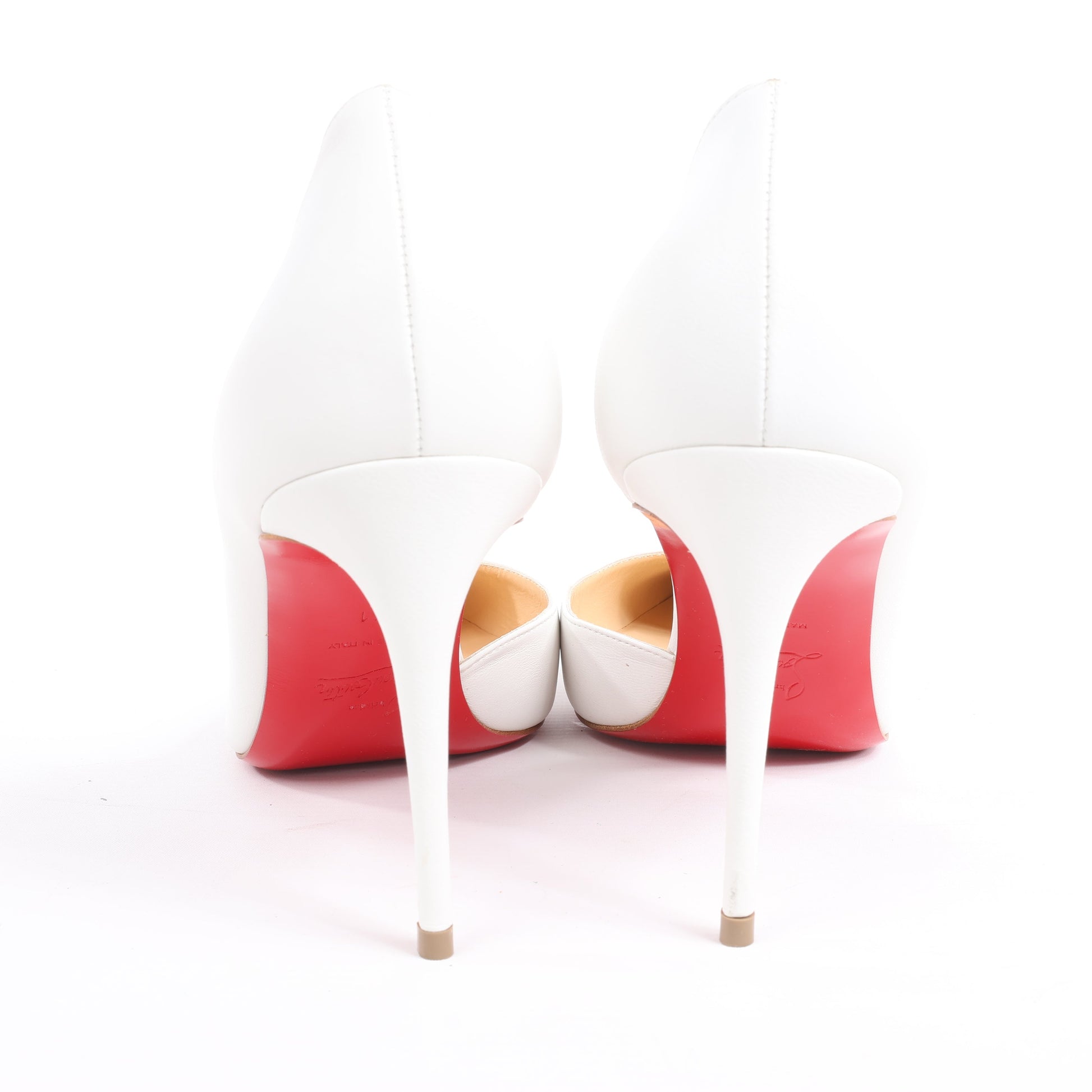 Diese eleganten und ikonischen Pumps Iriza 85 von Christian Louboutin aus weißem Leder zeichnen sich durch einen eleganten D'Orsay-Schnitt, eine spitze Zehenpartie und die charakteristischen roten Sohlen aus und verbinden mühelos zeitlose Eleganz mit einem kühnen Pariser Touch. EU-Größe 41.