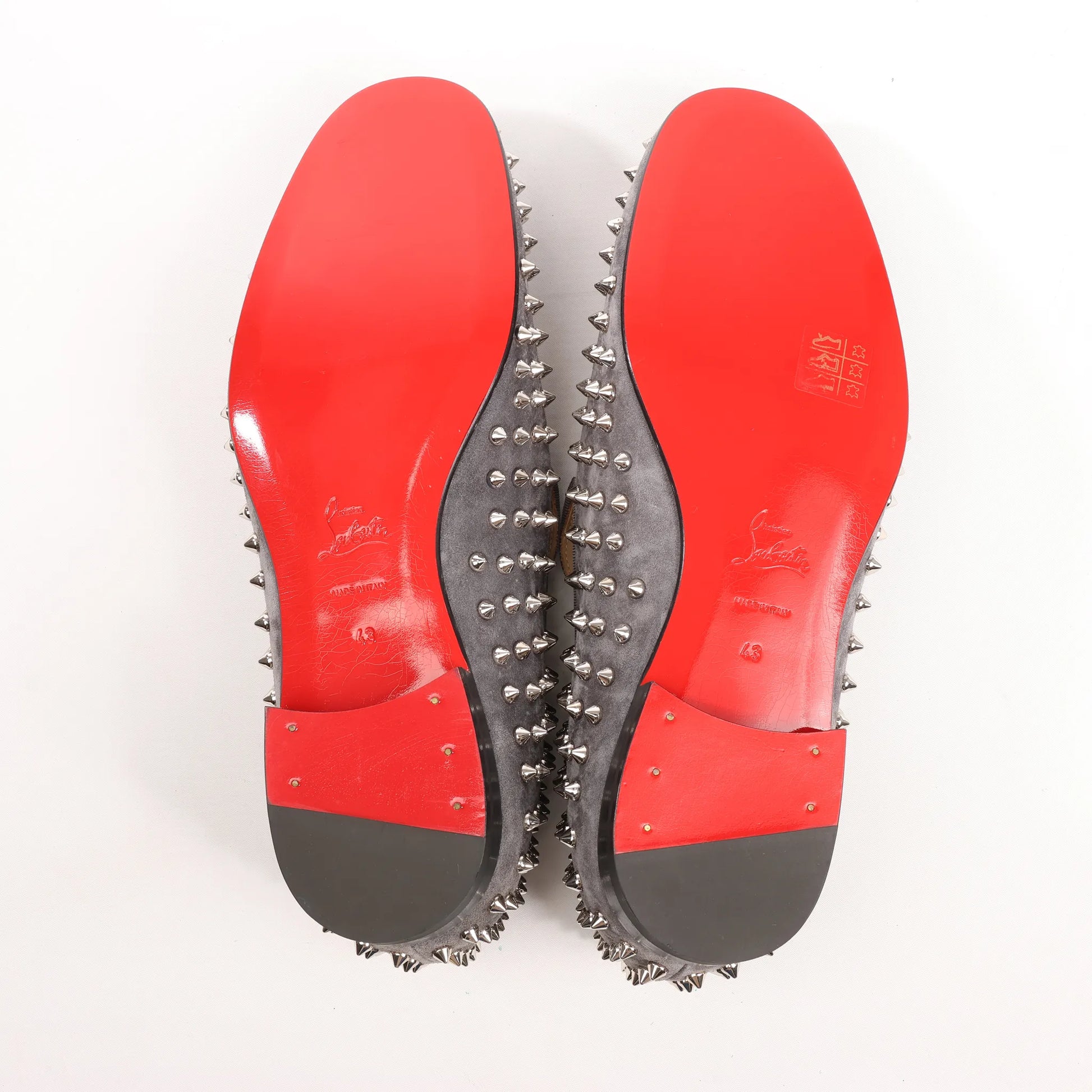 Christian Louboutin Spike Studs Leather Slip-on in Gray, Size 43 EU