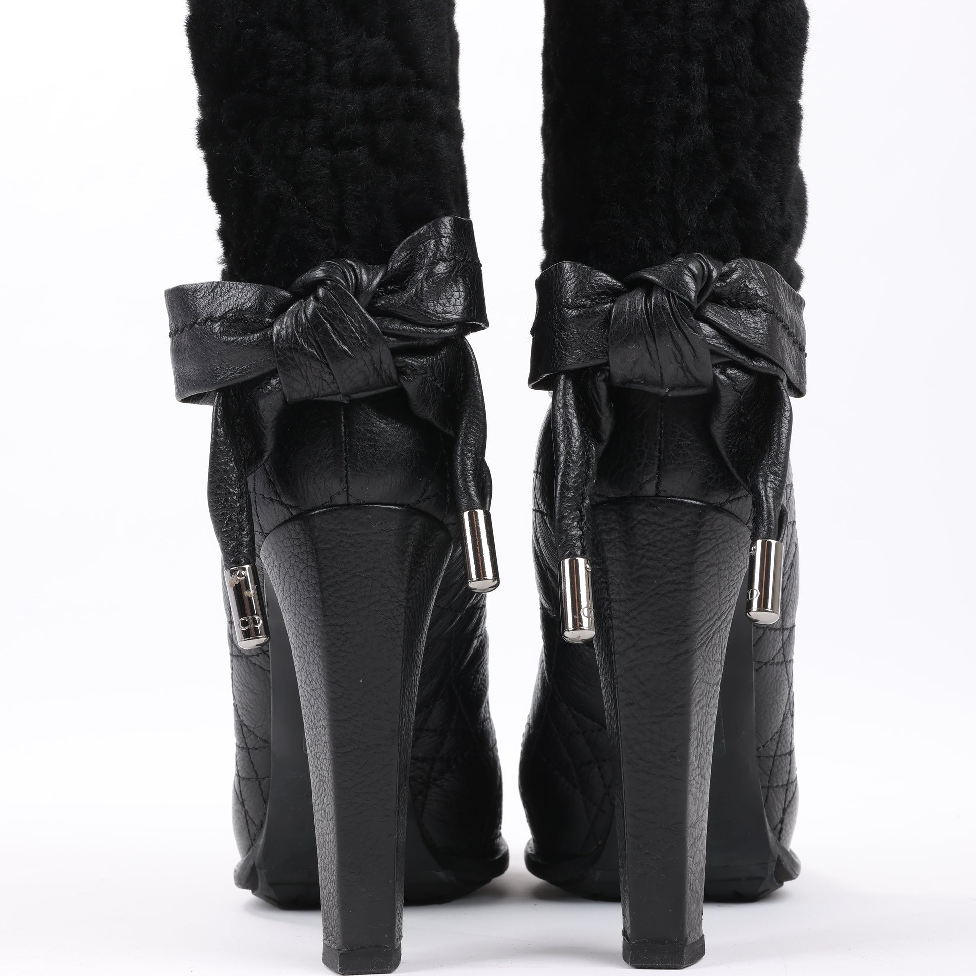 Dior – Cannage-Stiefel aus schwarzem Leder mit Stulpen aus Eispelz, Größe 40 EU