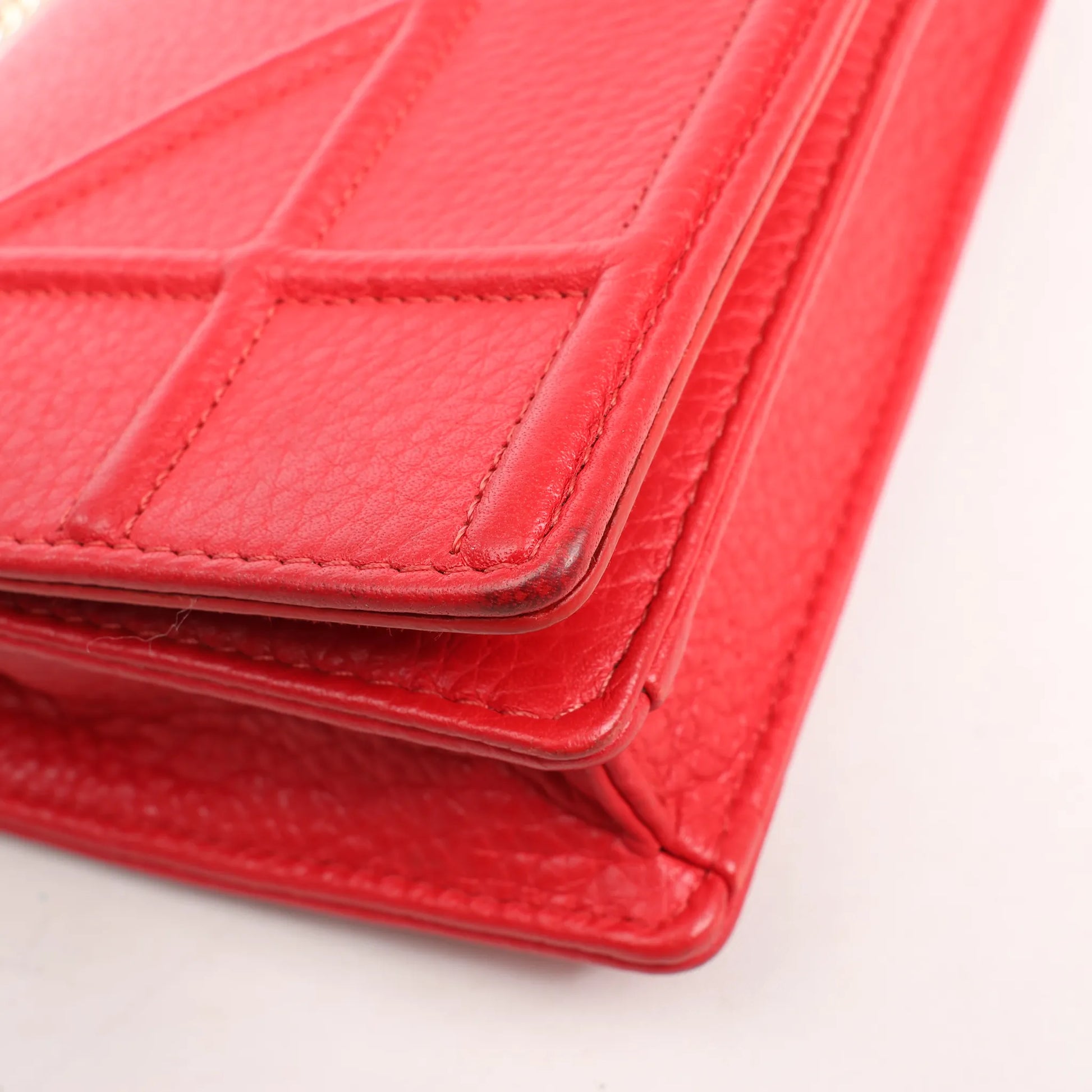 Dior Diorama Schultertasche aus rotem Leder mit Kette