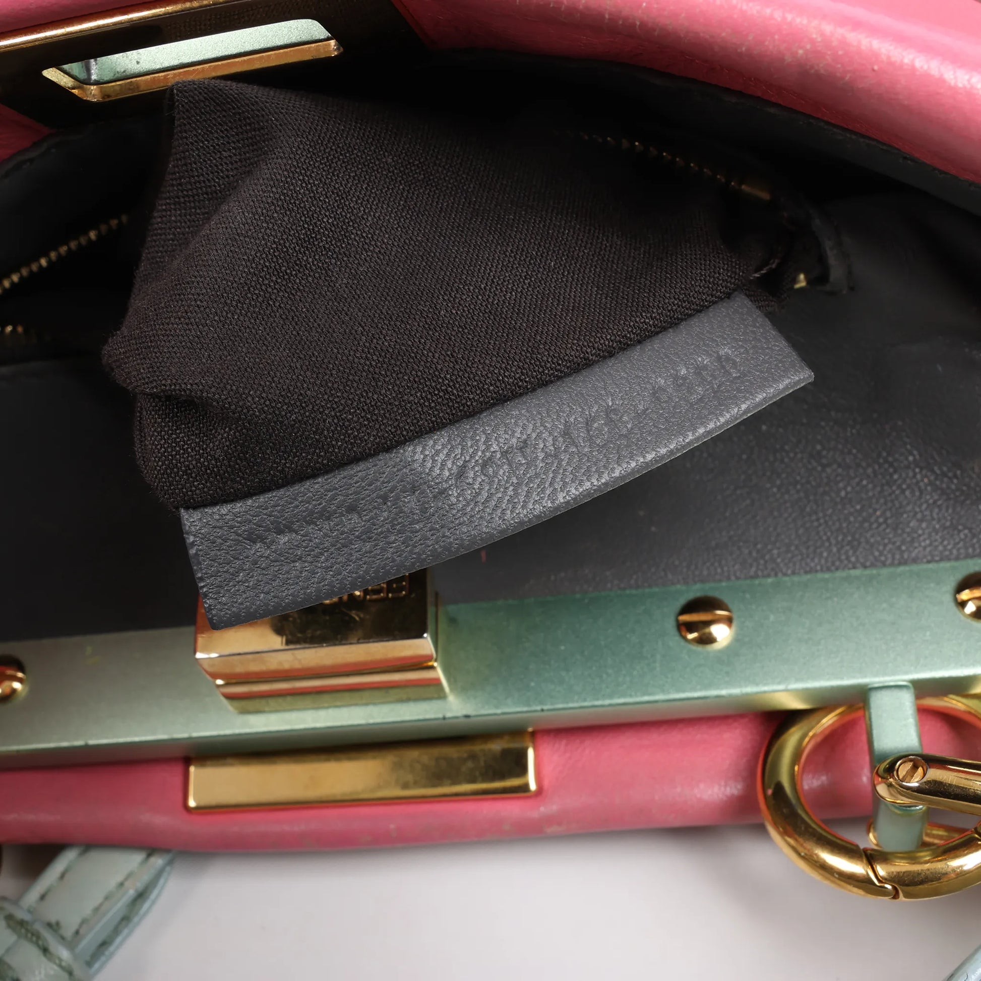 Die Fendi Peekaboo Mini 2-Way Handtasche aus rosa Leder ist ein verspieltes und zugleich elegantes Statement-Piece. Mit kontrastierendem Tragegriff, abnehmbarem Riemen und charakteristischem Drehverschluss ist sie perfekt für den schicken Alltag und die Abendgarderobe.