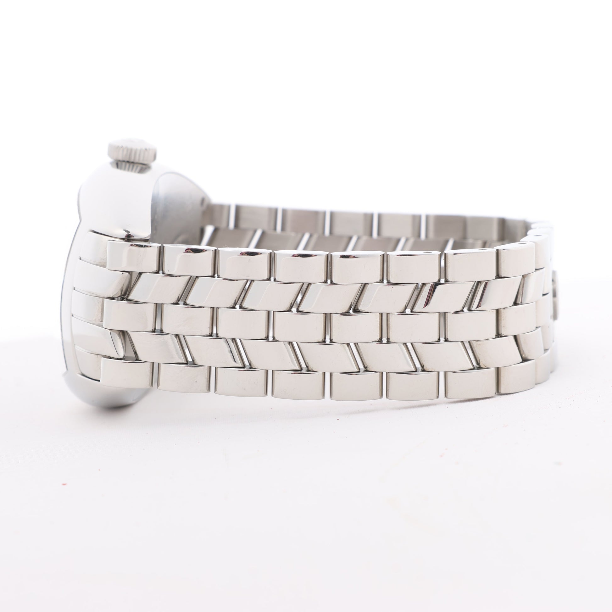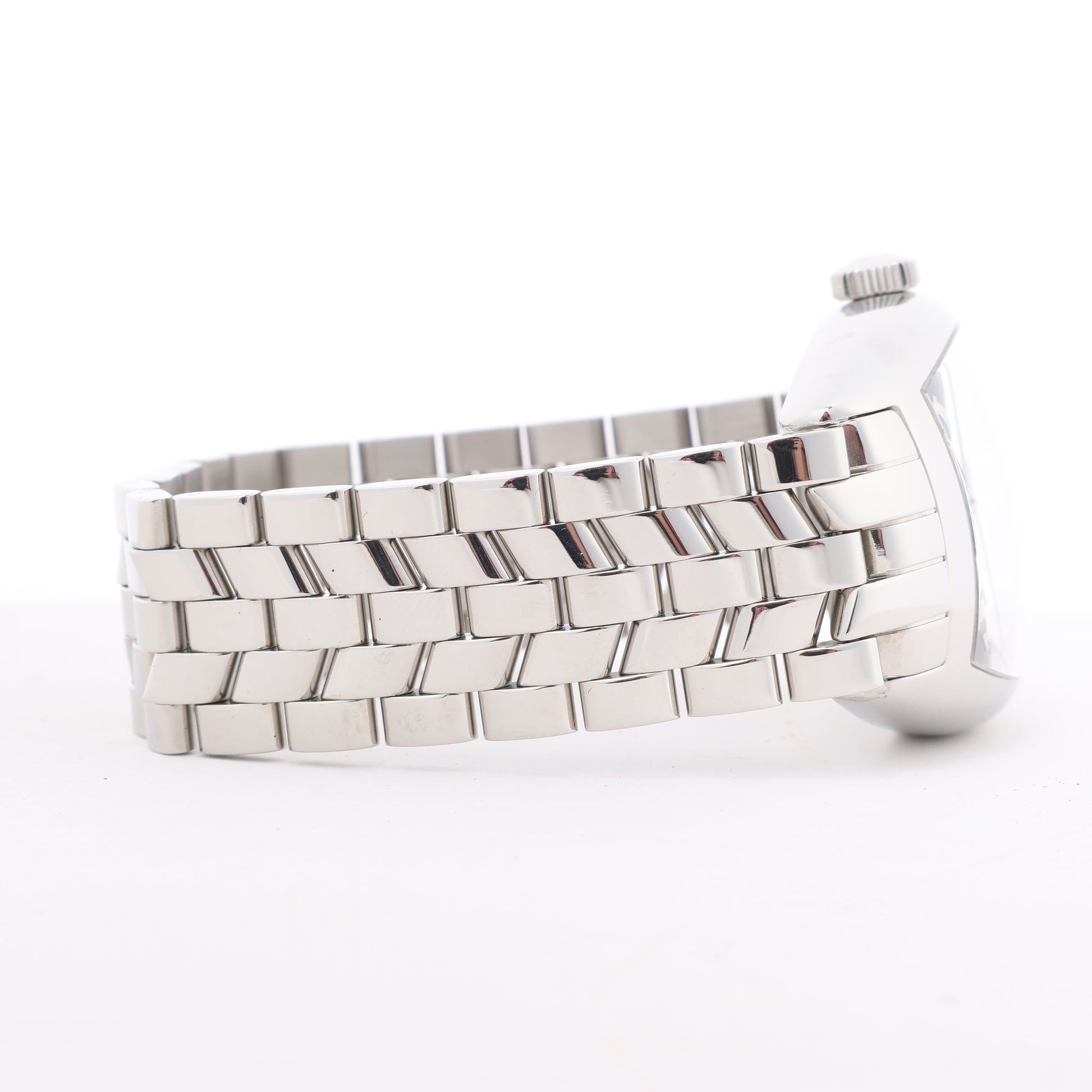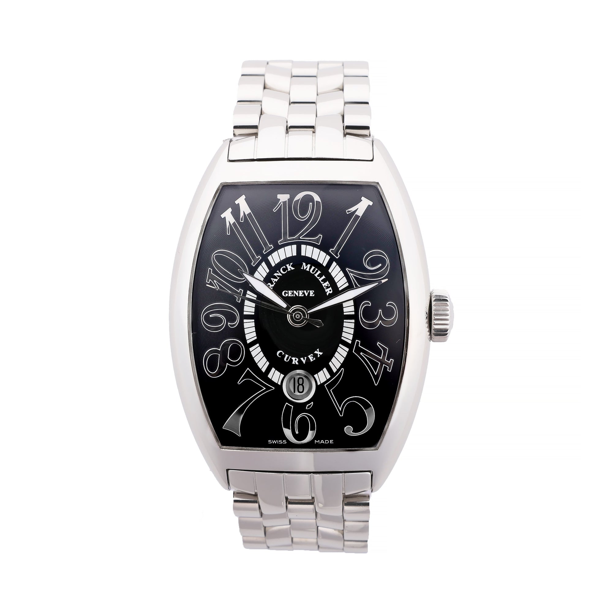 Franck Muller Tonneau Curvex 8880SCDT REL aus Edelstahl mit markantem schwarzen Zifferblatt. Markantes, geschwungenes Gehäuse, übergroße Ziffern und Datumsanzeige – eine ikonische Mischung aus avantgardistischem Design und Schweizer Handwerkskunst.