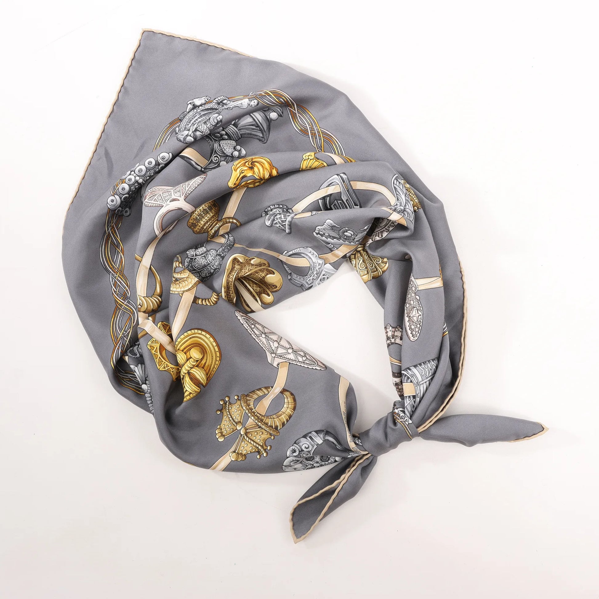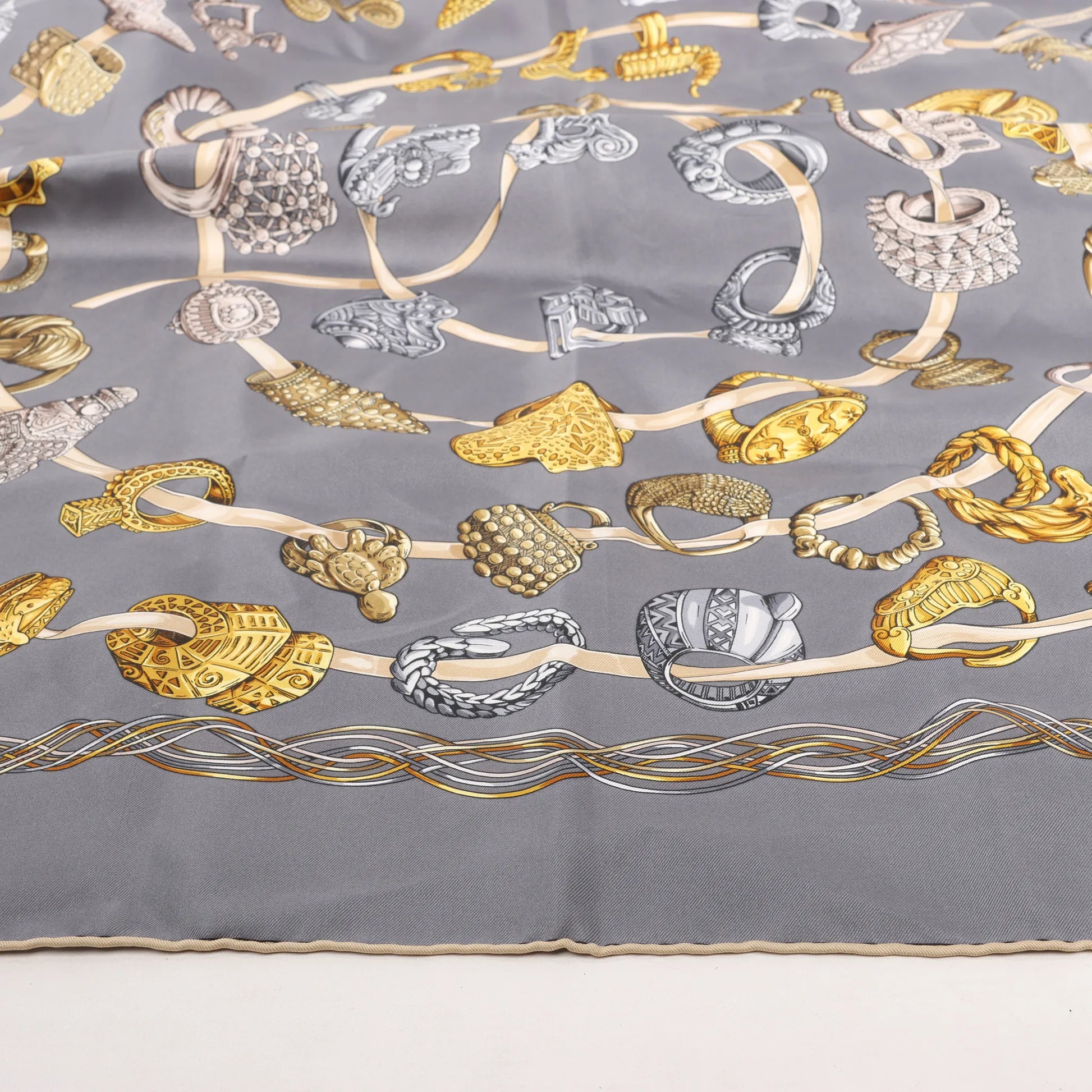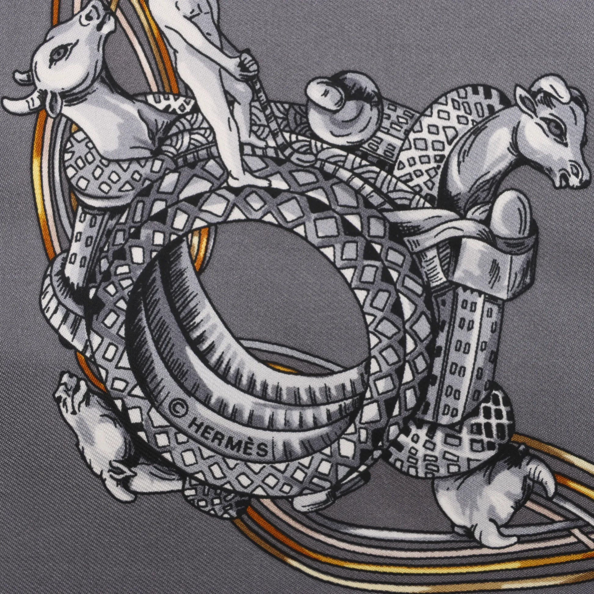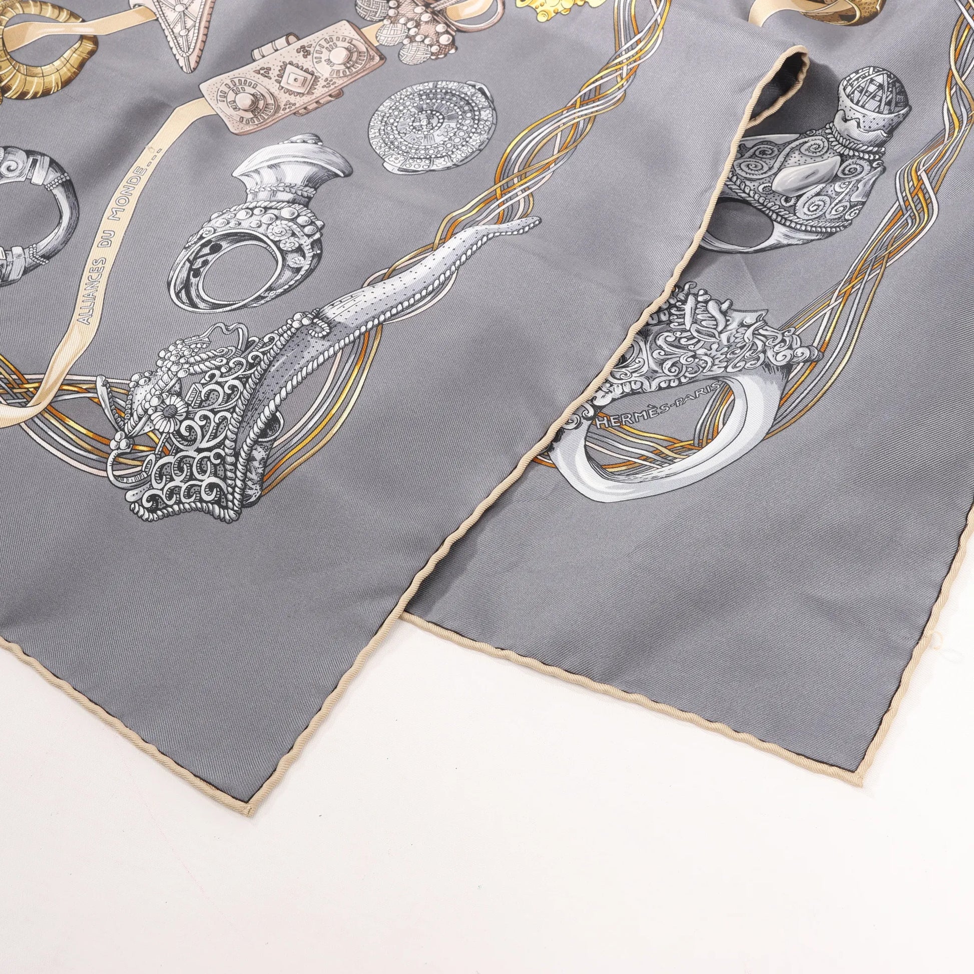 Hermès Carré 90 „ALLIANCES DU MONDE“ Seidentaschentuch in Grau