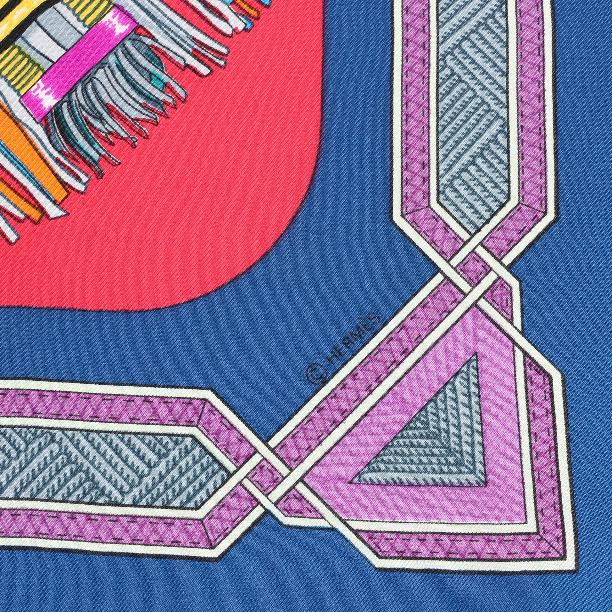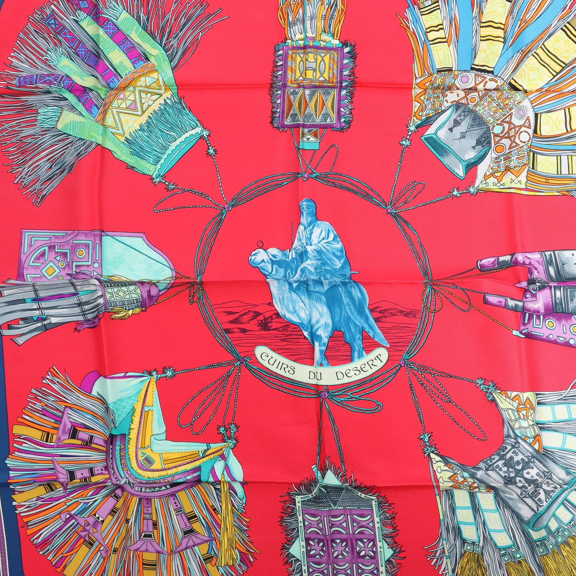 Hermès Carré 90 „Cuirs Du Desert“ Seidentaschentuch in Marineblau x Rot