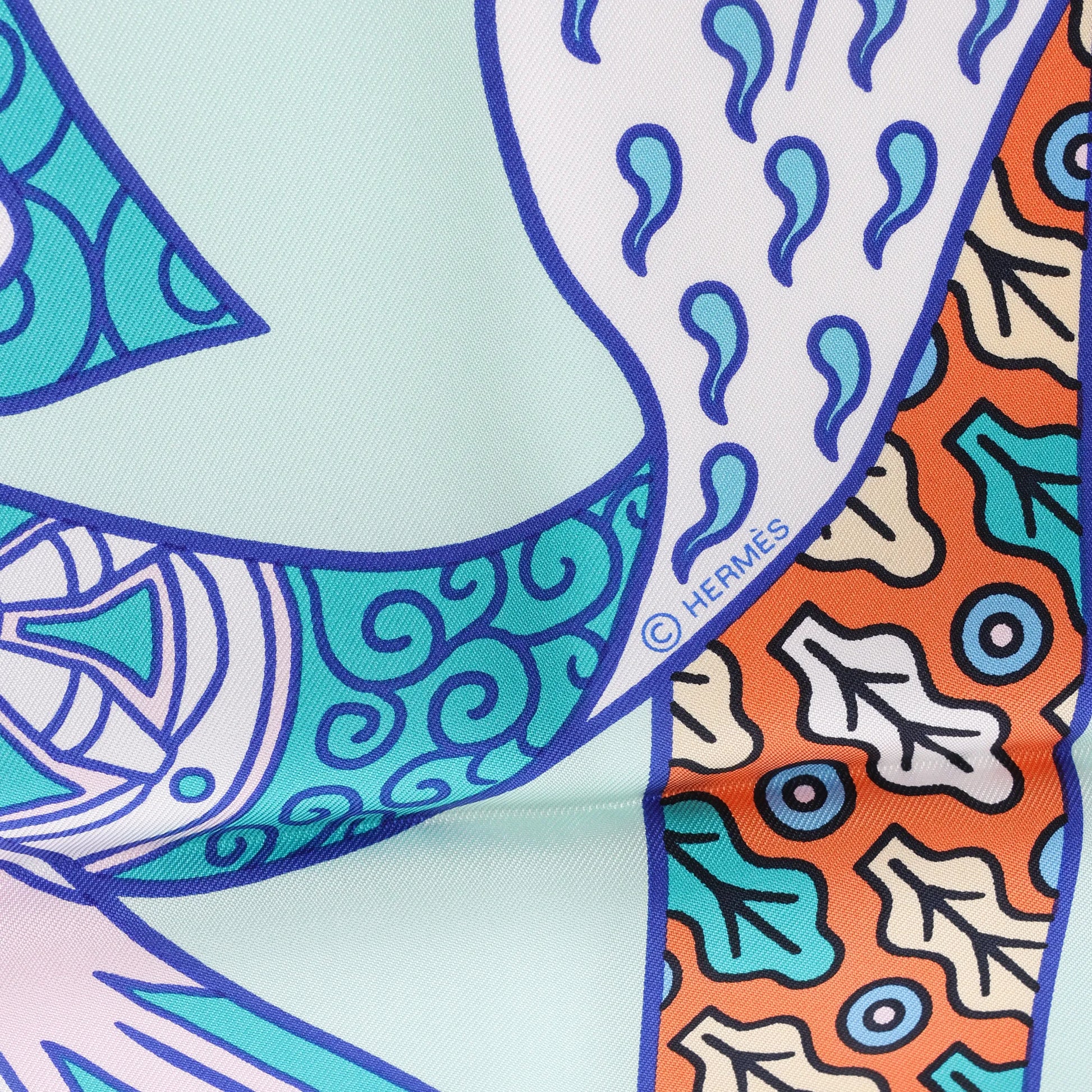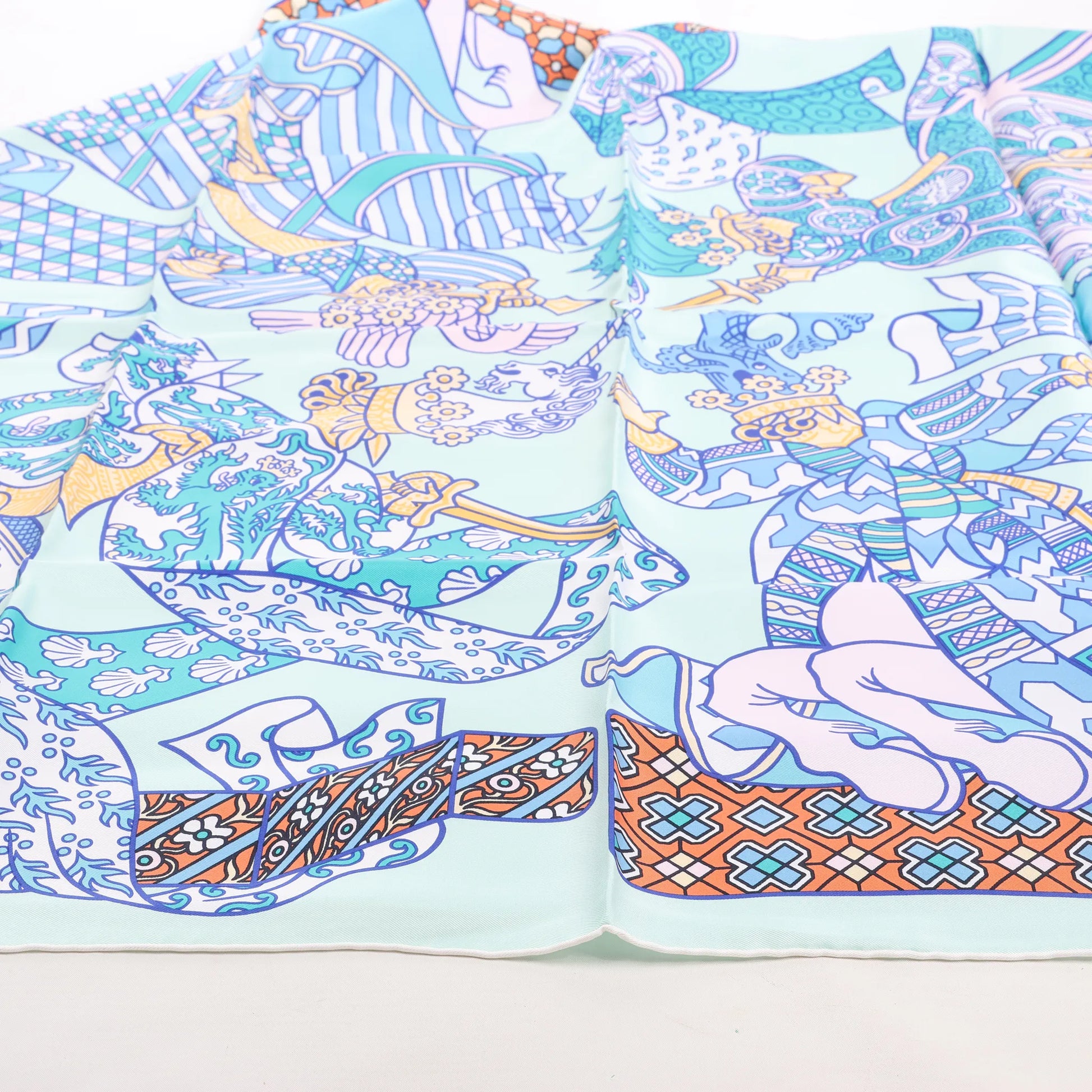 Hermès Carré 90 „DUELS ONIRIQUES“ Seidentaschentuch in Blau