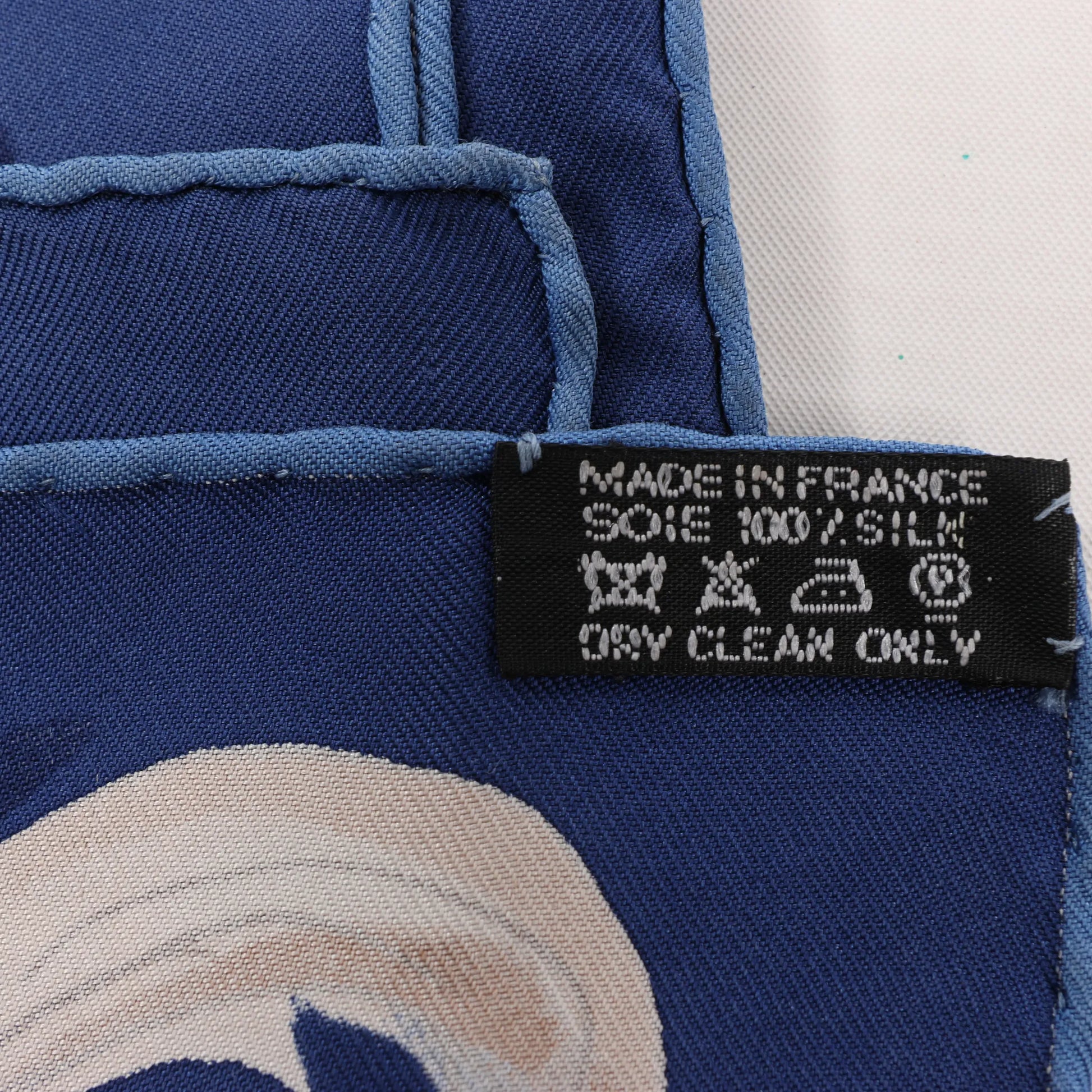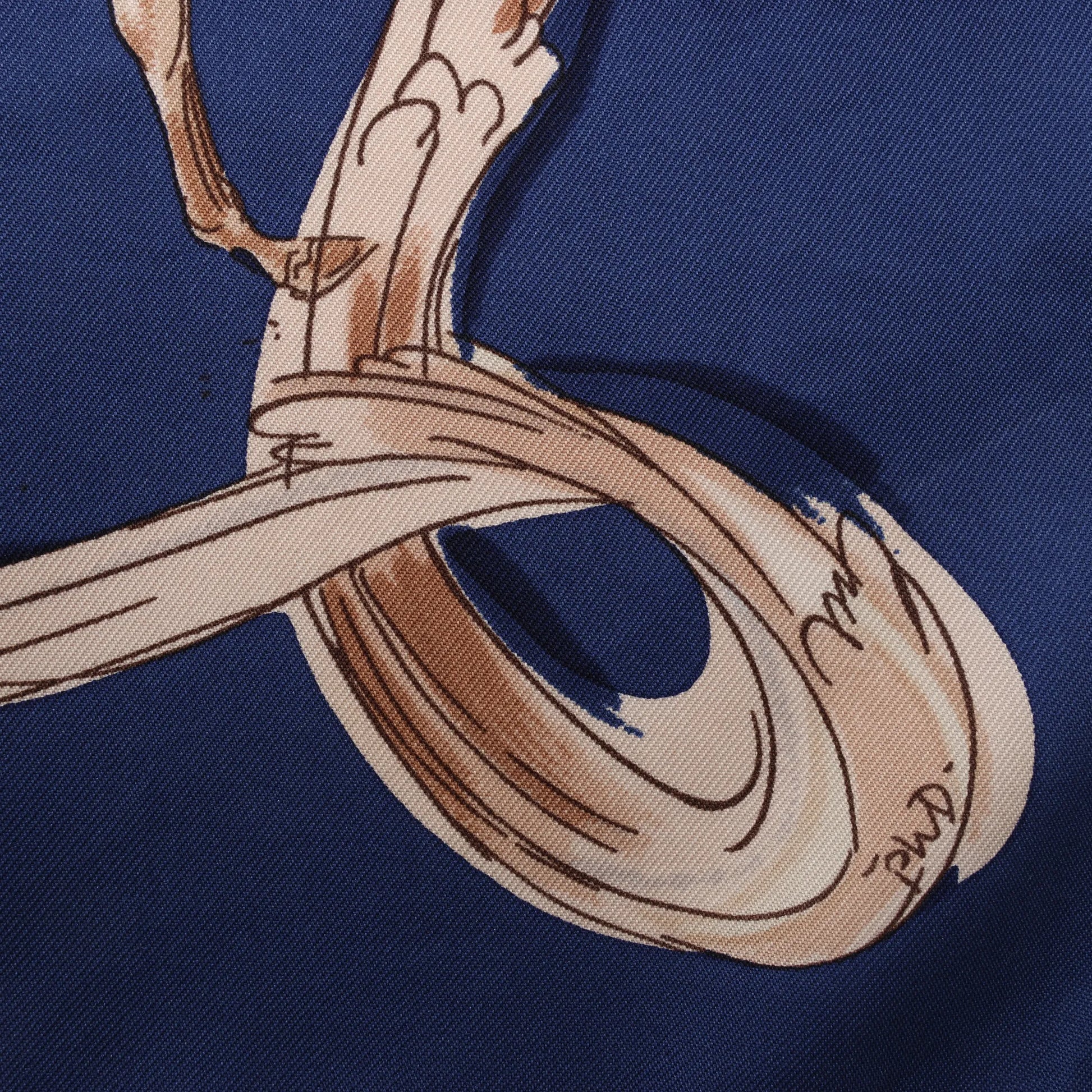 Hermès Carré 90 „ECOLE PORTUGAISE D'ART EQUESTRE“ Seidentaschentuch in Marineblau