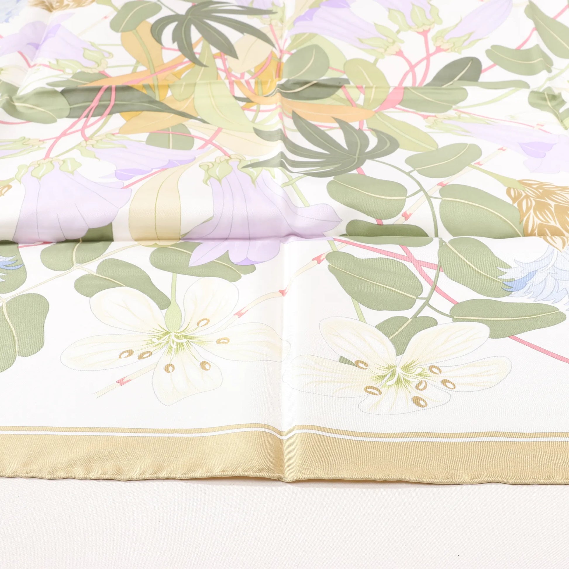 Hermès Carré 90 „Flora Graeca“ Seidentaschentuch in Beige