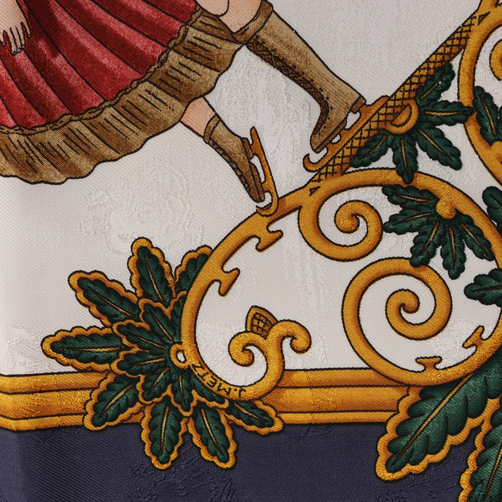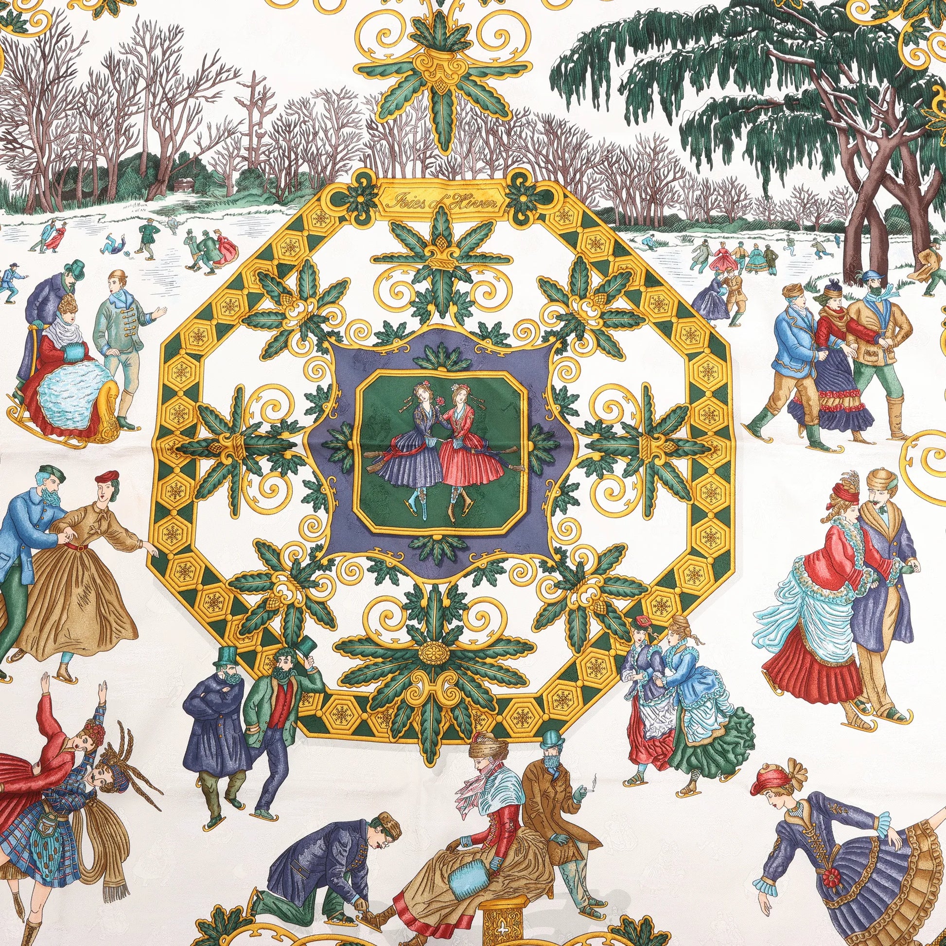 Genießen Sie den winterlichen Charme mit dem Hermès Carré 90 Seidenschal „Joies d’Hiver“ in Marineblau. Das aus 100 % Seide gefertigte Stück besticht durch eine lebhafte Vintage-Eislaufszene, die von kunstvollen Details umrahmt wird – perfekt für saisonale Eleganz und zeitlosen Stil.