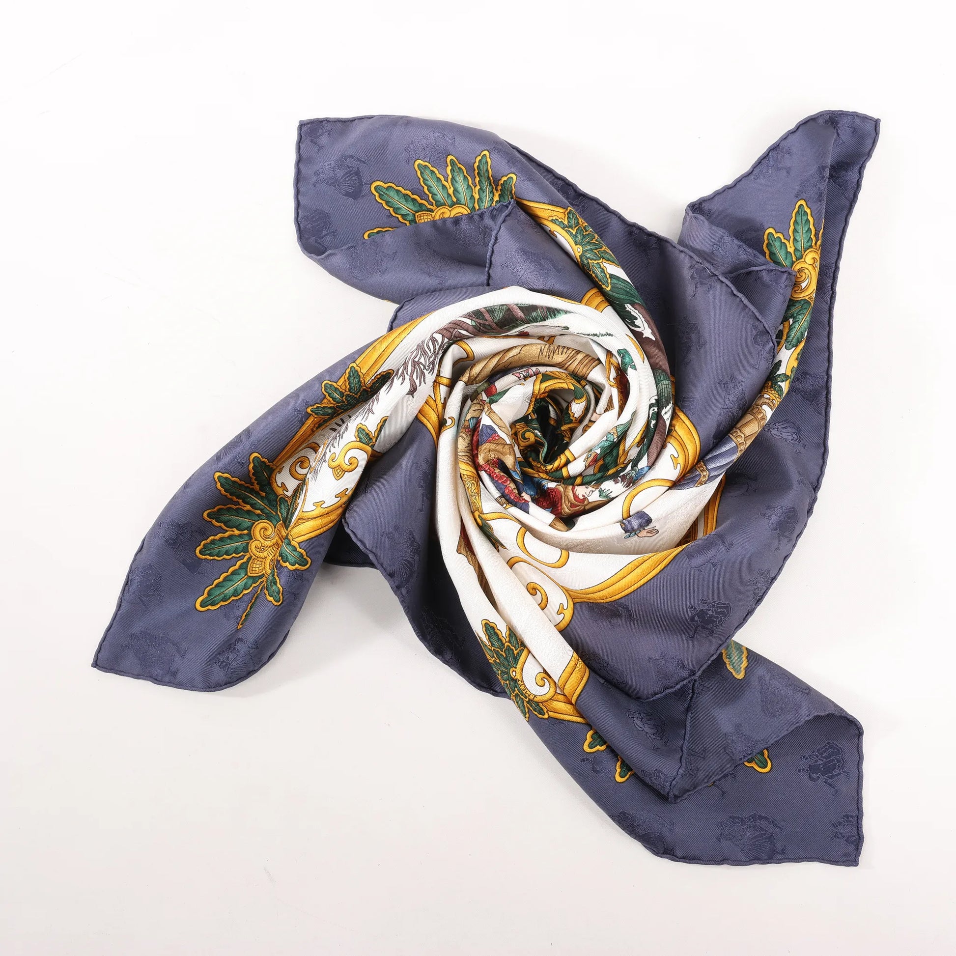 Hermès Carré 90 „Joies d'Hiver“ Seidentaschentuch in Marineblau