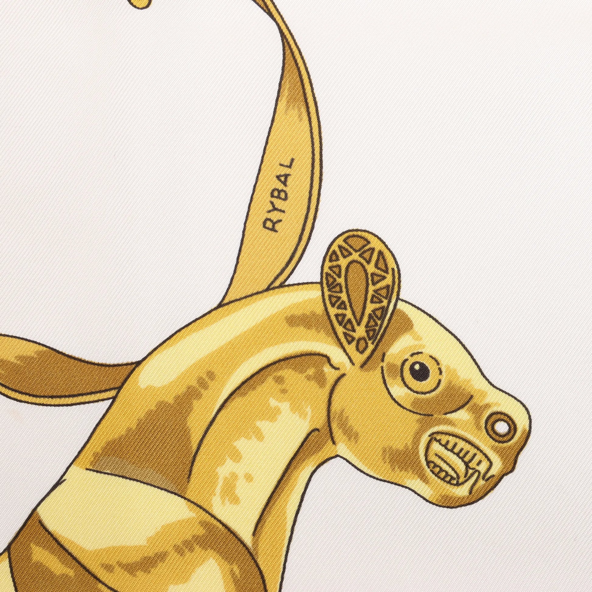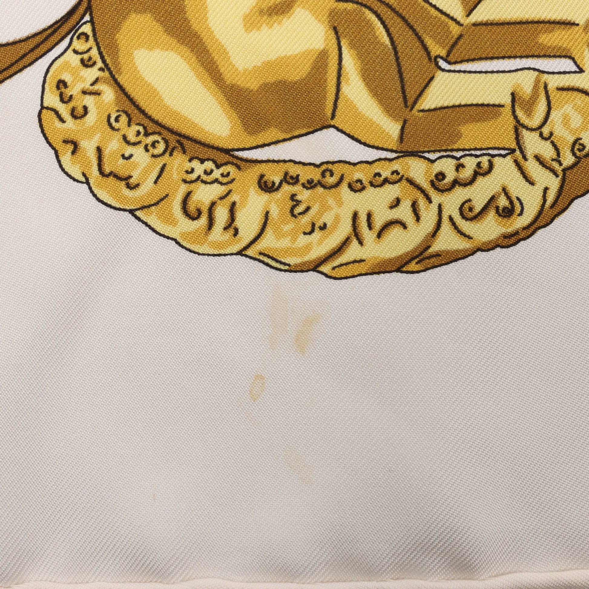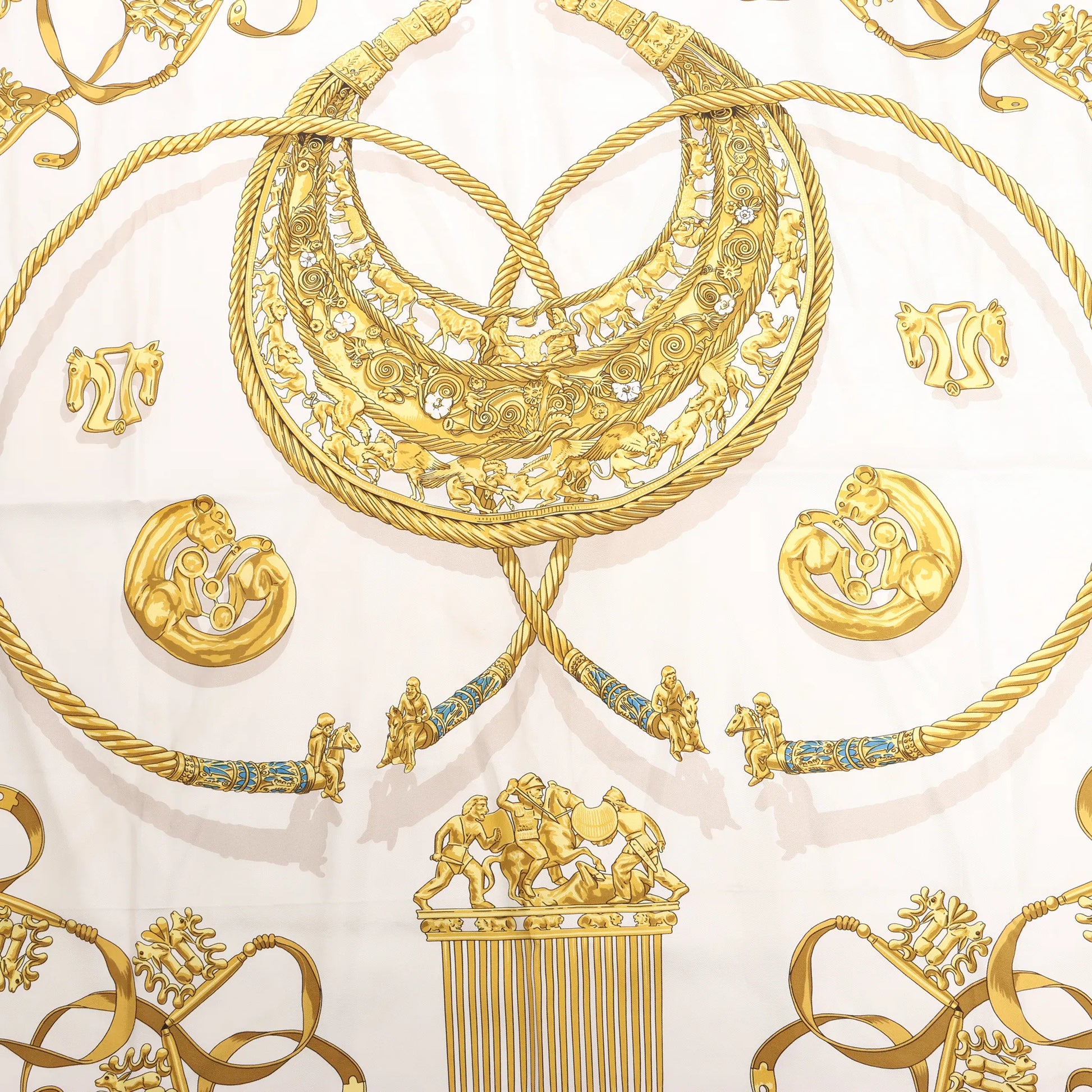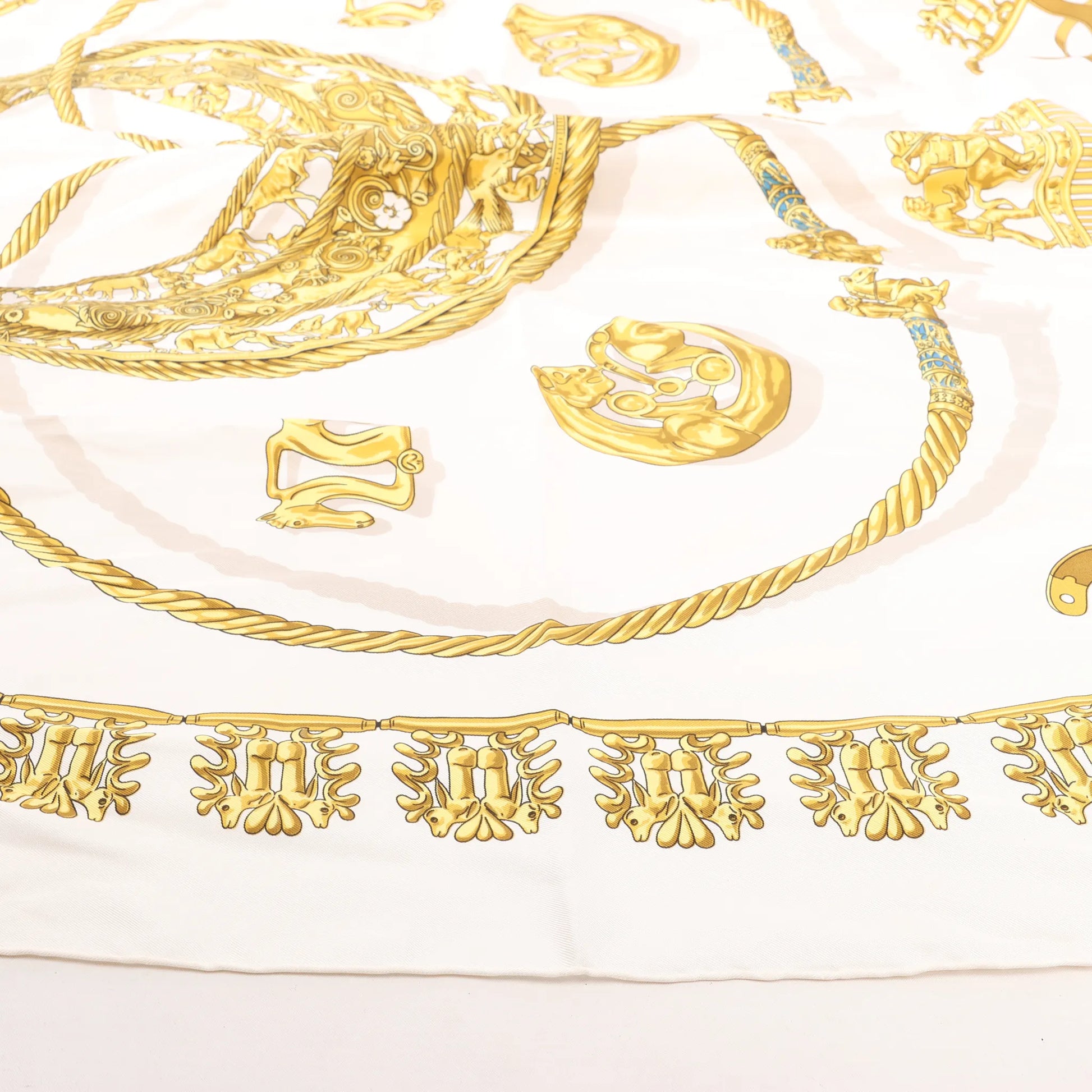 Hermès Carré 90 „LES CAVALIERS D'OR“ Seidentaschentuch in Weiß