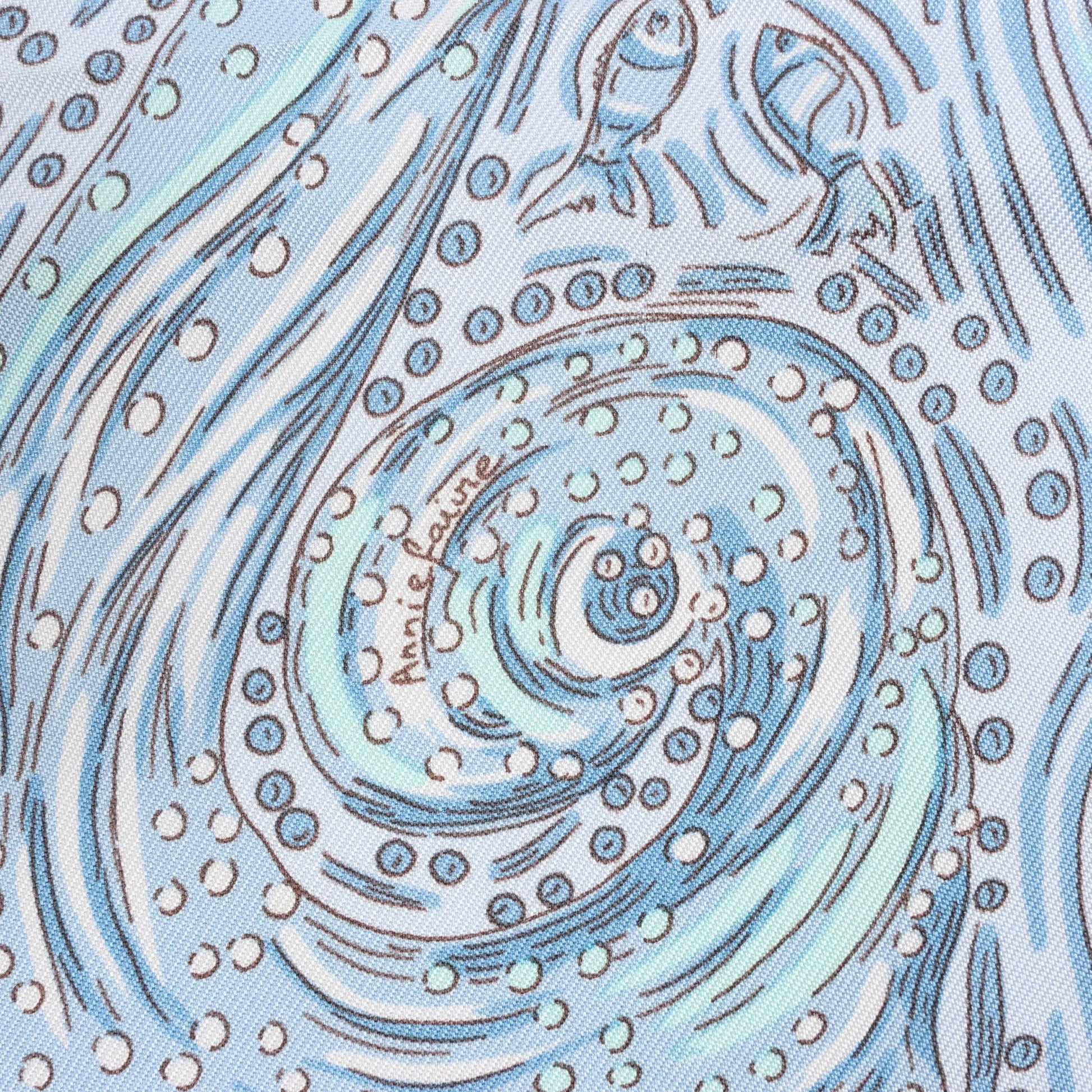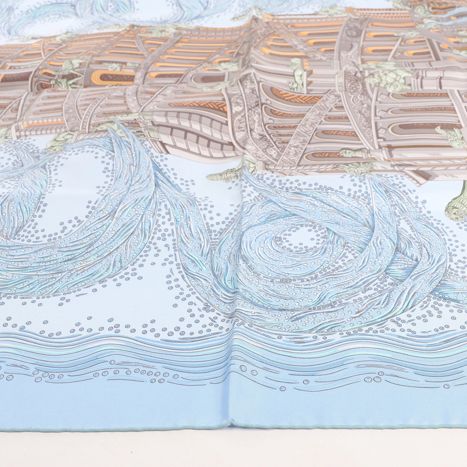 Hermès Carré 90 „LES RIVIERES DE BABEL“ Seidentaschentuch in Blau