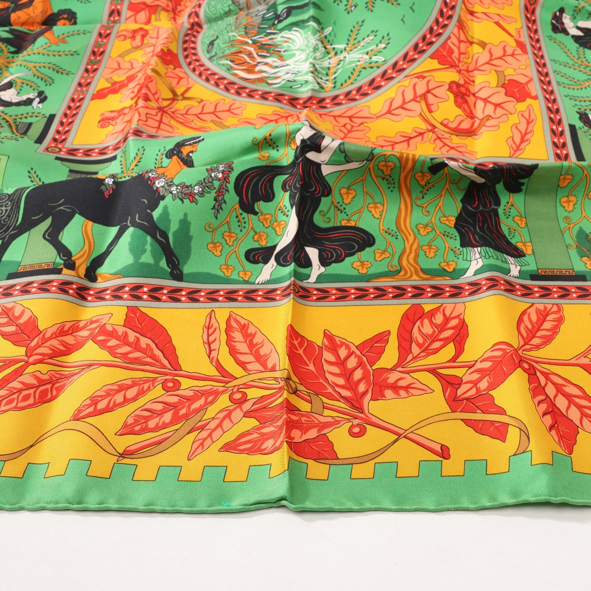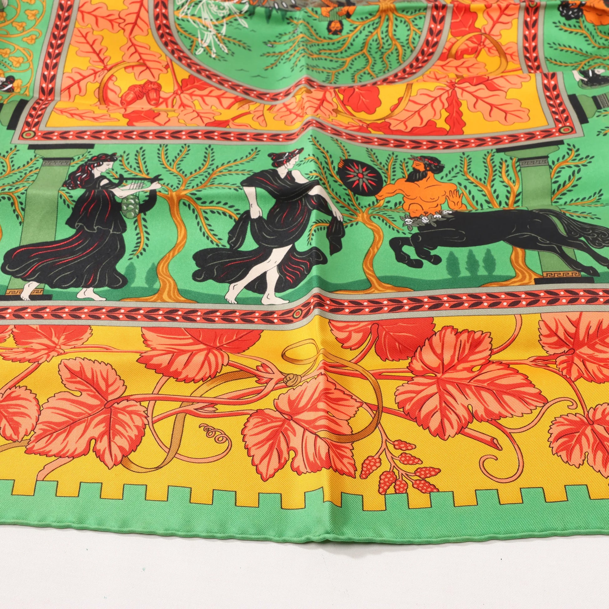 Hermès Carré 90 „MUSIQUE DES DIEUX“ Seidentaschentuch in Orange x Grün