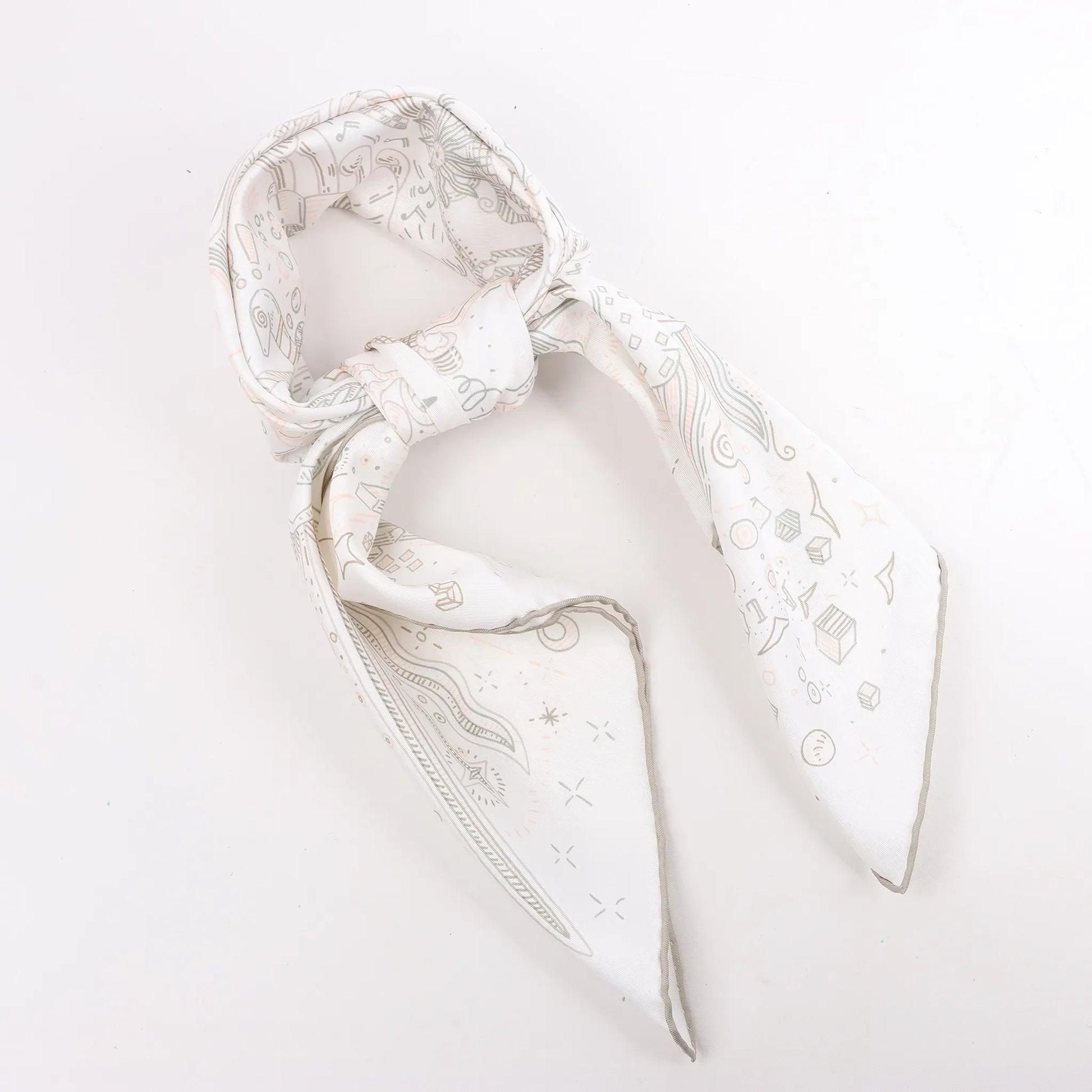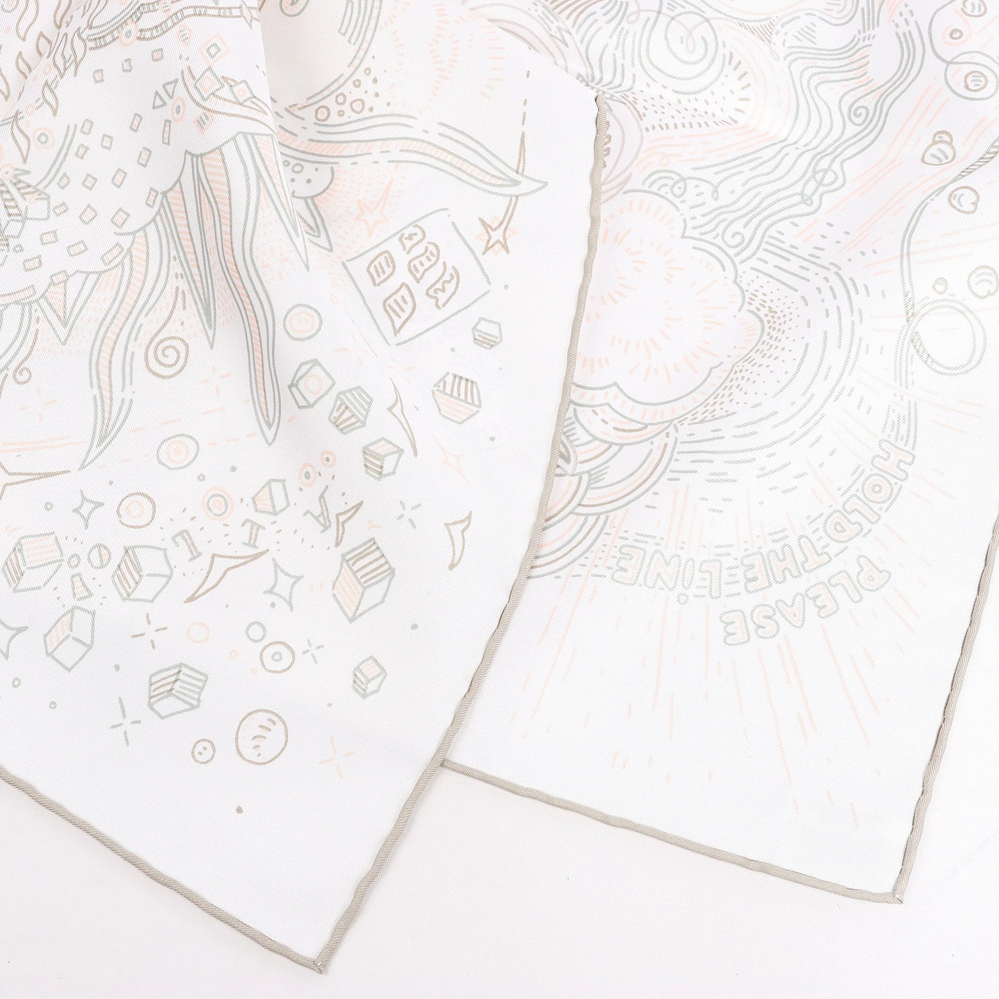 Verleihen Sie Ihrem Look verspielte Eleganz mit dem weißen Seidentuch Hermès Carré 90 „Please Hold the Line“. Mit seinen skurrilen, liniengezeichneten Illustrationen in verschiedenen Farbtönen verleiht dieses luxuriöse Seidentuch jedem Outfit subtilen Charme und moderne Kunstfertigkeit.