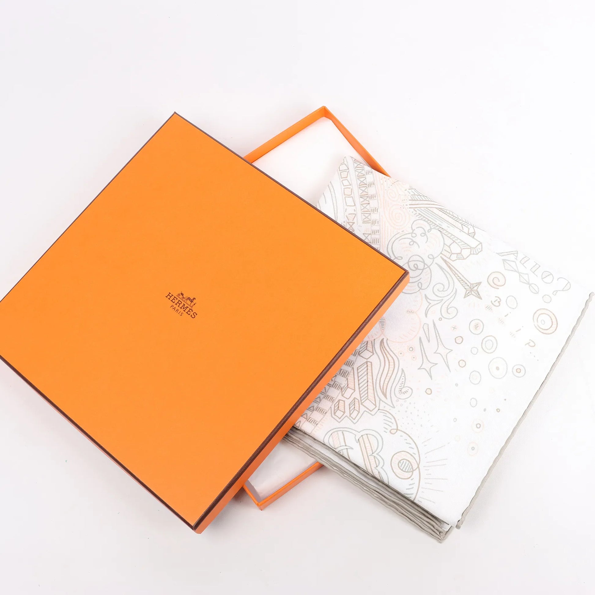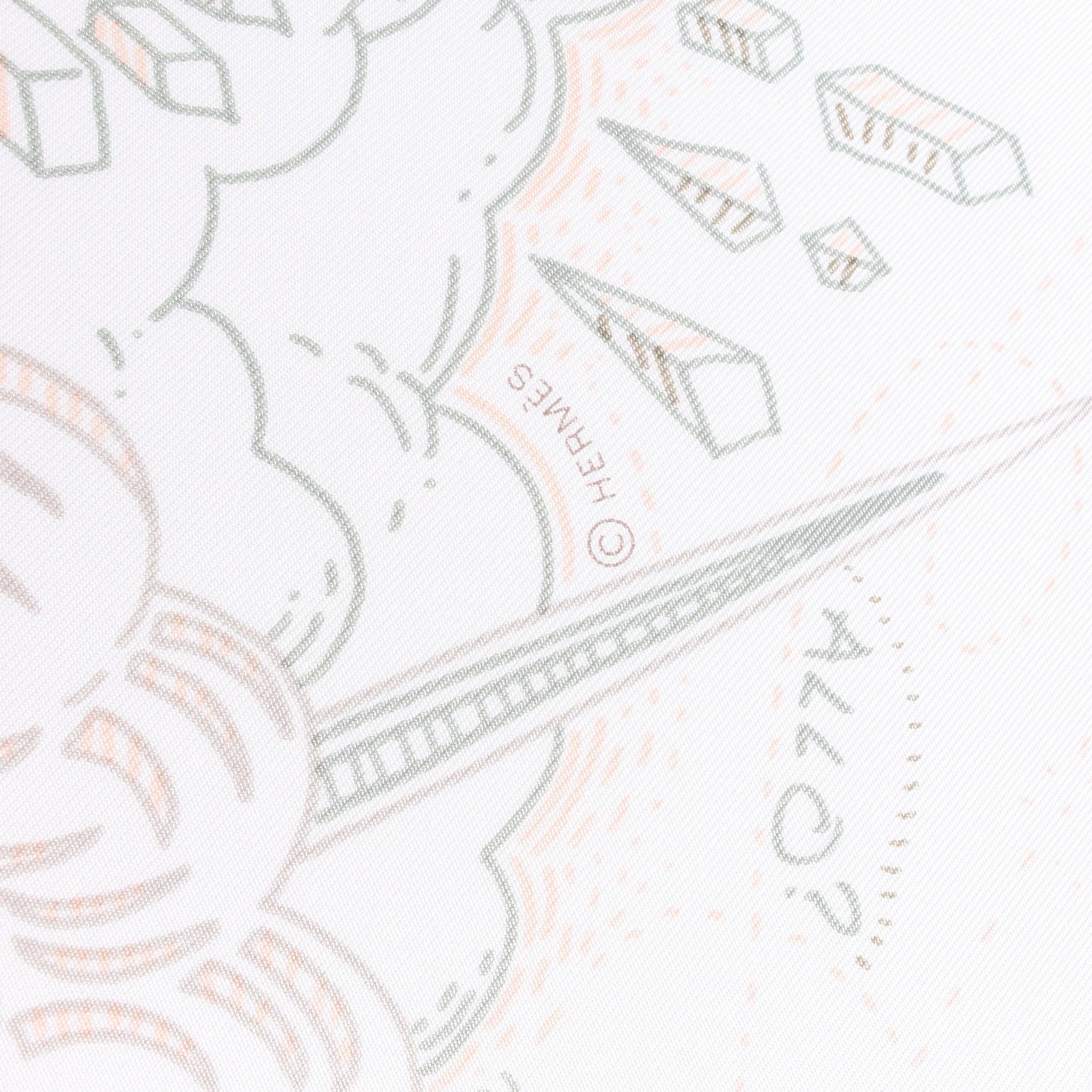 Hermès Carré 90 "BITTE HALTEN SIE DIE LINIE" Seidentaschentuch in Weiß