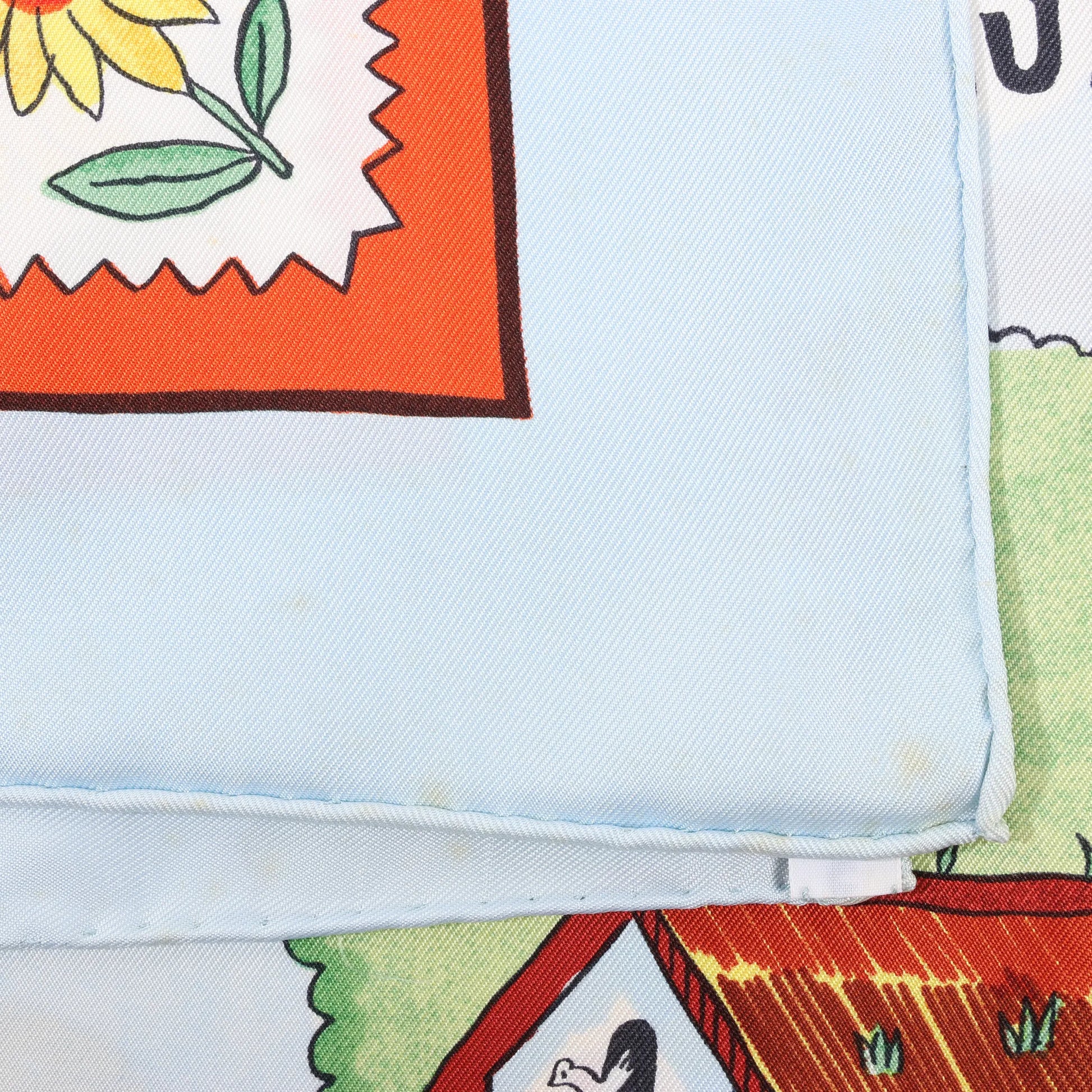 Hermès Carré 90 „RETOUR A LA TERRE“ Seidentaschentuch in Hellblau