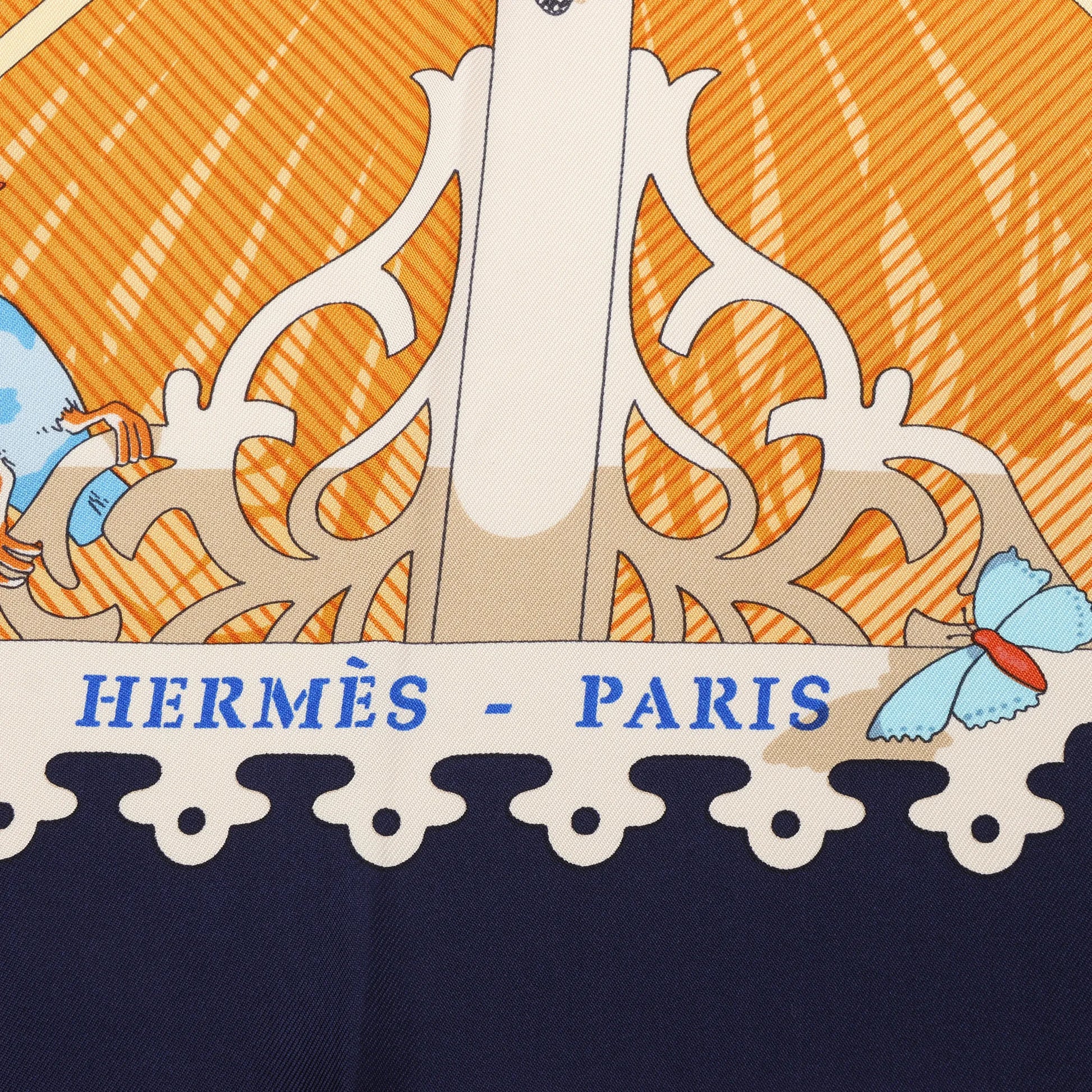 Hermès Carré 90 „VARANGUES“ Seidentaschentuch in Marineblau x Orange