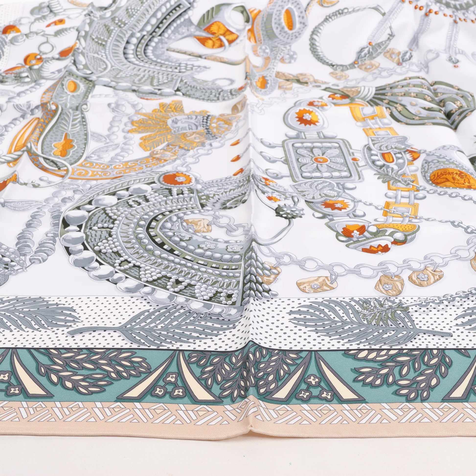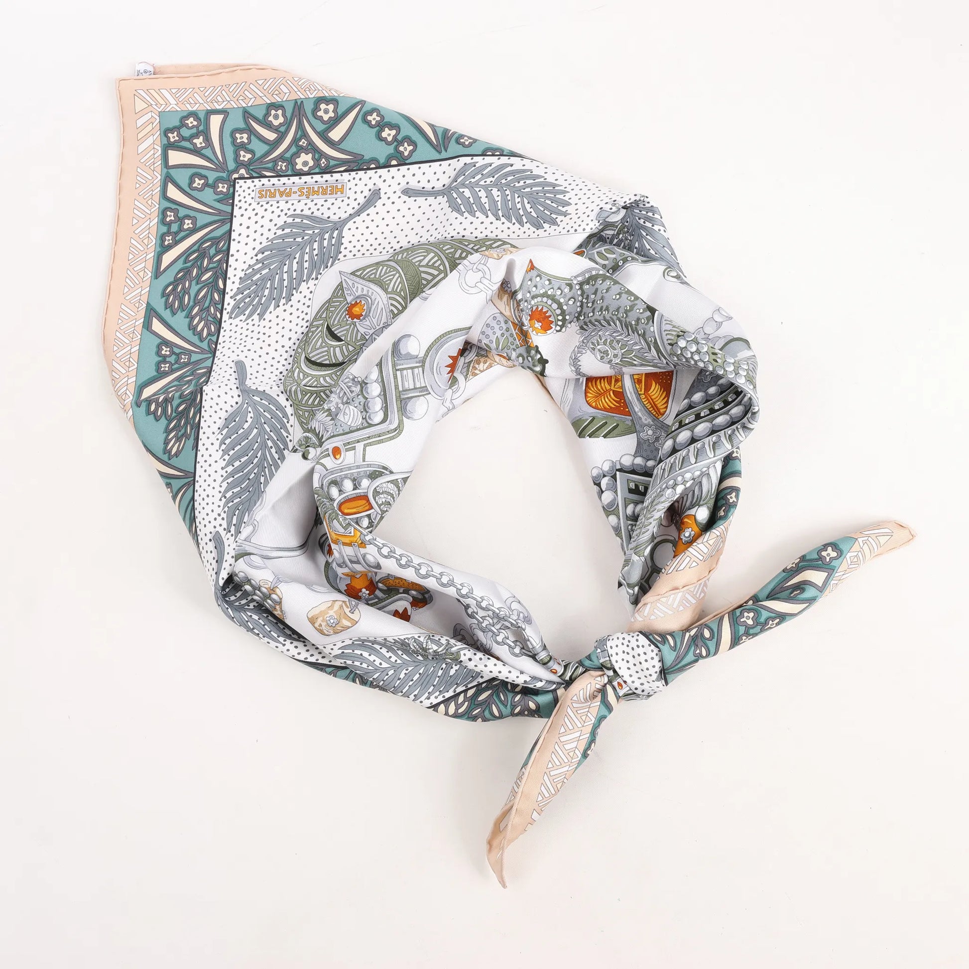 Hermès Carré 90 „Zenobie Reine de Palmyre“ Seidentaschentuch in Beige x Grün