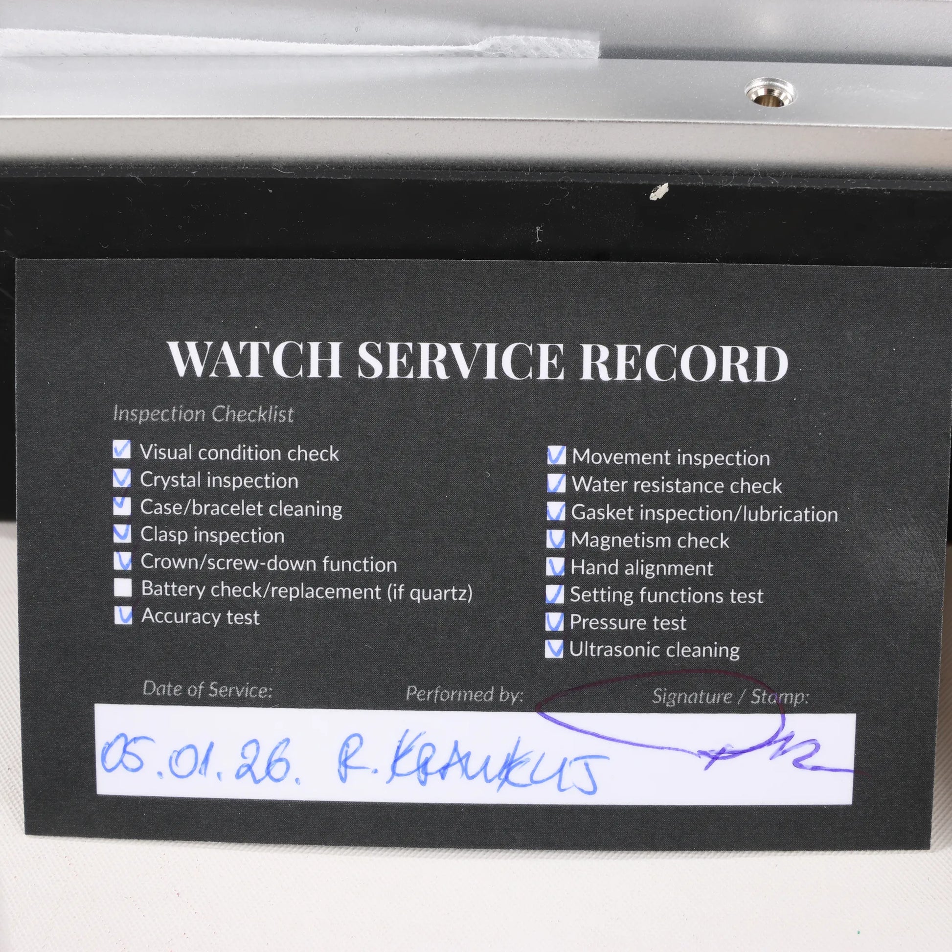 Lieferumfang: Karton (beschädigt), Zertifikat, Markenbroschüre, Servicekarte