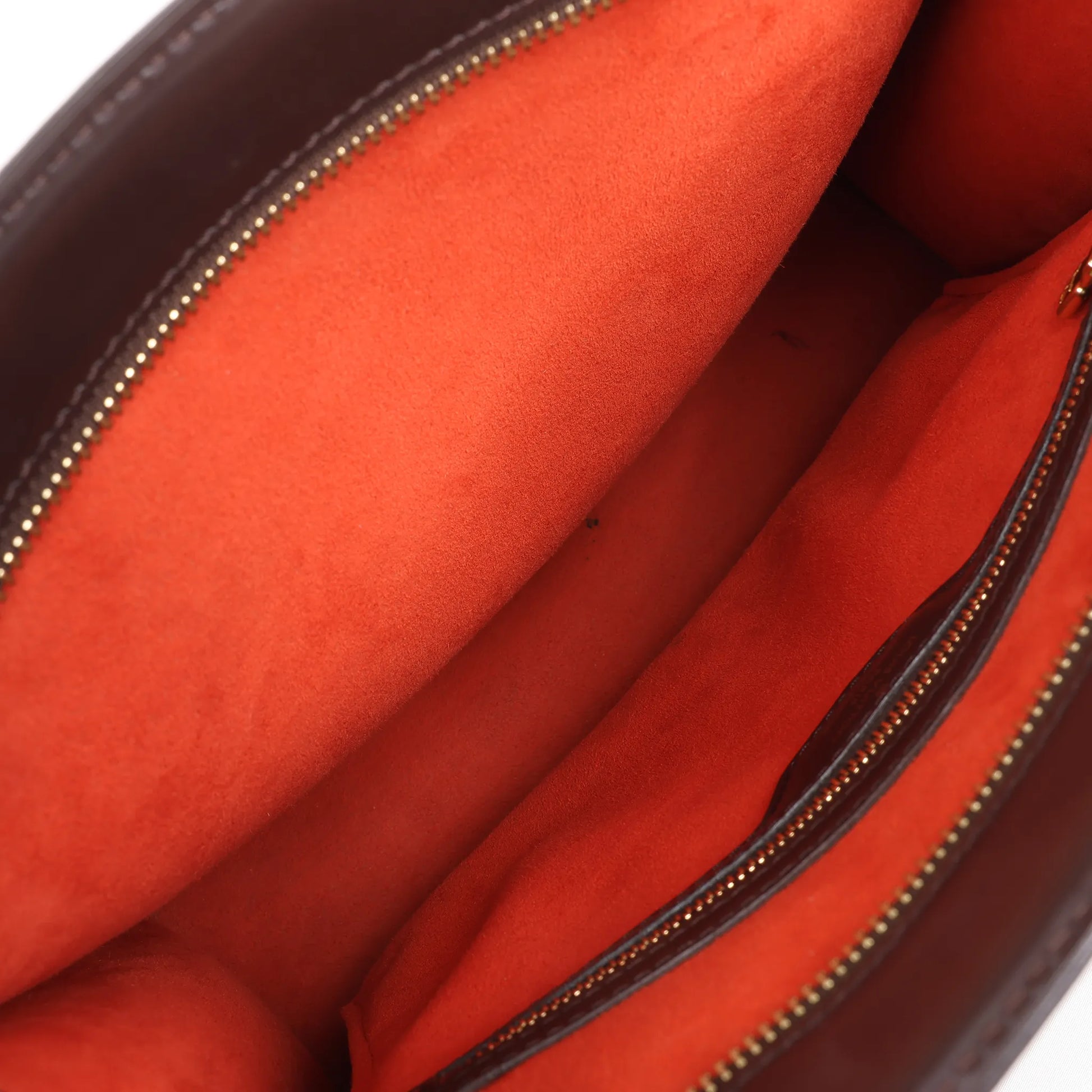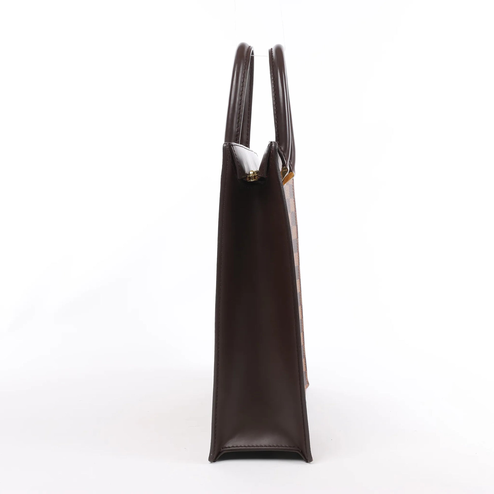 Die Louis Vuitton Venice PM N51145 ist eine elegante, strukturierte Handtasche aus charakteristischem Damier Ebene Canvas mit elegantem dunkelbraunem Lederbesatz. Ihre kastenförmige Silhouette und die gerollten Griffe machen sie zu einer edlen Wahl für elegante Alltagskleidung.