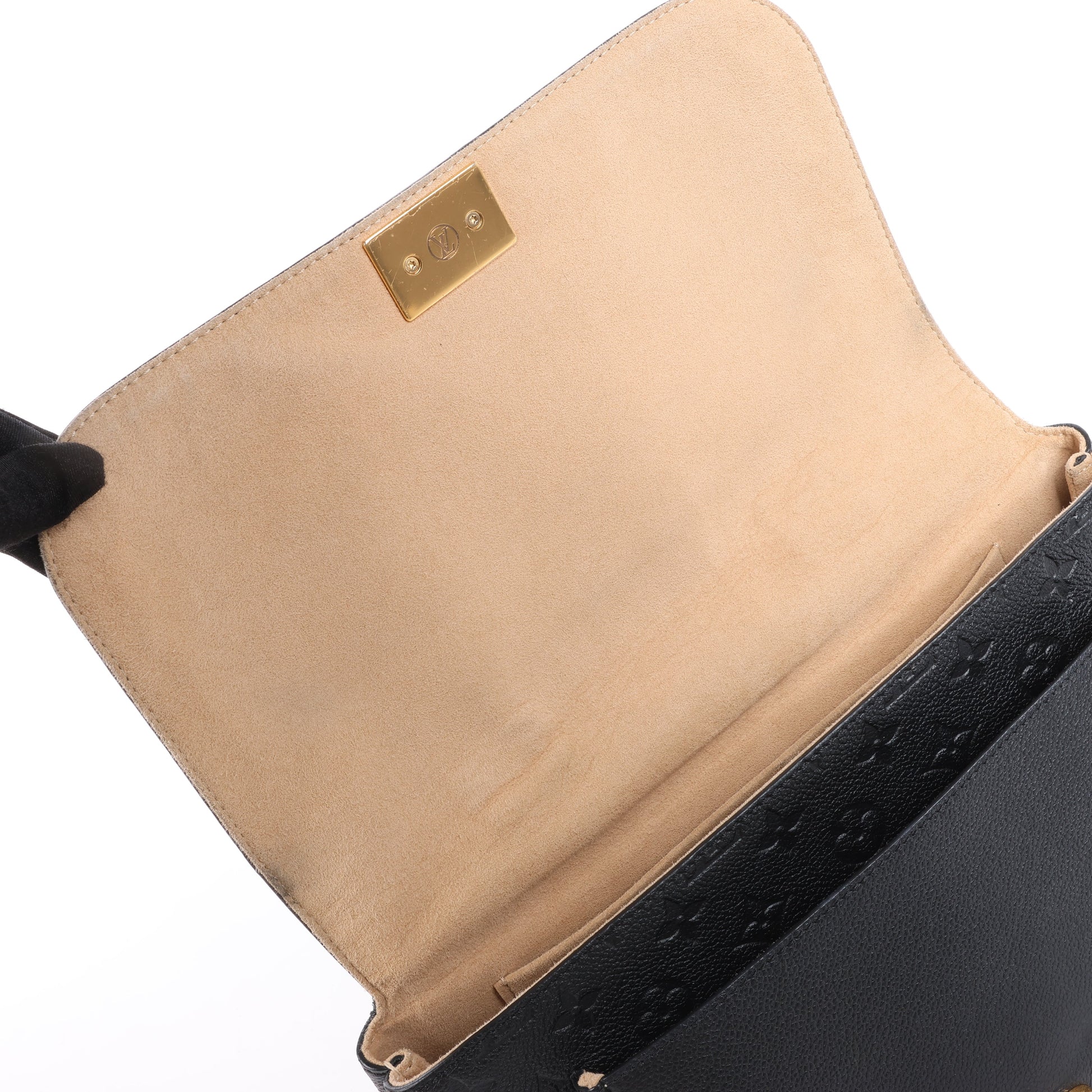 Raffiniert und vielseitig: Diese Louis Vuitton Marignan aus schwarzem Monogram Empreinte-Leder besticht durch ihre strukturierte Silhouette, den oberen Tragegriff und ein goldfarbenes Vorhängeschloss-Detail. Ein schickes 2-Wege-Design, perfekt für moderne Eleganz.
