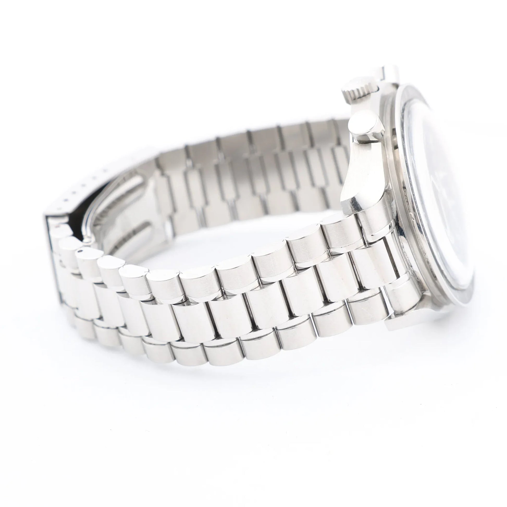 Die Omega Speedmaster 3510.50 ist ein legendärer Automatik-Chronograph aus Edelstahl mit markantem schwarzen Zifferblatt, Tachymeterlünette und Schweizer Präzision. Eine klassische Ikone aus der Raumfahrtgeschichte, gebaut für den Alltag.