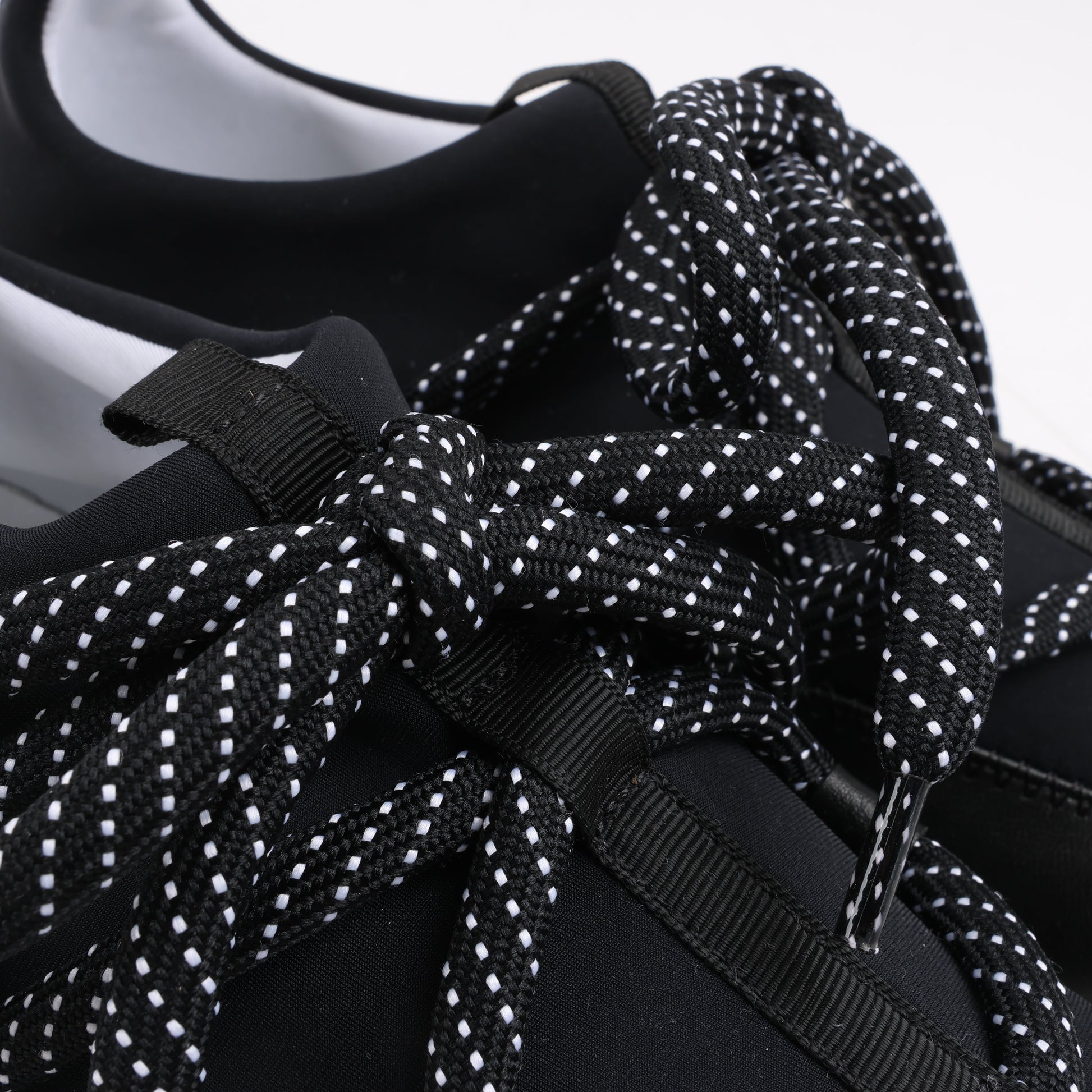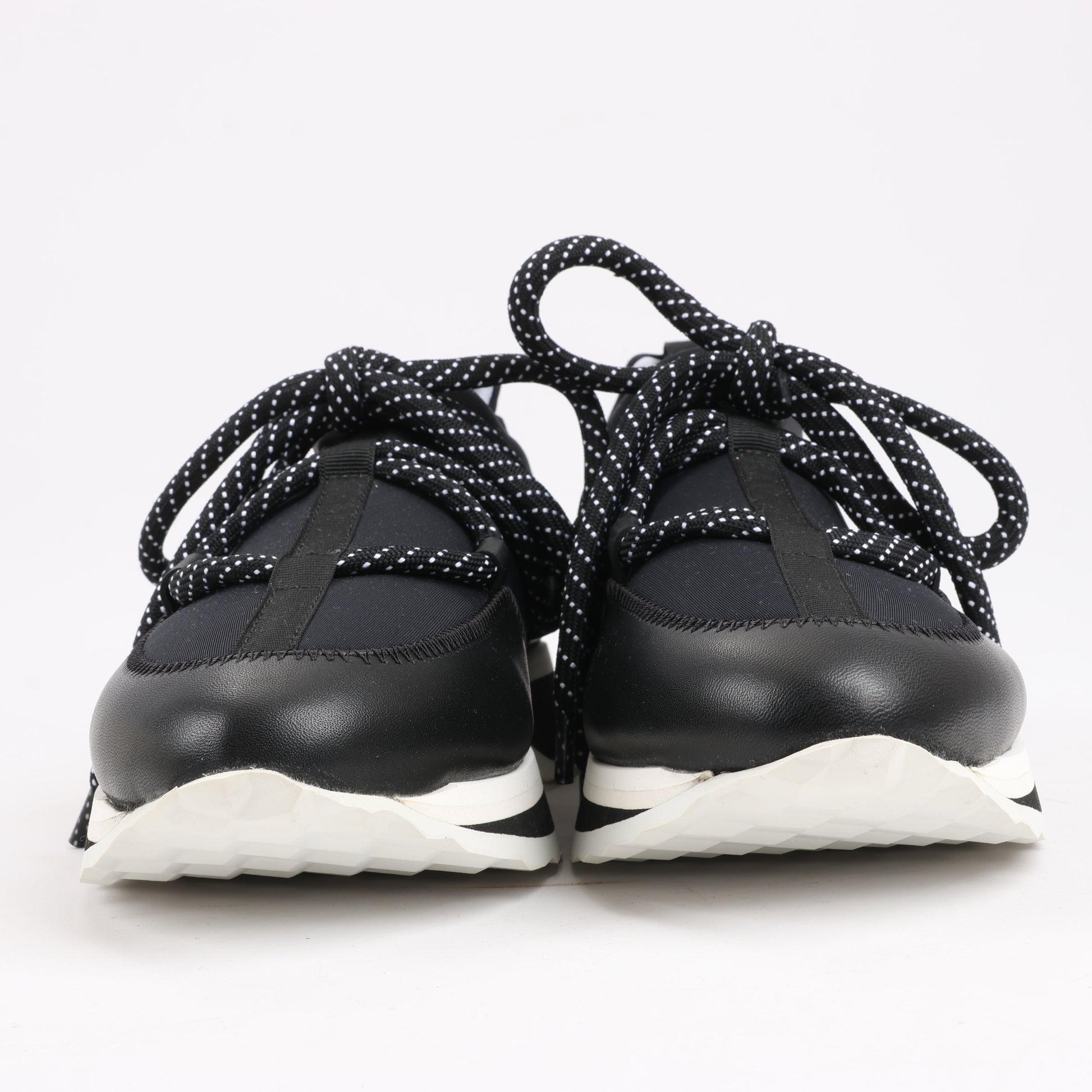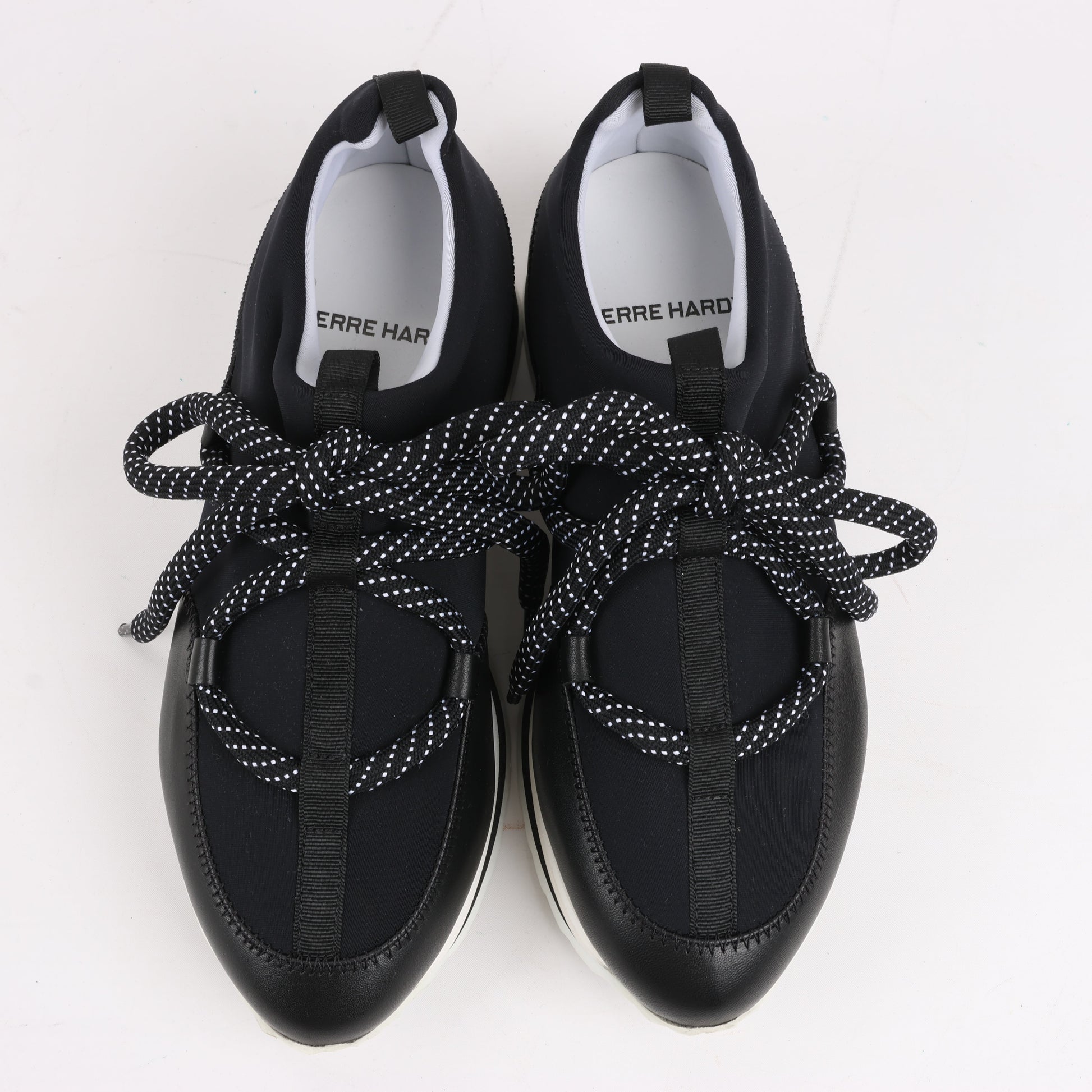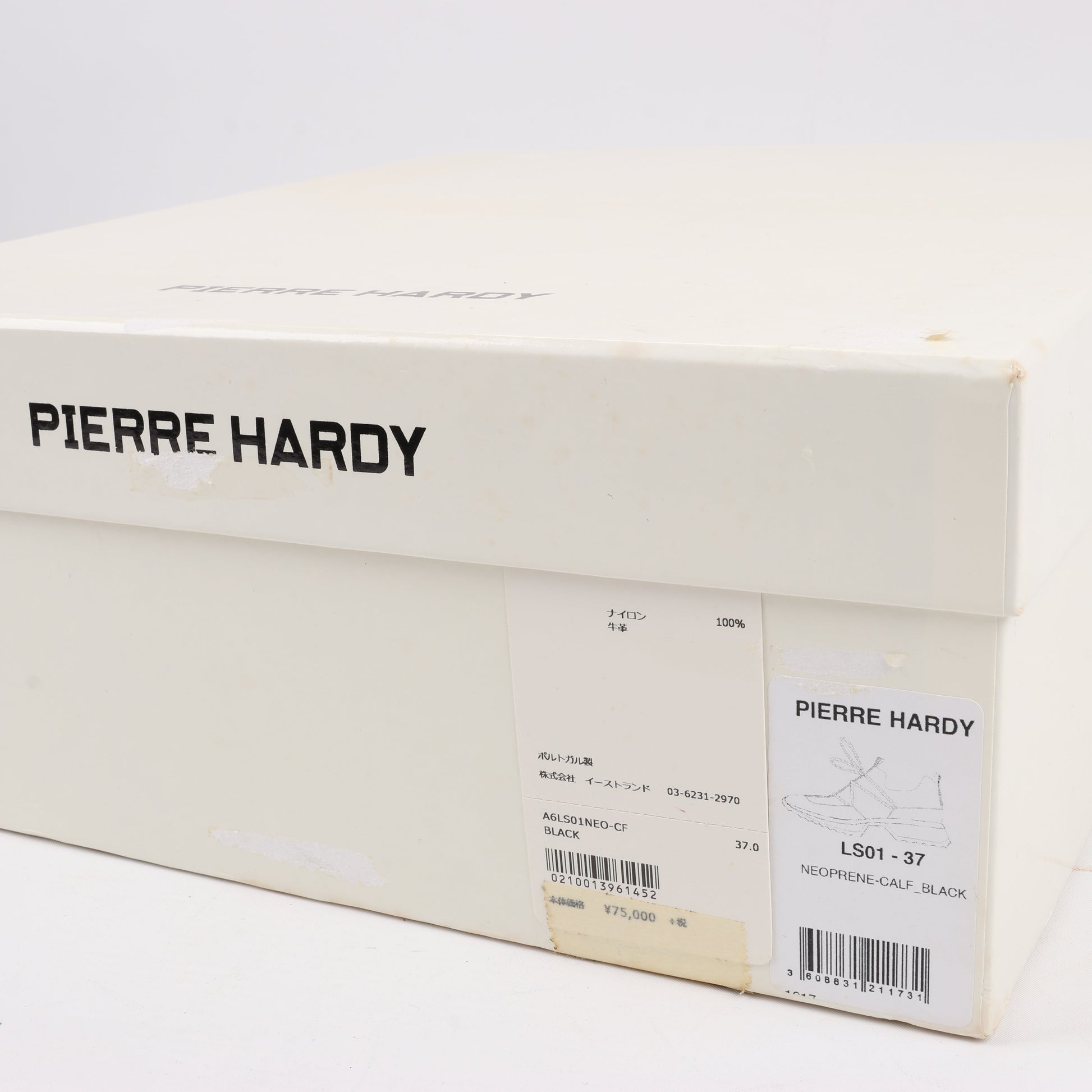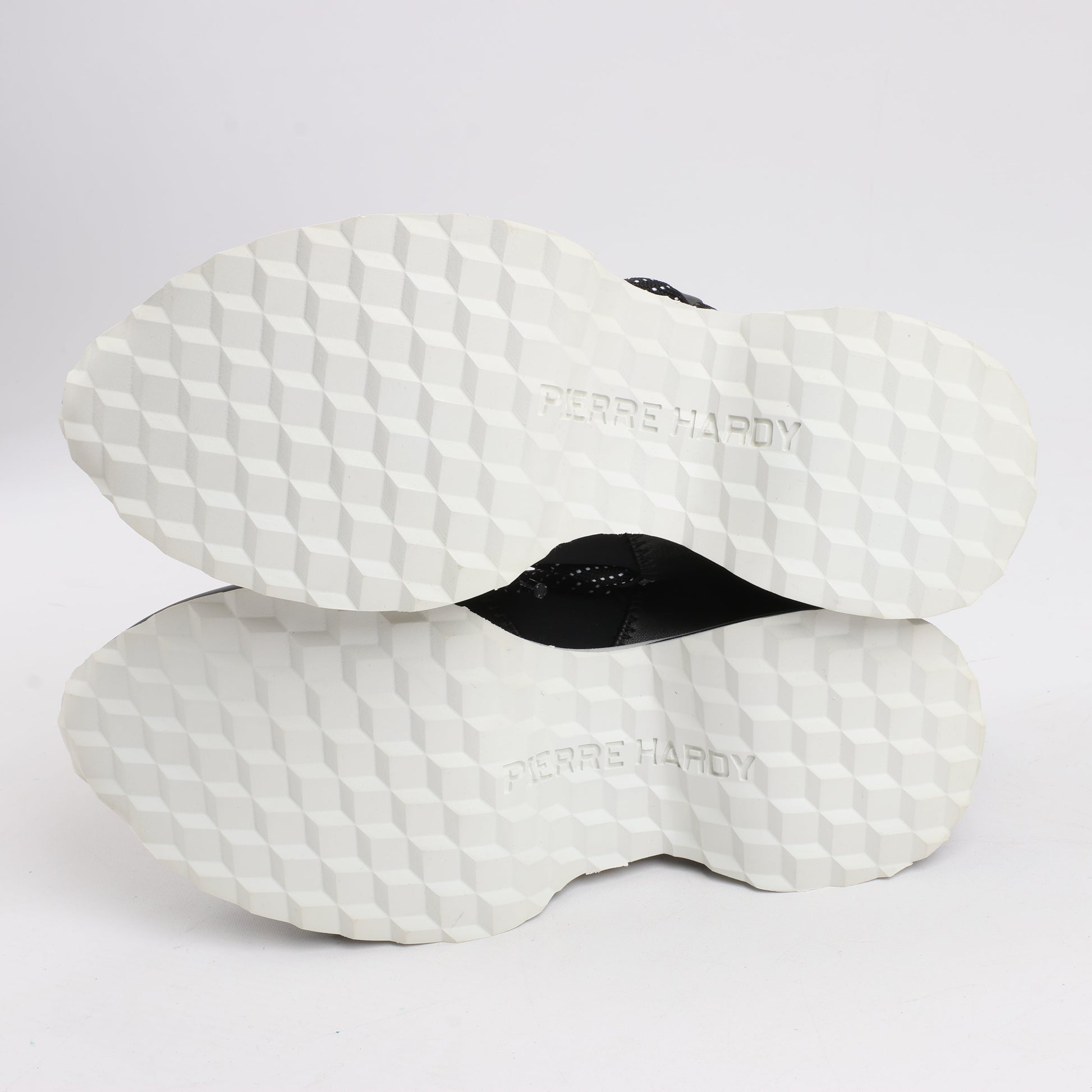 Pierre Hardy Sneaker aus Leder und Textil in Schwarz und Marineblau, Größe 37 (EU). Eine gelungene Kombination aus Stil und Komfort mit übergroßen Schnürsenkeln, einer schlanken Silhouette und einer dynamischen Sohle. Perfekt, um lässigen Looks einen modernen, sportlichen Touch zu verleihen.