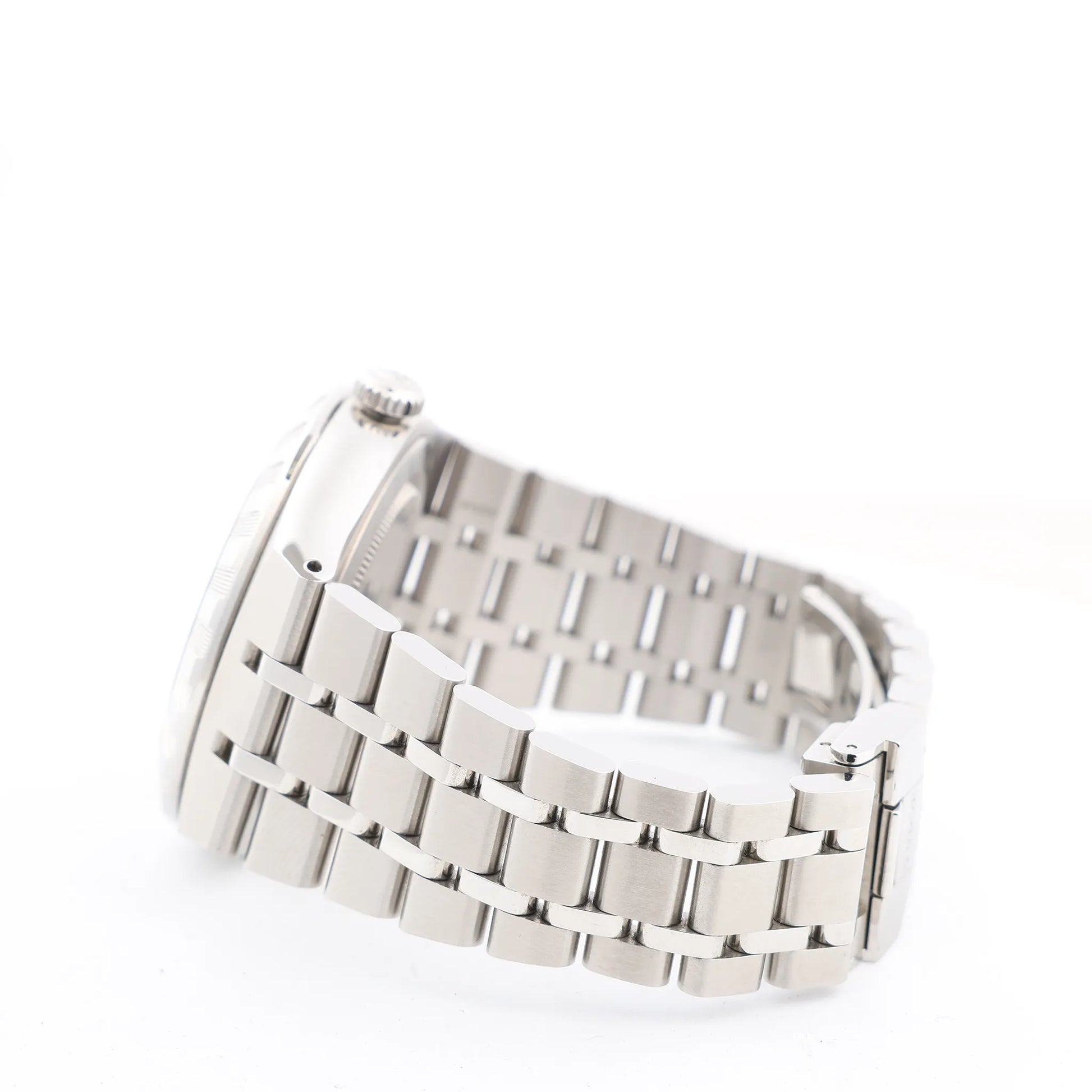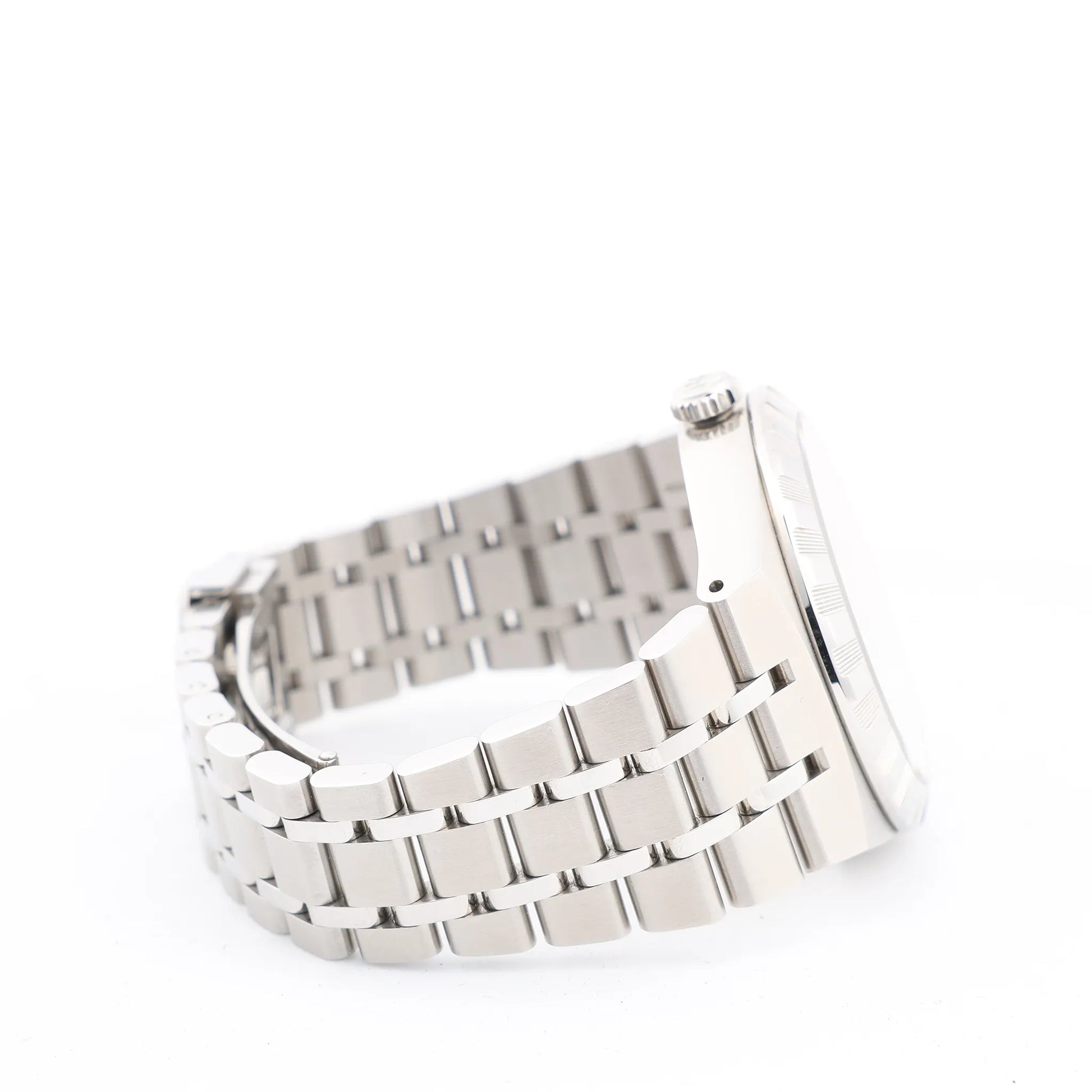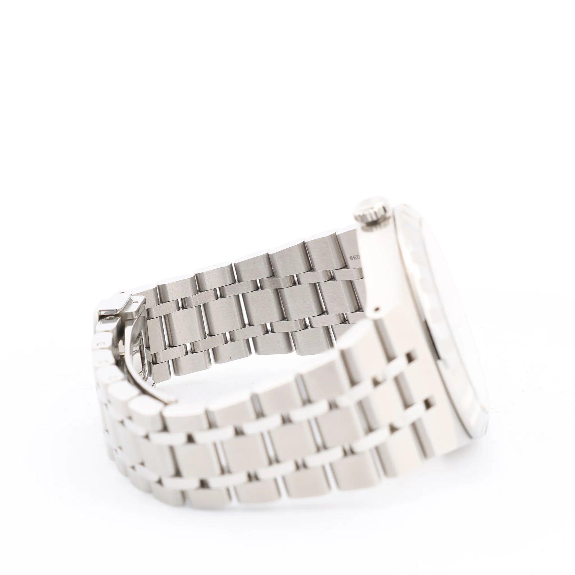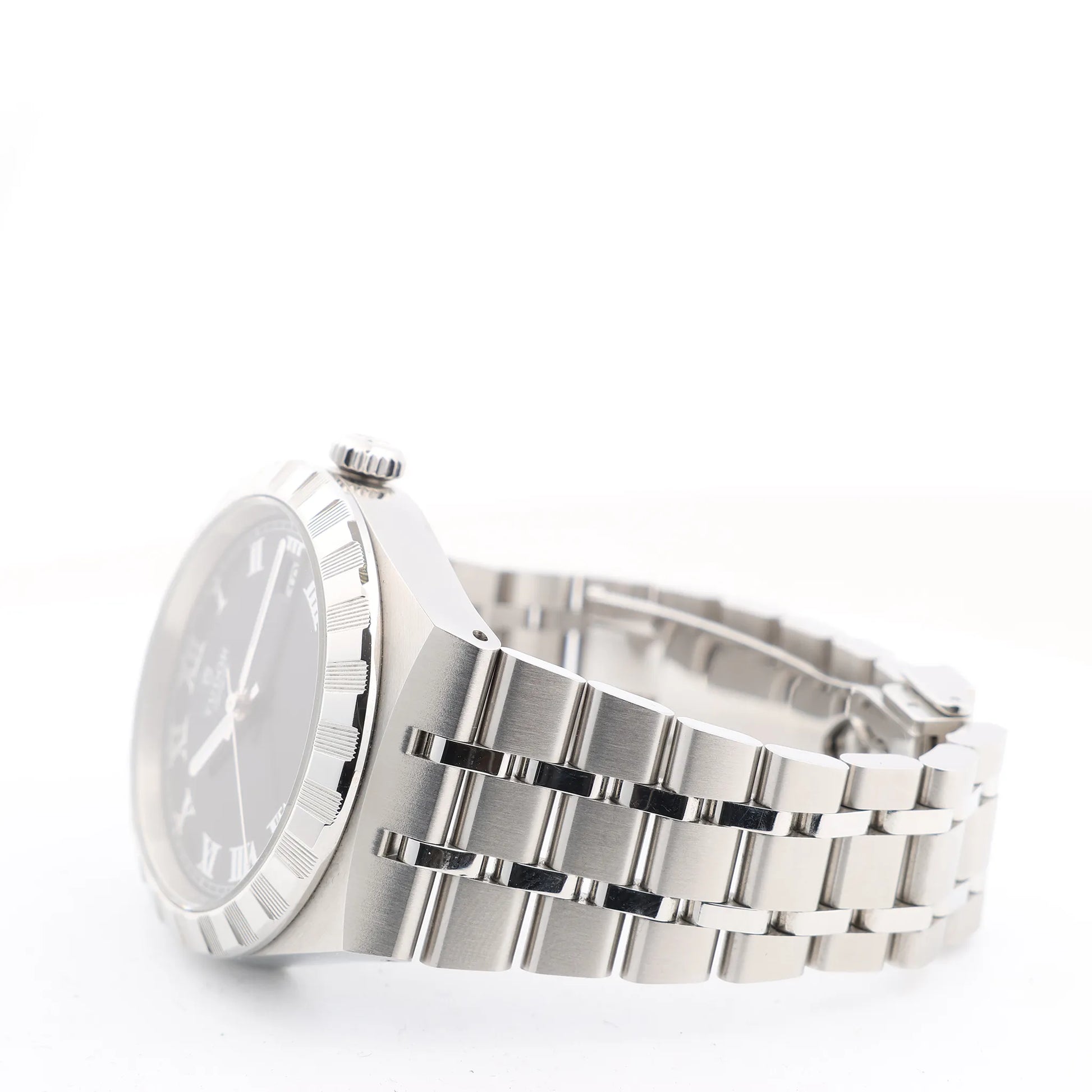 Die Tudor Royal 28500 vereint Sportlichkeit und Eleganz mit ihrem Automatikwerk, der Edelstahlkonstruktion und dem schlanken schwarzen Zifferblatt mit römischen Ziffern – Luxus mit Alltagstauglichkeit.