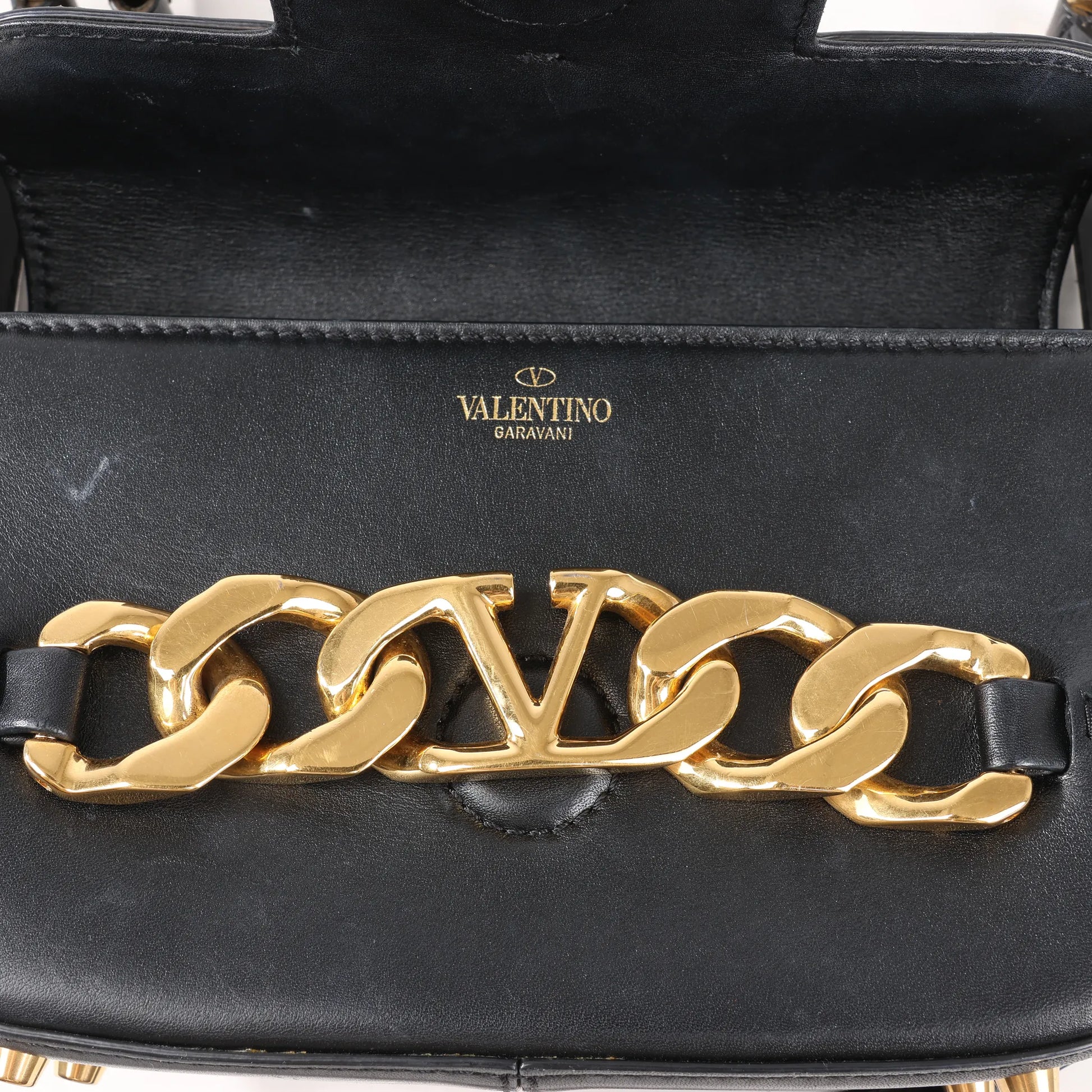 Setzen Sie ein klares Statement mit der Valentino Garavani VLogo Schultertasche aus schwarzem Leder. Sie besticht durch eine markante goldfarbene Kette und das ikonische VLogo-Emblem. Das kompakte Design vereint avantgardistische Eleganz mit italienischer Handwerkskunst.