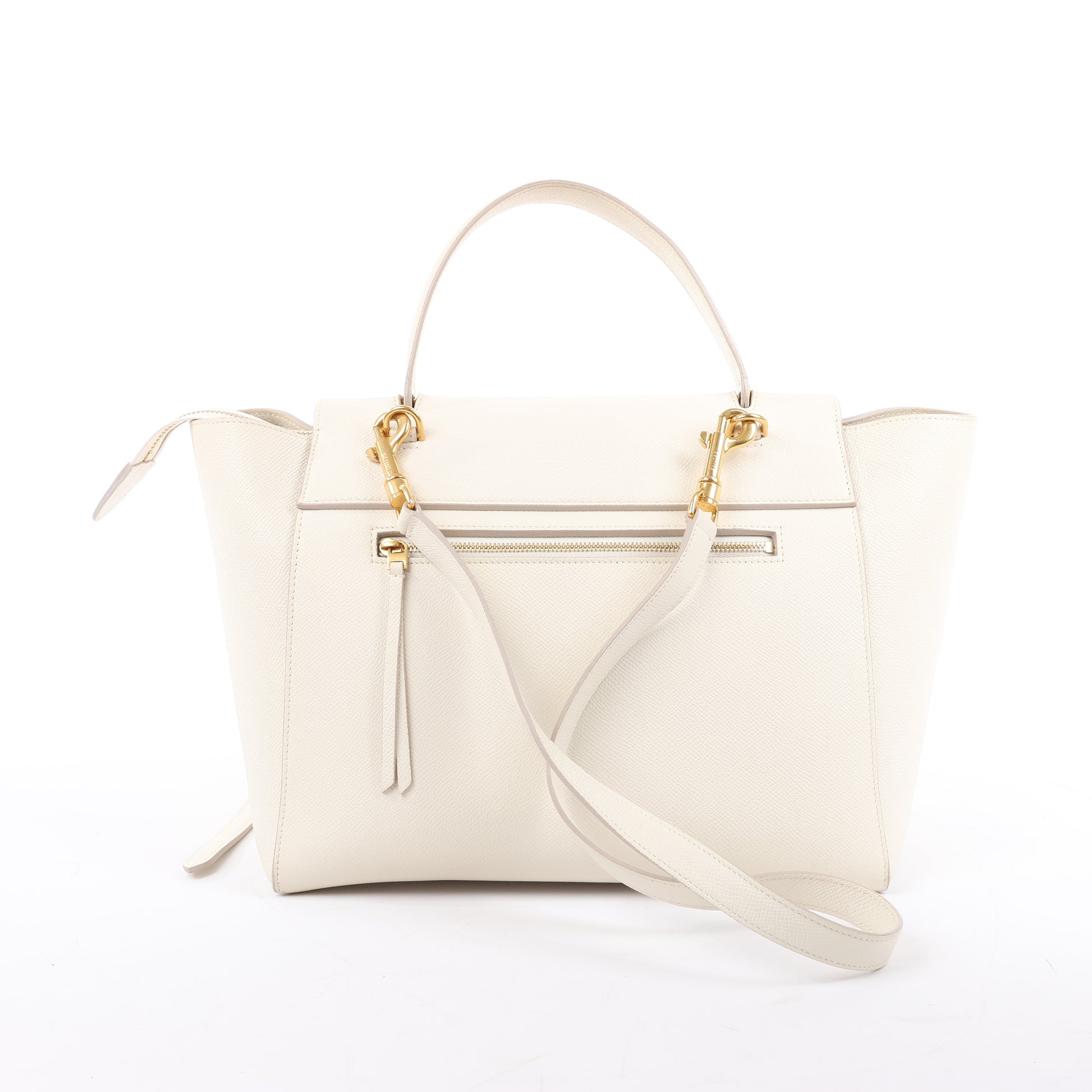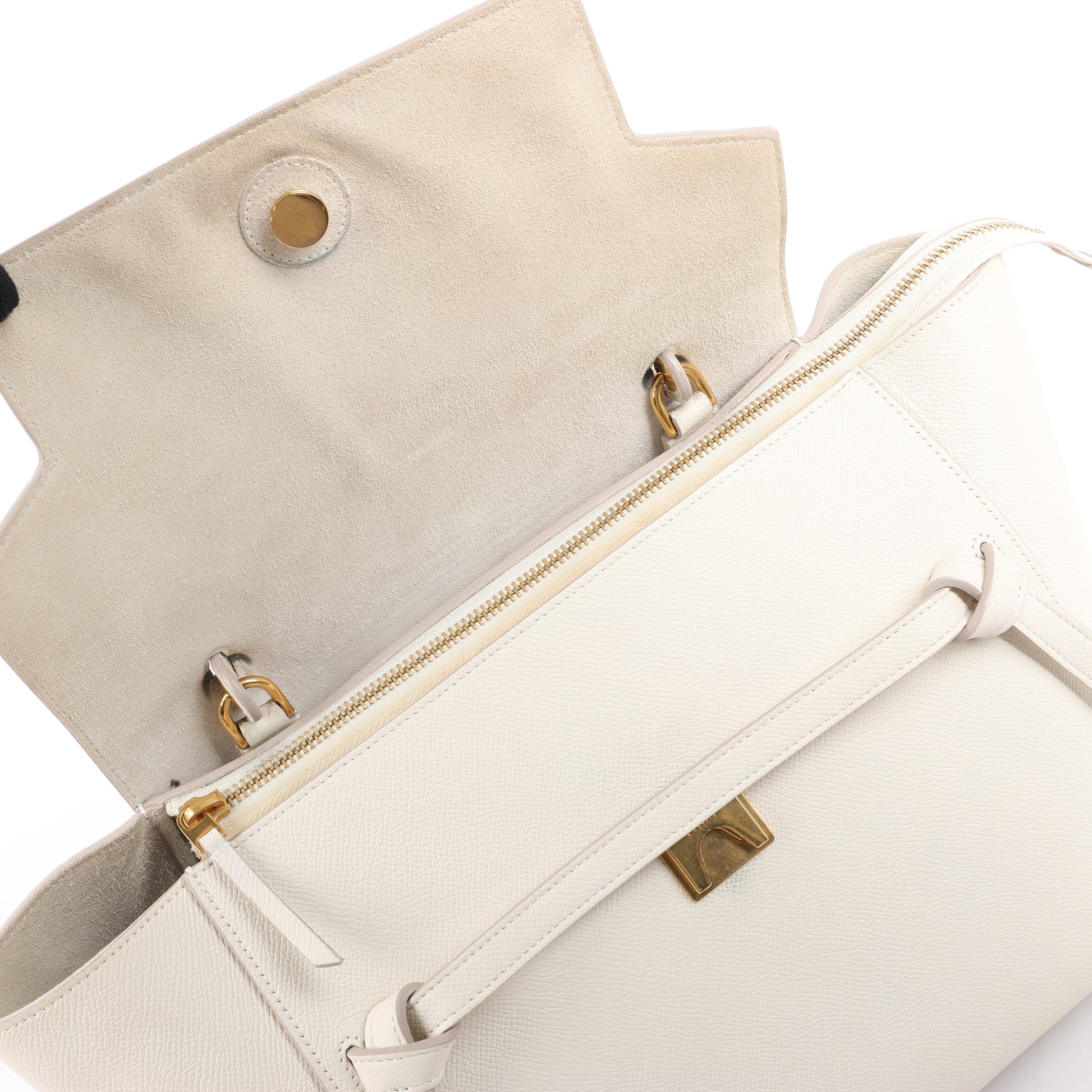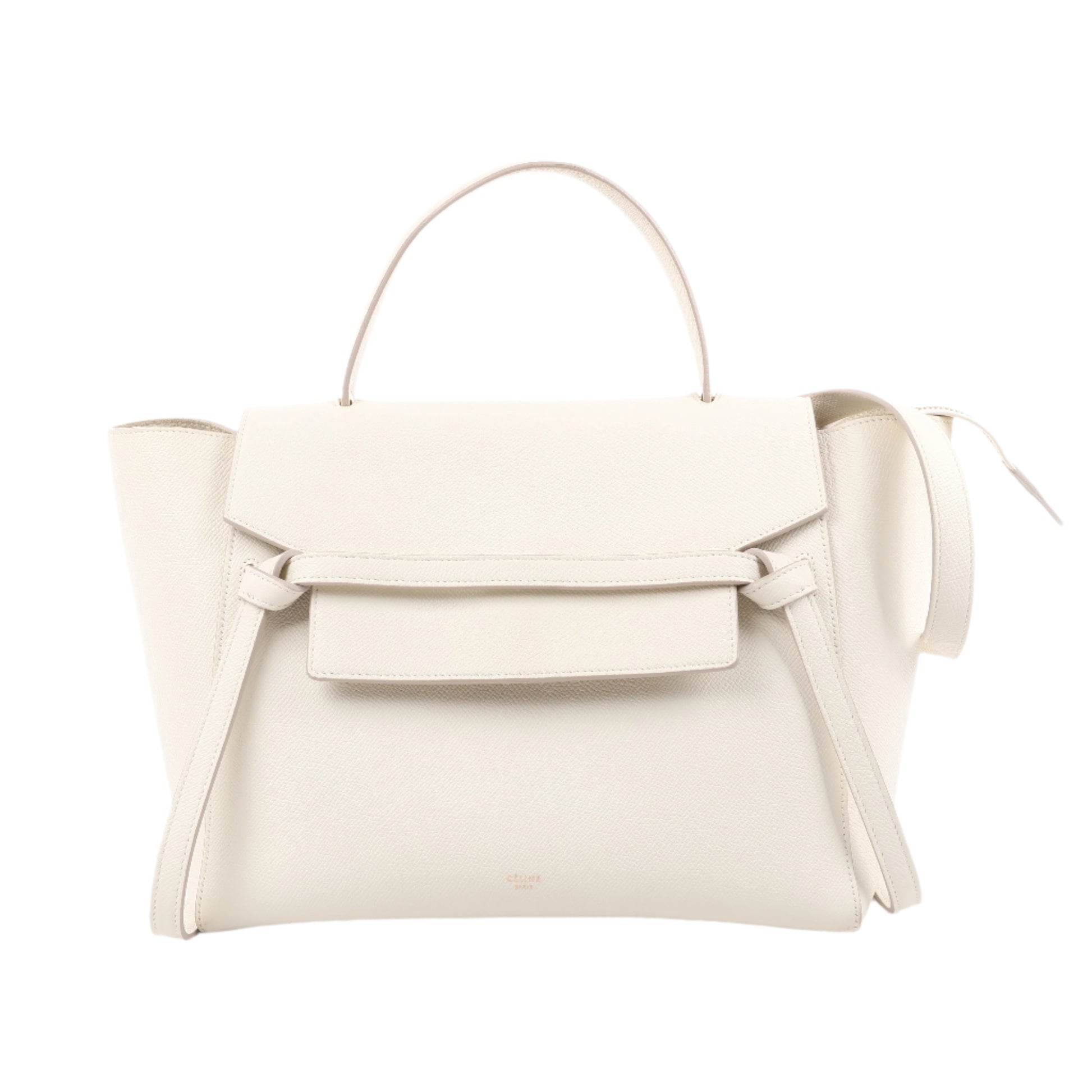 Sac ceinture CELINE Mini sac à main 2 voies en cuir de veau grainé blanc