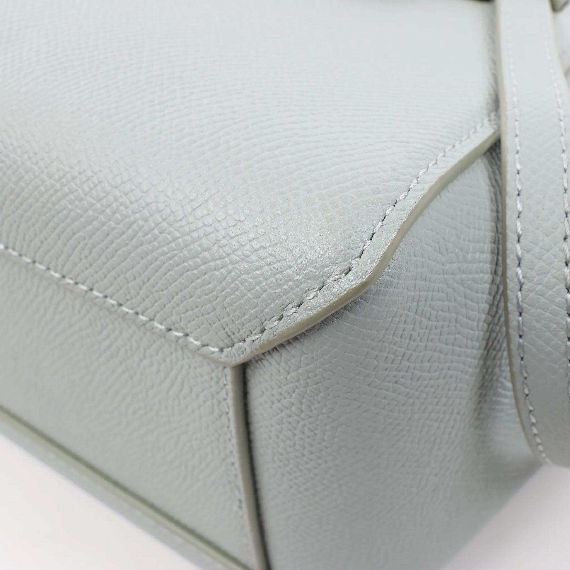 Le sac ceinture Nano de Céline en cuir grainé bleu est un classique moderne aux détails raffinés. Doté d'un rabat ceinturé, d'une poignée supérieure et d'une bandoulière amovible, ce sac polyvalent allie élégance et polyvalence au quotidien.