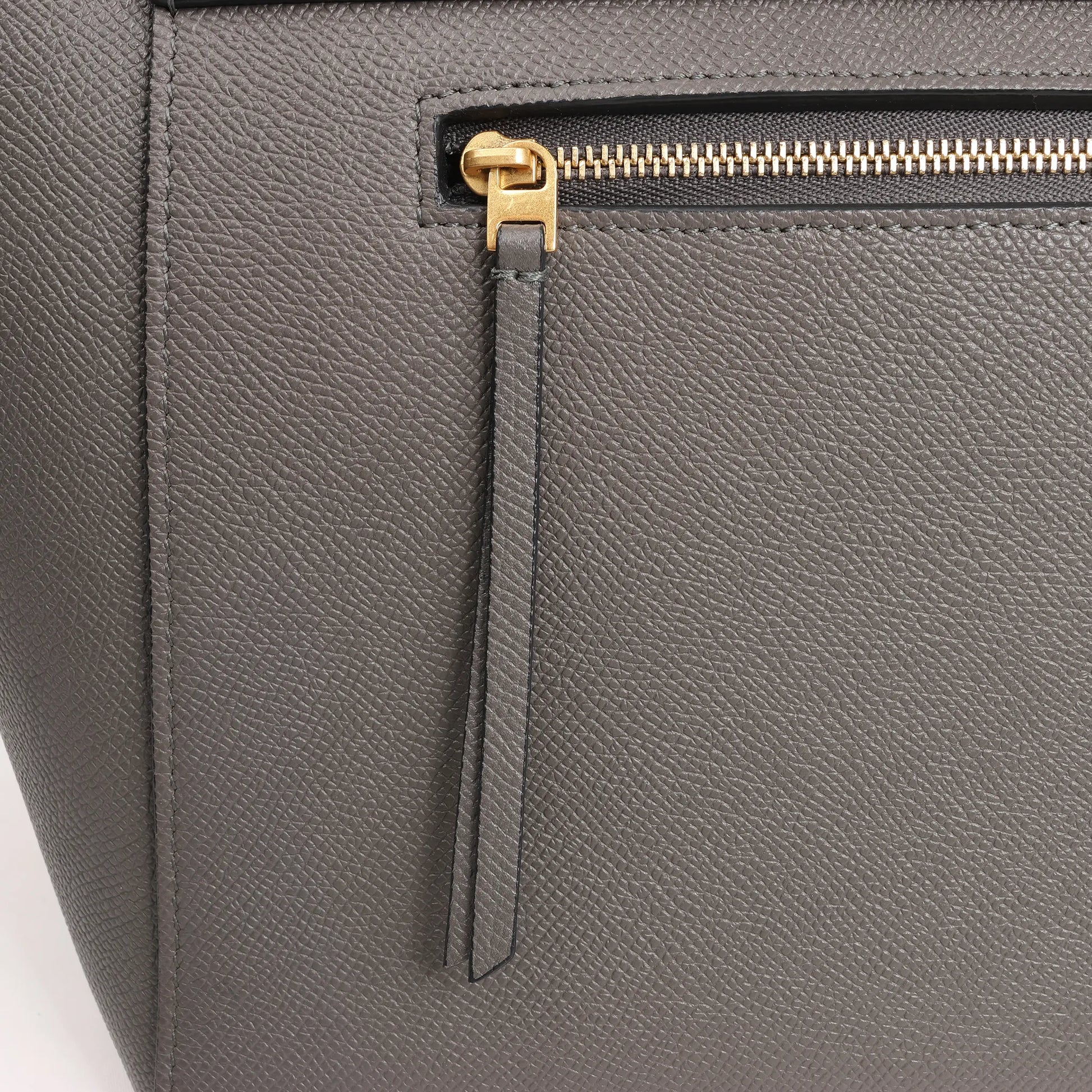 Le Mini Sac Ceinture Celine en cuir grainé gris est un sac à main chic et polyvalent alliant élégance minimaliste et fonctionnalité au quotidien. Confectionné en Italie, ce modèle structuré est idéal pour un luxe moderne et naturel.