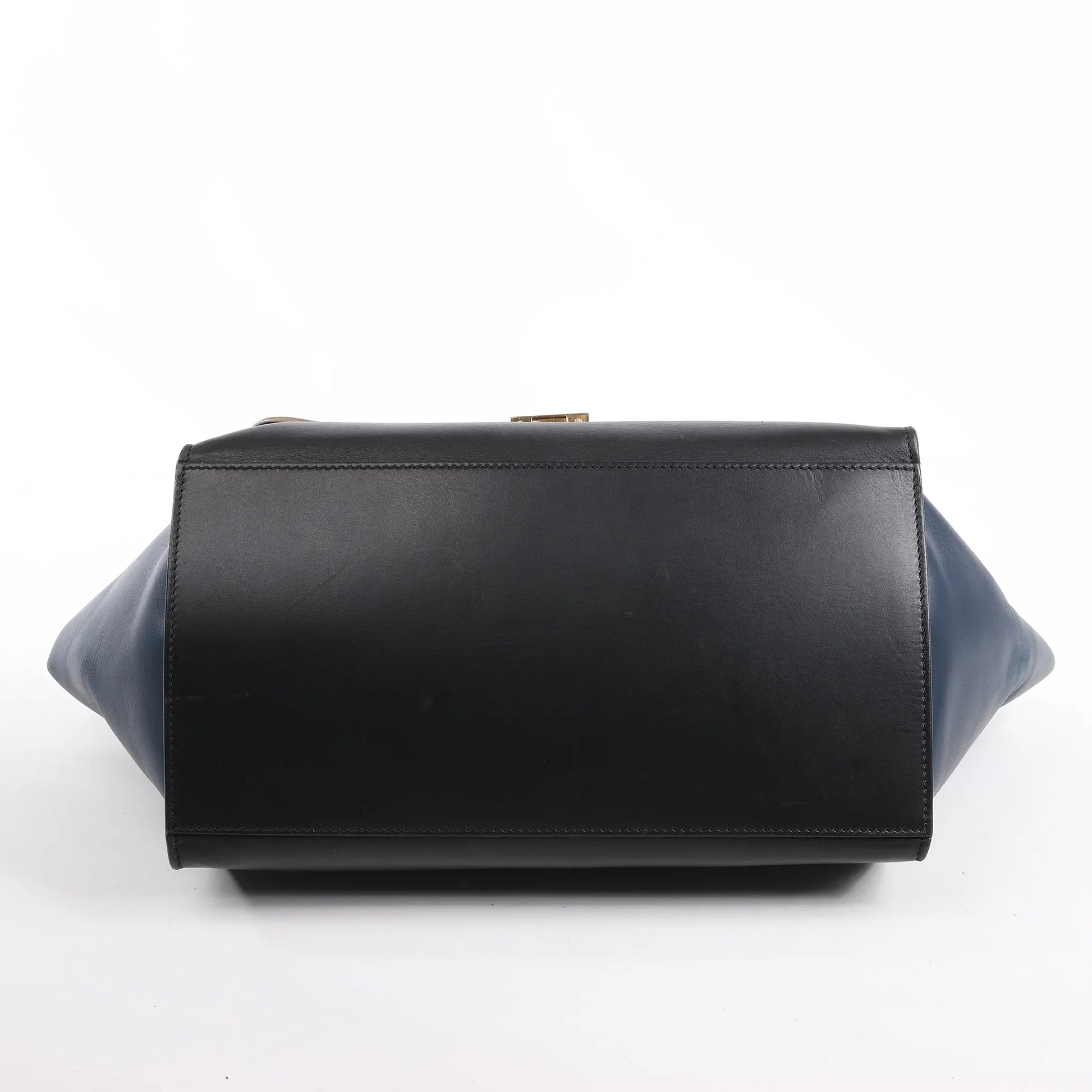 Sac à main double sens en cuir et daim trapèze CELINE en noir, bleu marine et taupe