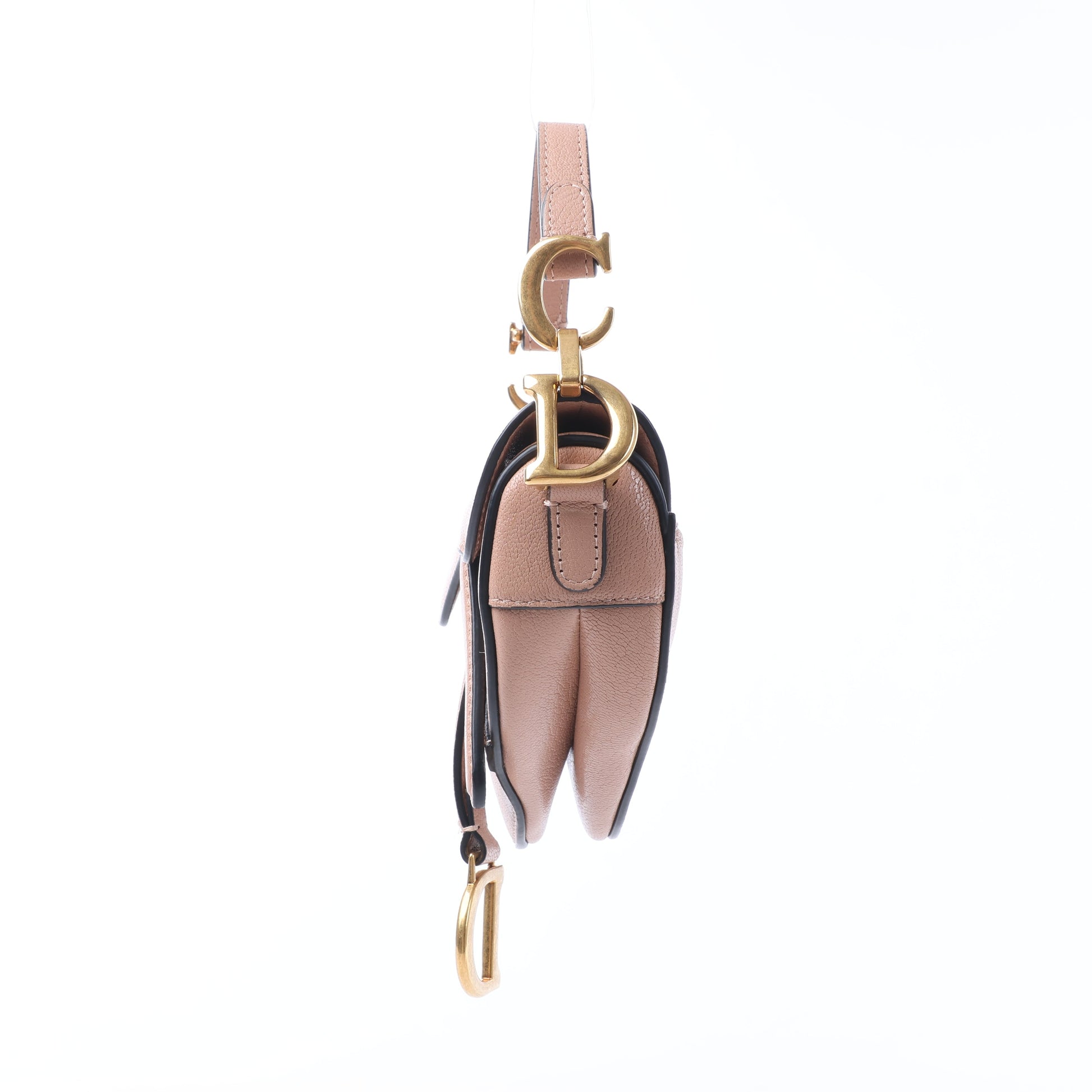Iconic and compact, this Dior Saddle Micro Bag in blush leather features gold-tone 'D' hardware and a sculptural silhouette. A statement piece with timeless Parisian charm in a mini size.