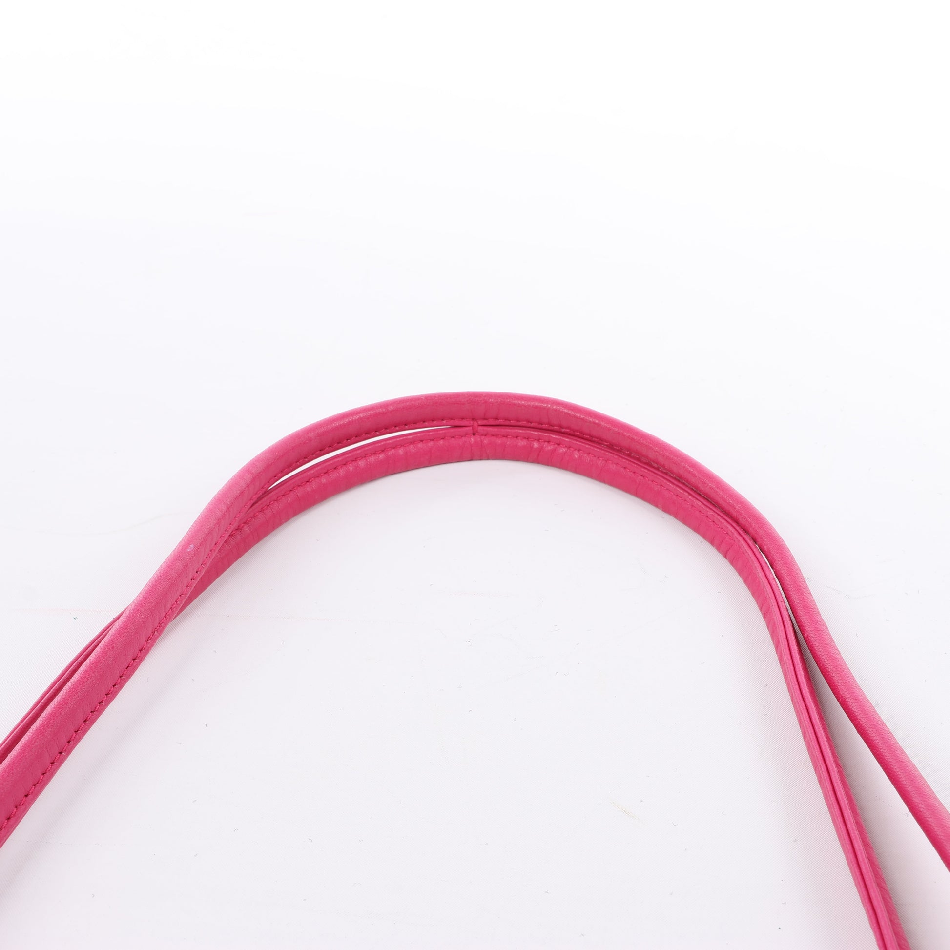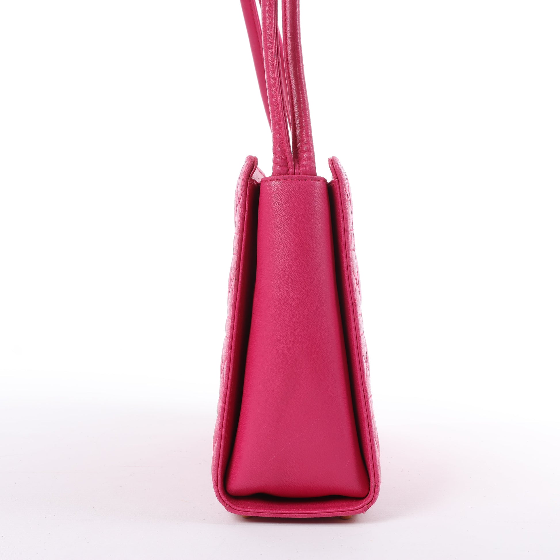 Sac bandoulière Dior vintage en cuir matelassé Cannage rose avec breloque dorée. Féminin et intemporel, sa silhouette structurée lui confère une touche d'élégance audacieuse.
