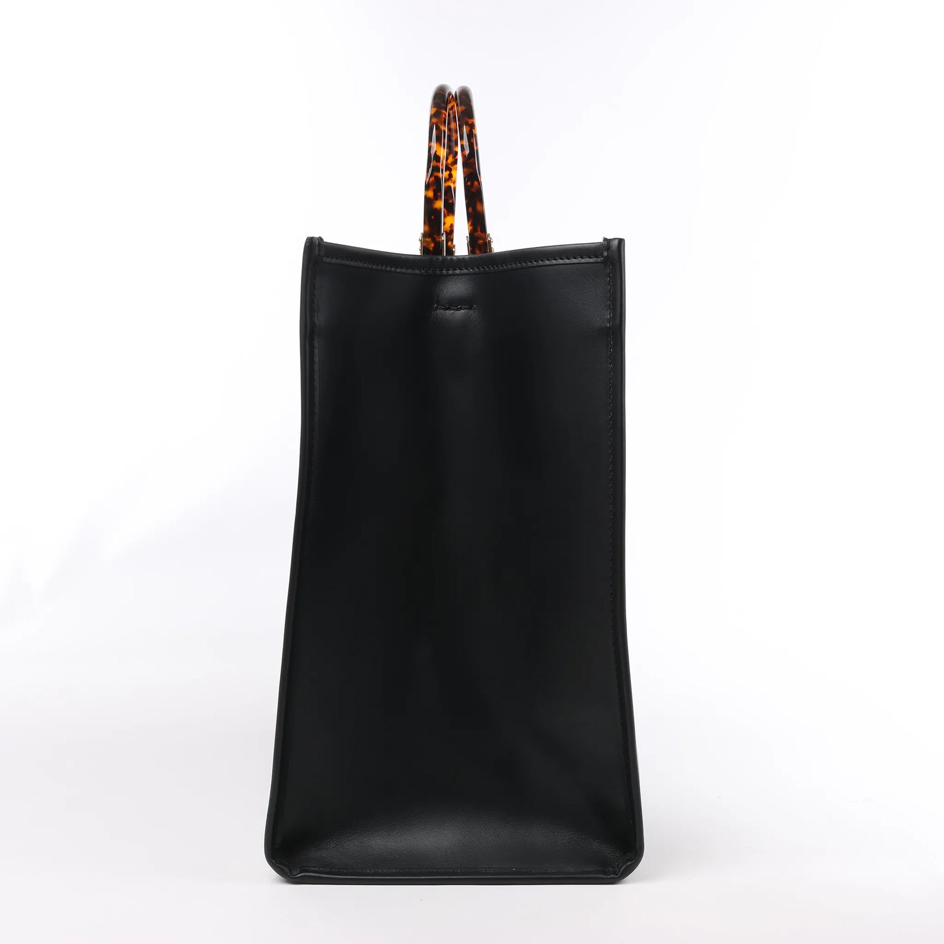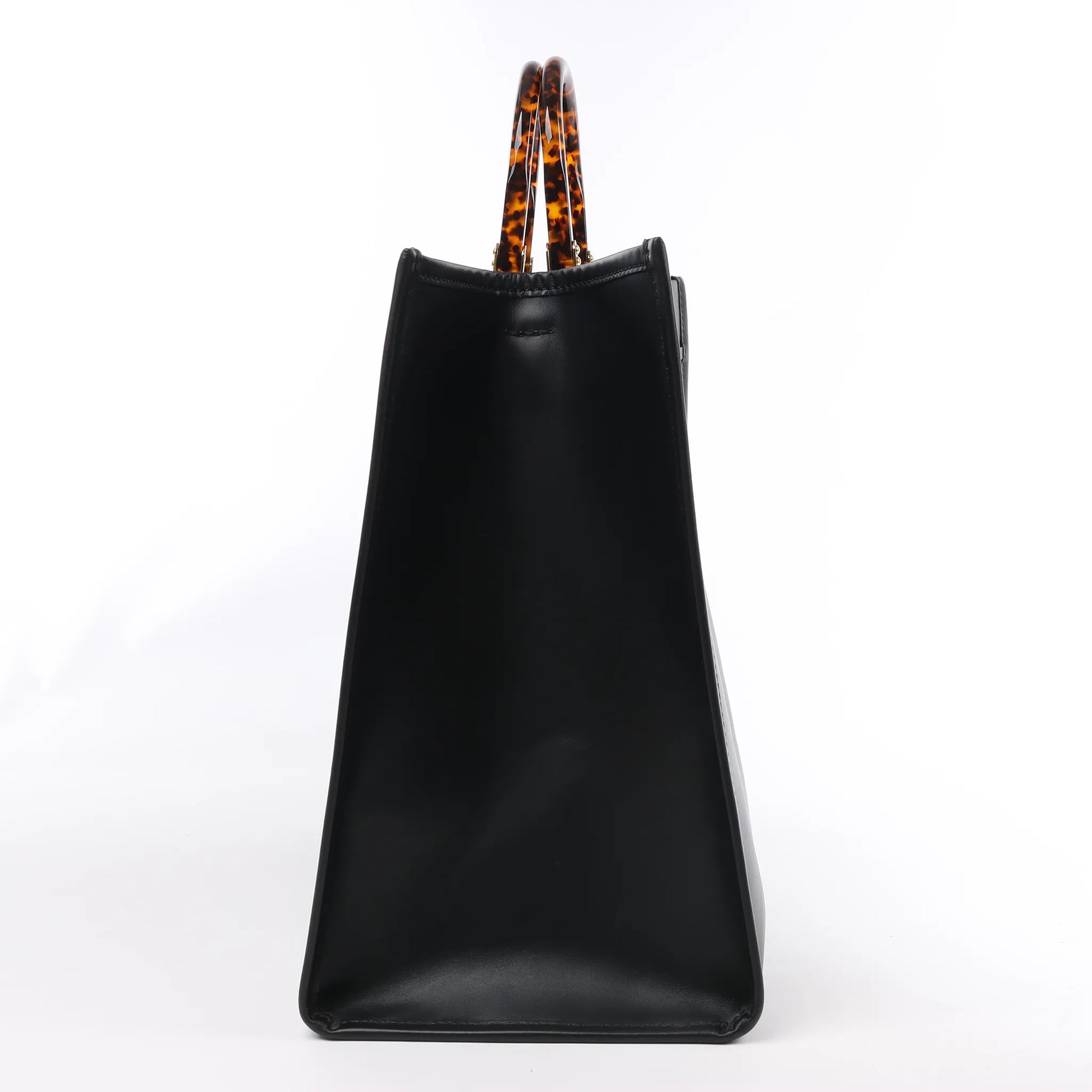 Affichez votre style avec le grand sac à main Fendi Sunshine 8BH372, confectionné en cuir noir luxueux et orné du logo FENDI ROMA embossé. Doté de poignées en acrylique effet écaille de tortue, ce spacieux cabas allie sophistication et fonctionnalité dans un design emblématique.