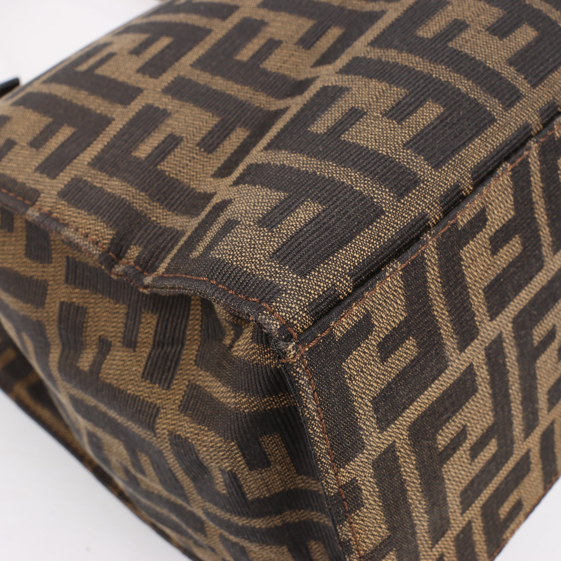 FENDI Zucchino Mamma Bucket Canvas & Leather Shoulder Bag in Brown