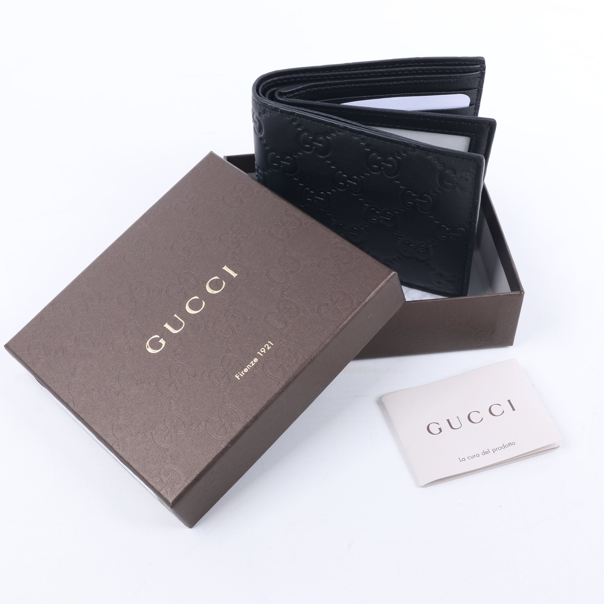 Confectionné en cuir noir embossé Guccissima, ce portefeuille compact Gucci incarne une élégance discrète. Raffiné et intemporel, il allie à la perfection luxe et fonctionnalité au quotidien.