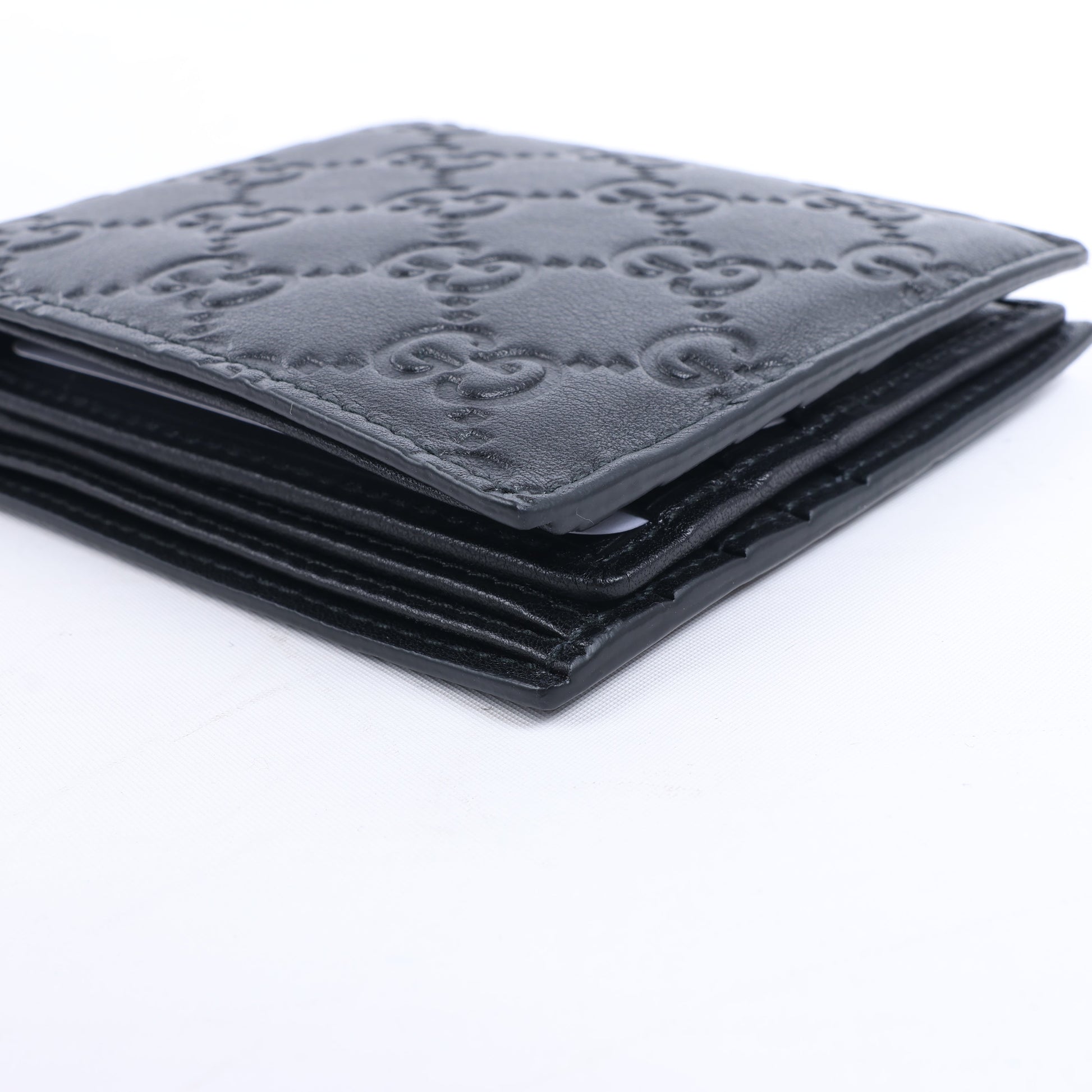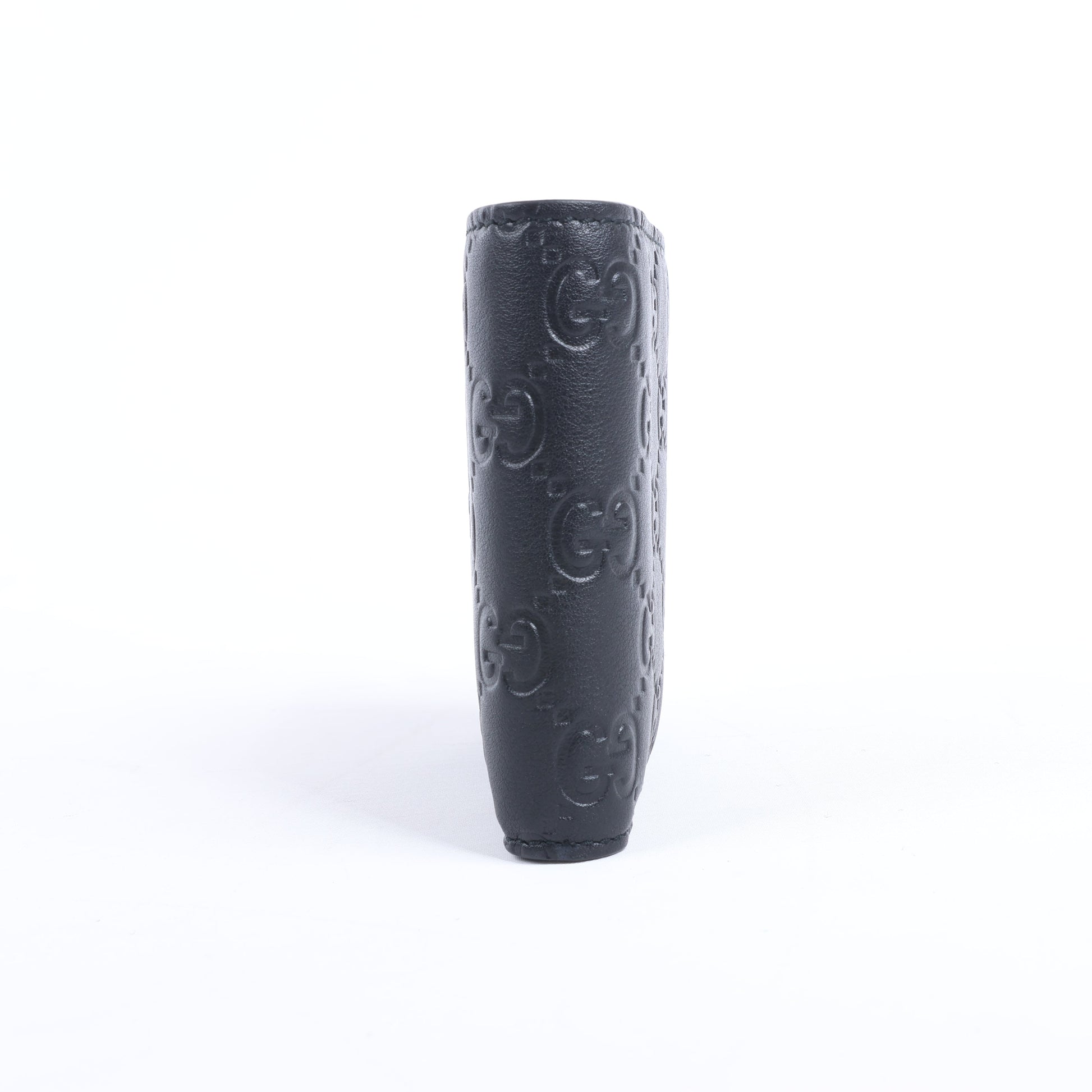 Portefeuille compact en cuir noir Gucci Guccissima 212185