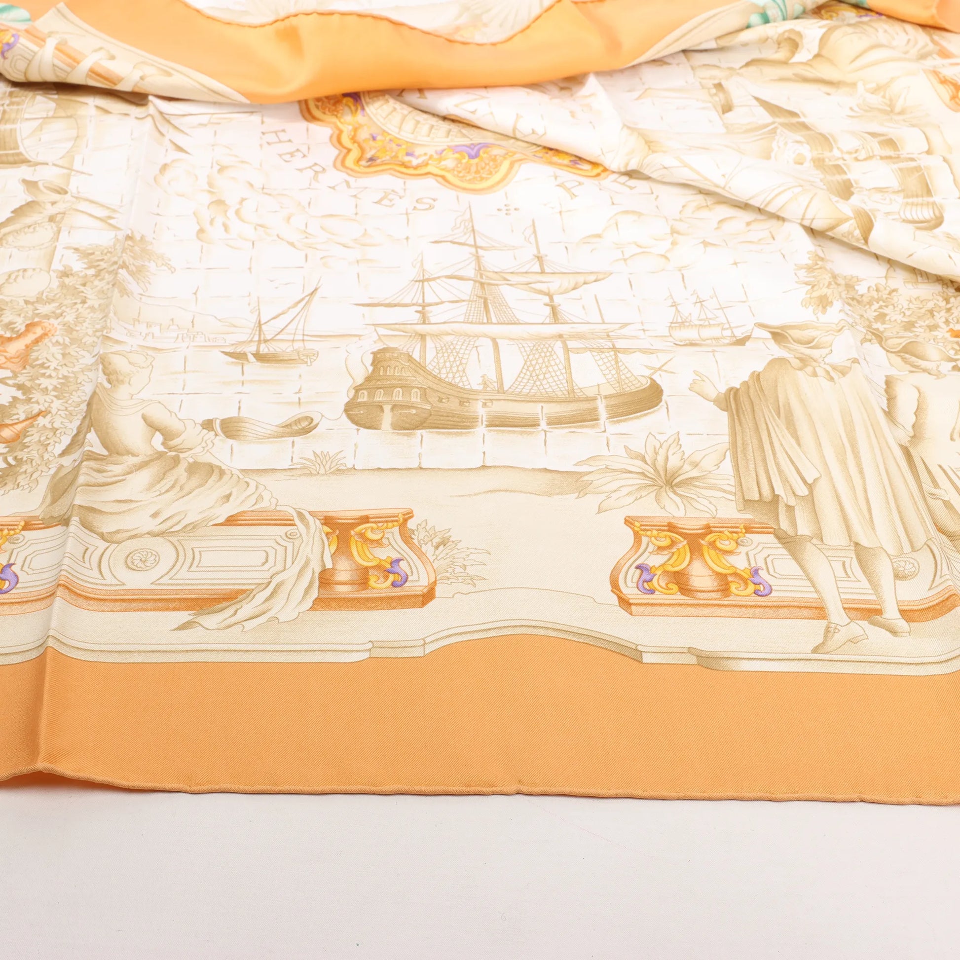 Mouchoir en soie Hermès Carré 90 « AZVLEJOS » orange