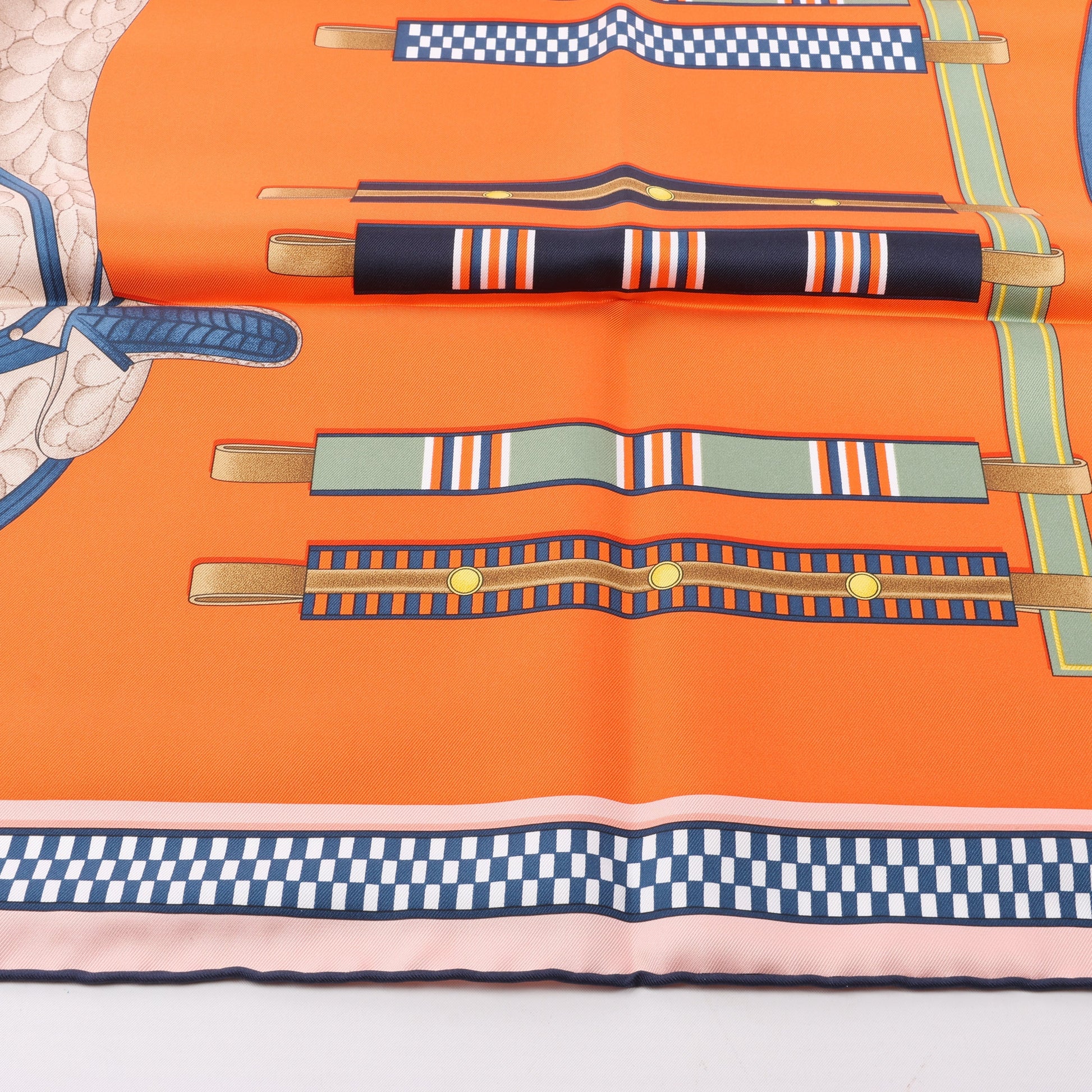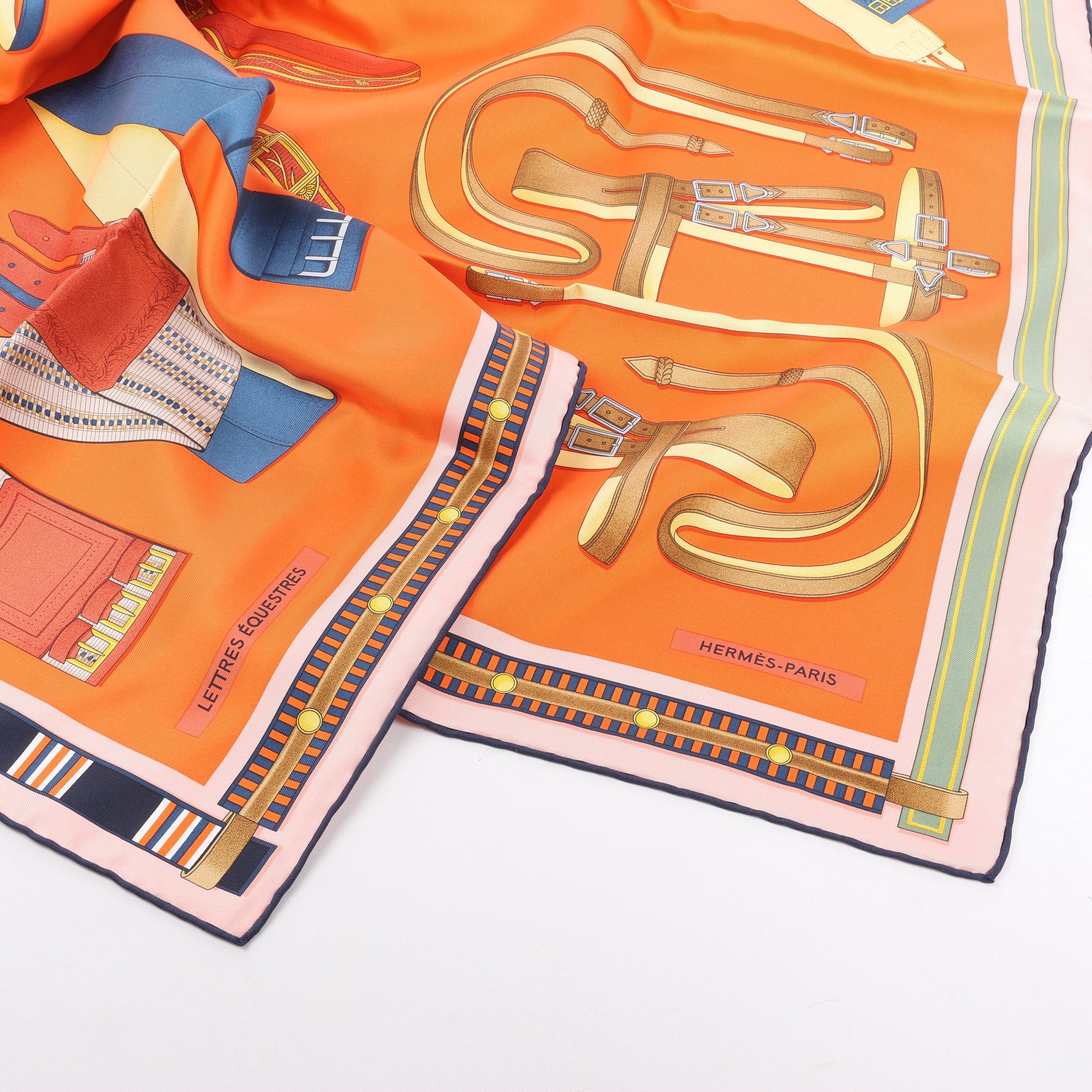 Hermès Carré 90 "LETTRES EQUESTRES" Foulard 100% Soie en Orange