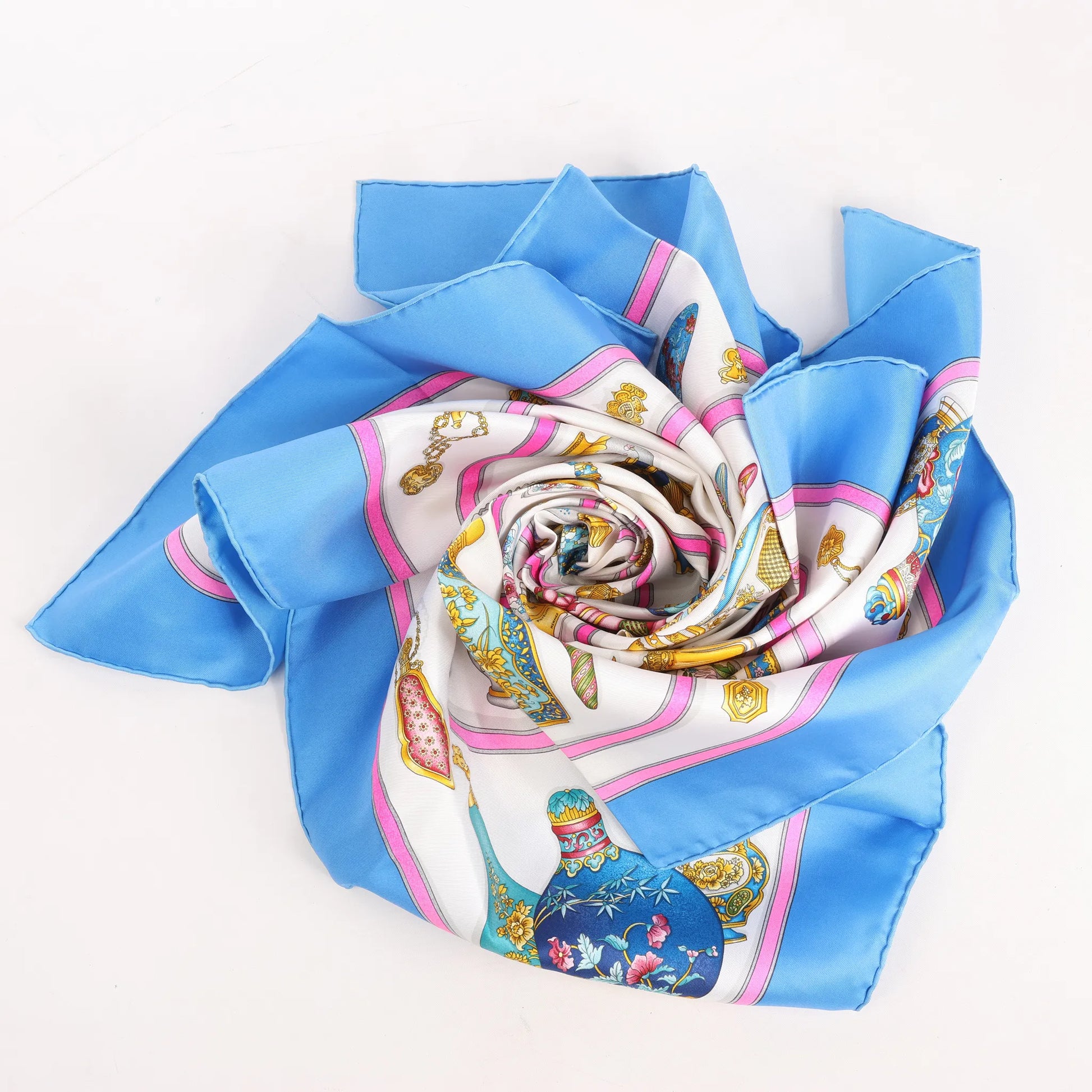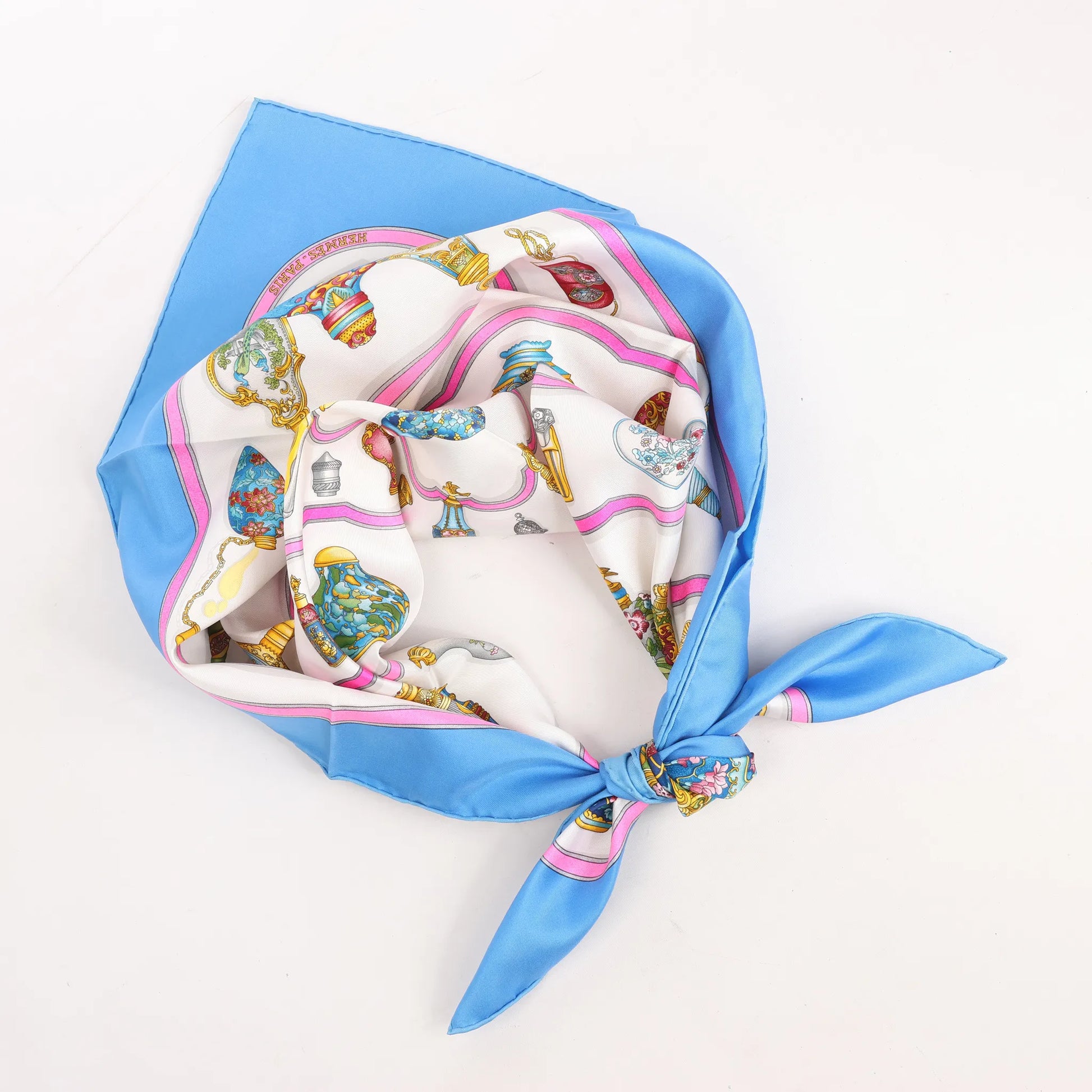 Hermès Carré 90 "Qu'importe Le Flacon" Mouchoir en soie en Bleu